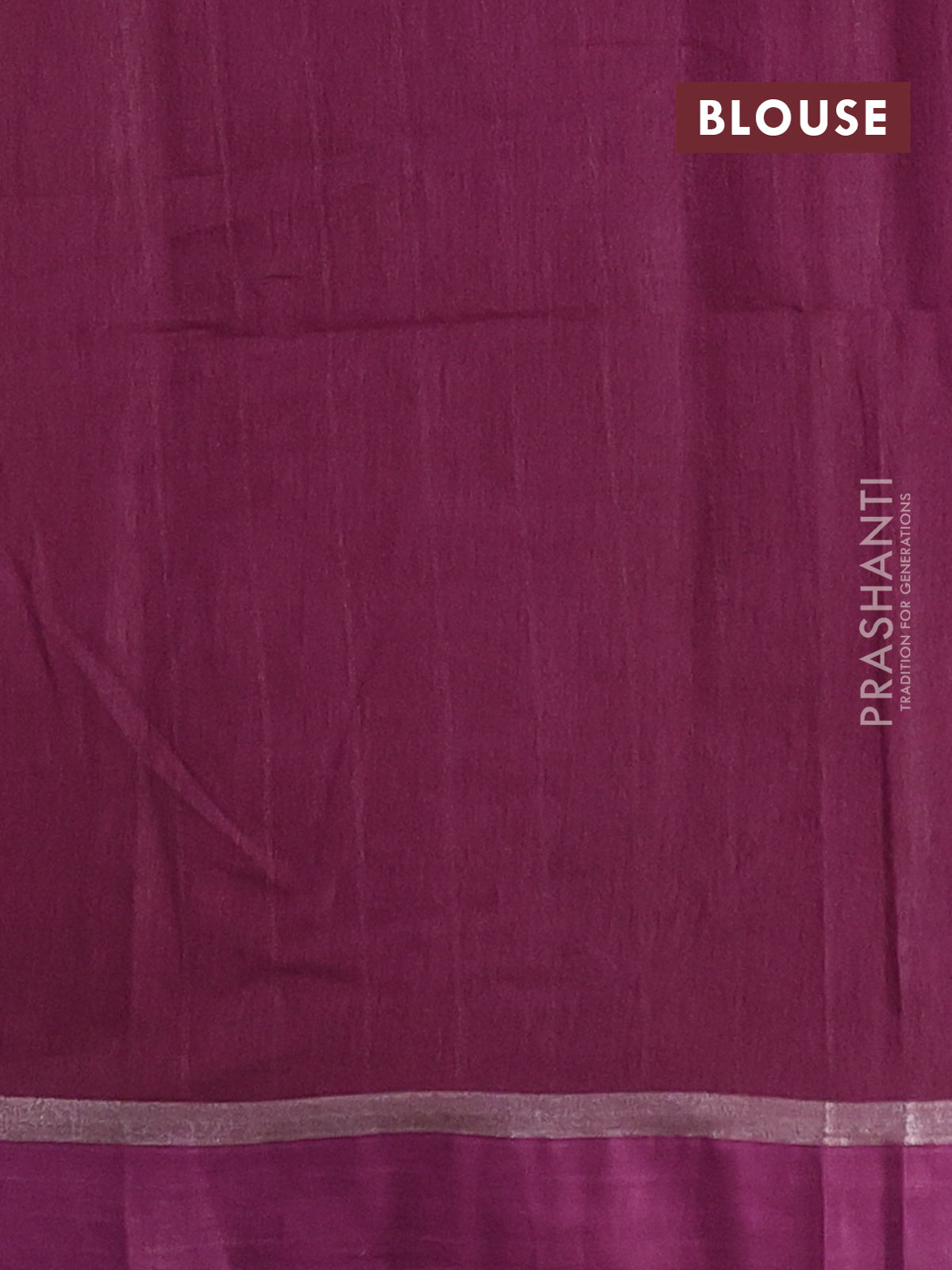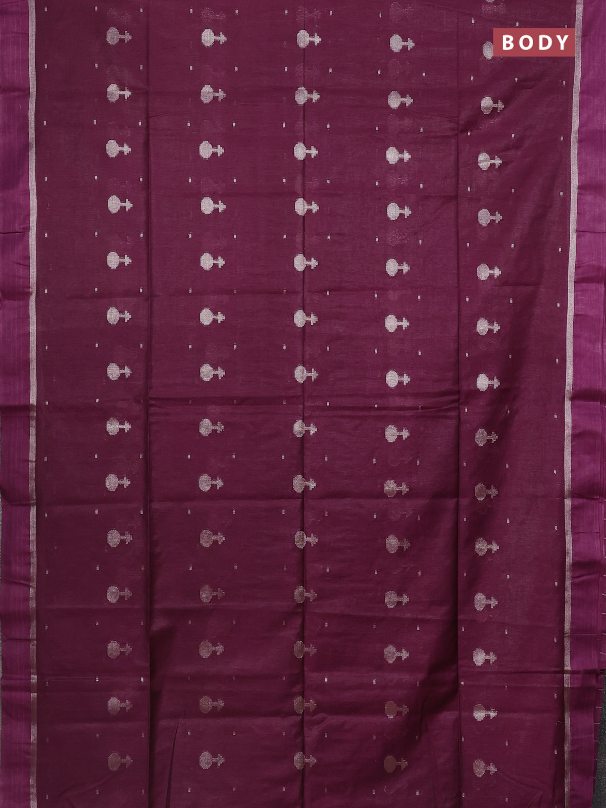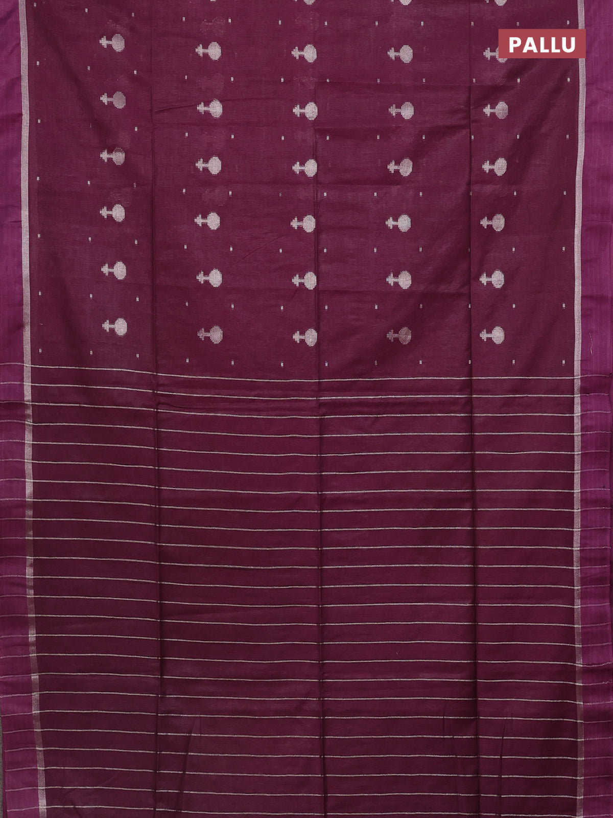 Semi bamboo saree purple with silver zari woven buttas and zari woven simple border