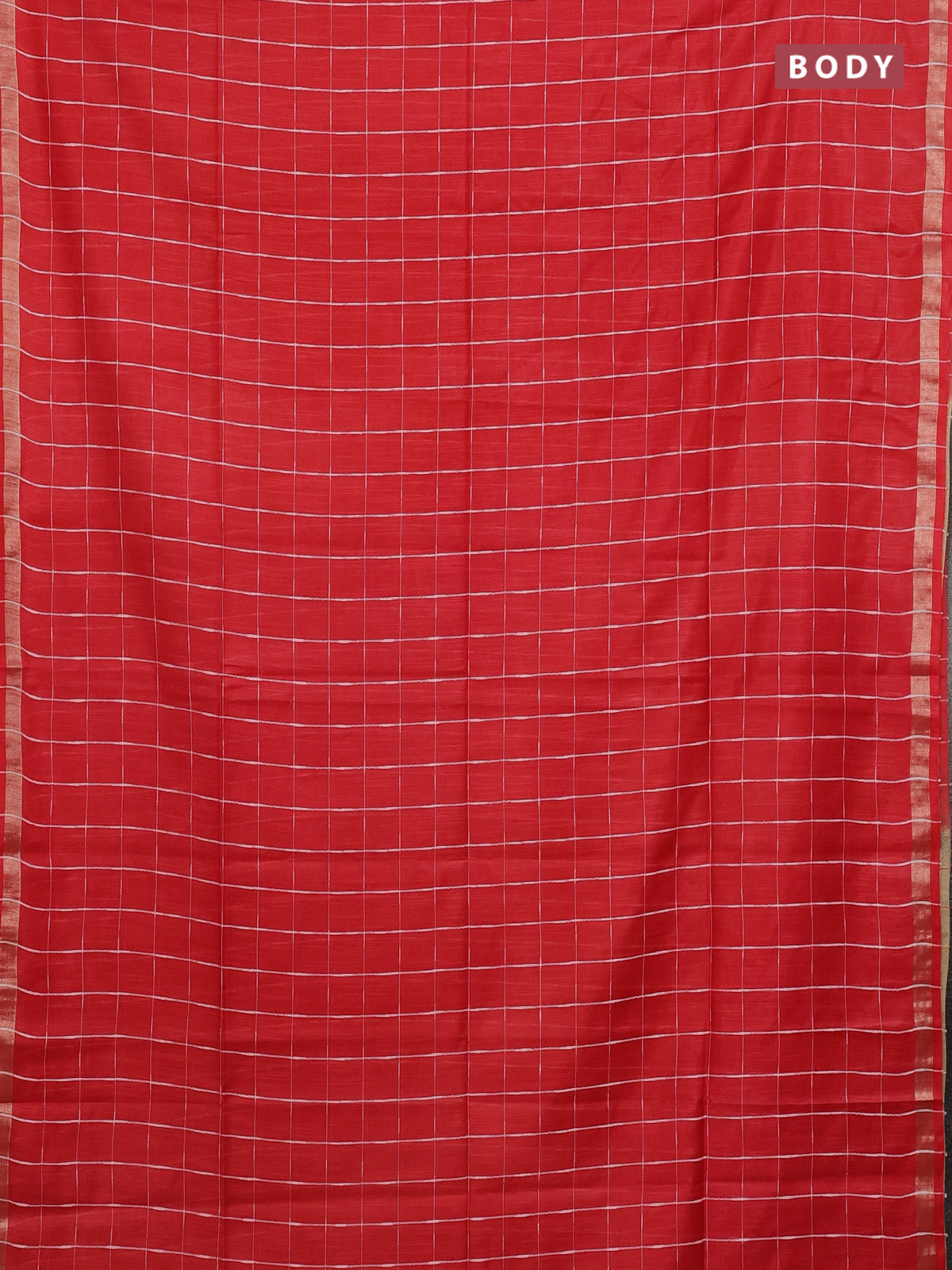 Semi bamboo saree red and sandal with checked pattern and zari woven border