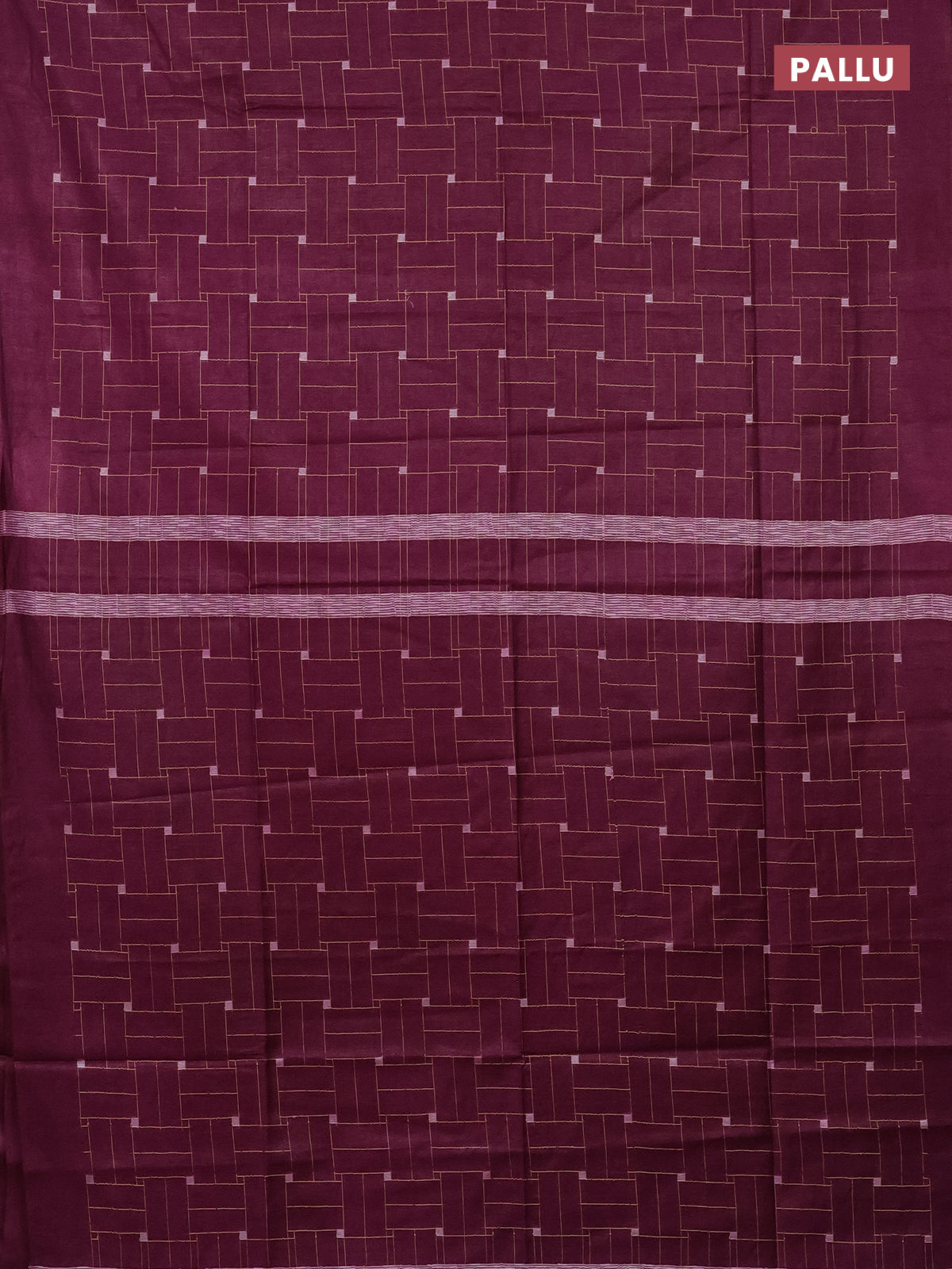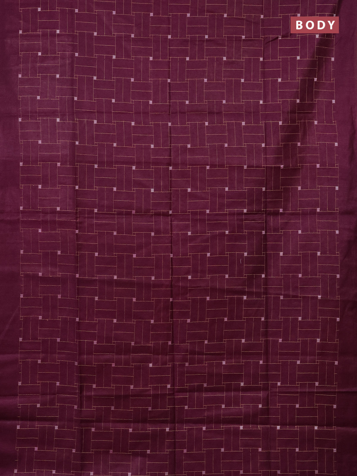 Semi bamboo saree wine shade with allover thread weaves in borderless style