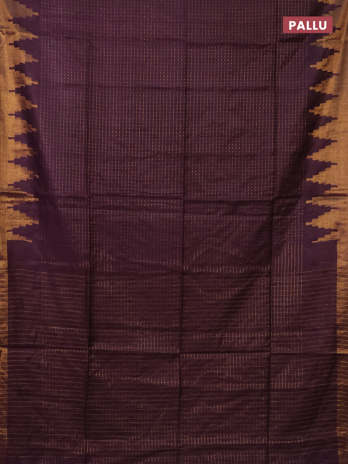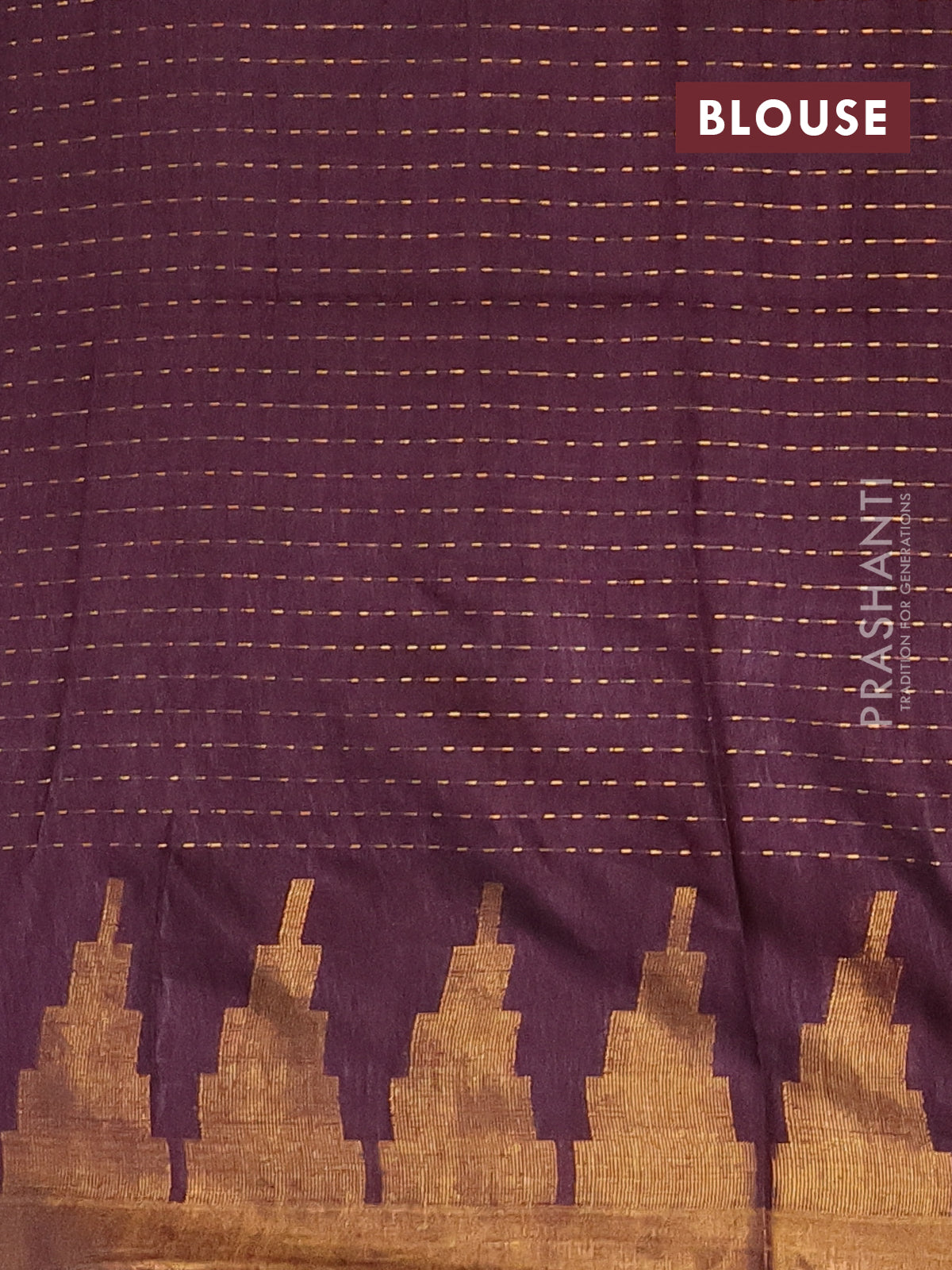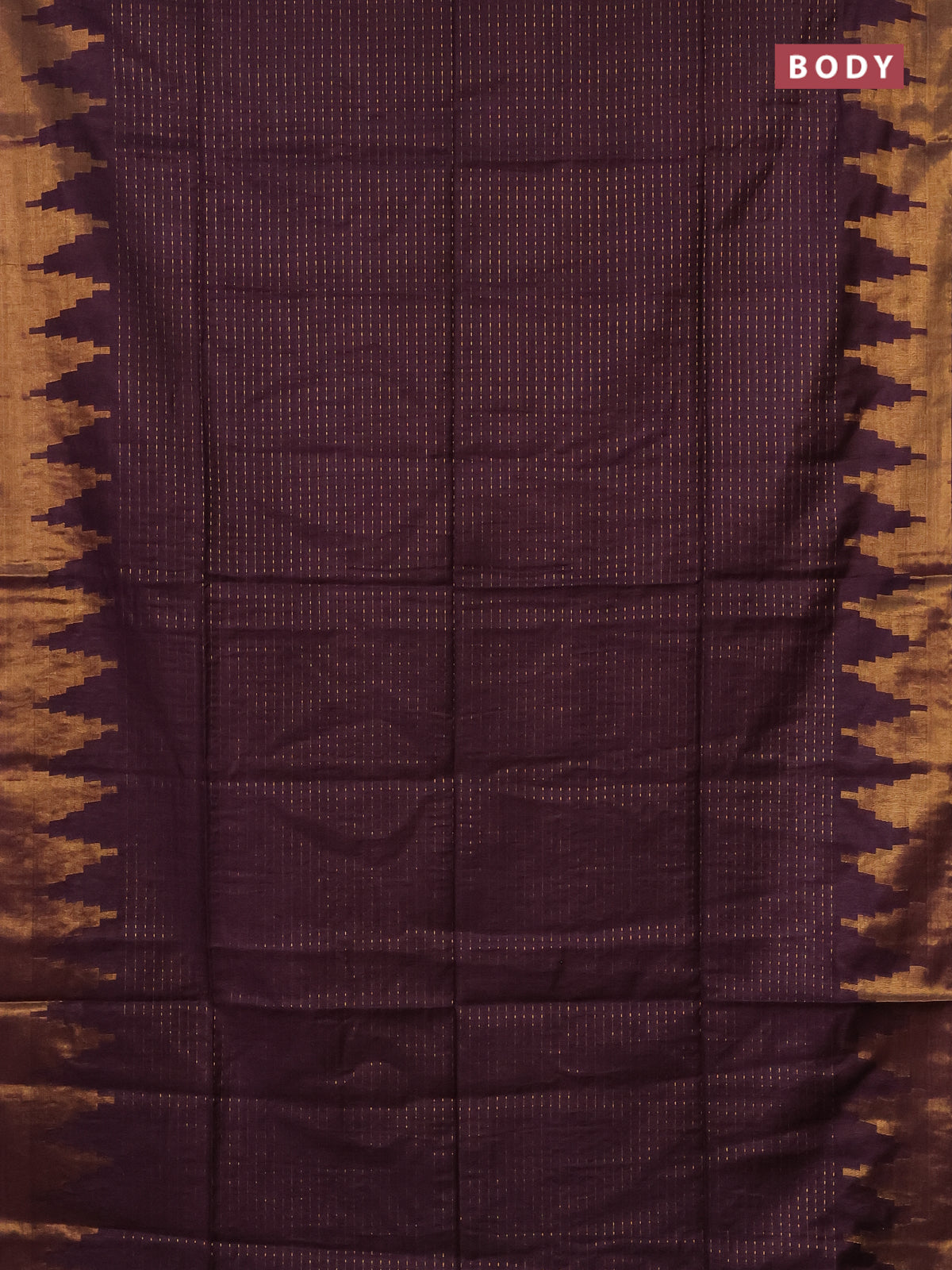 Semi bamboo saree wine shade with allover zari weaves and temple design zari woven border