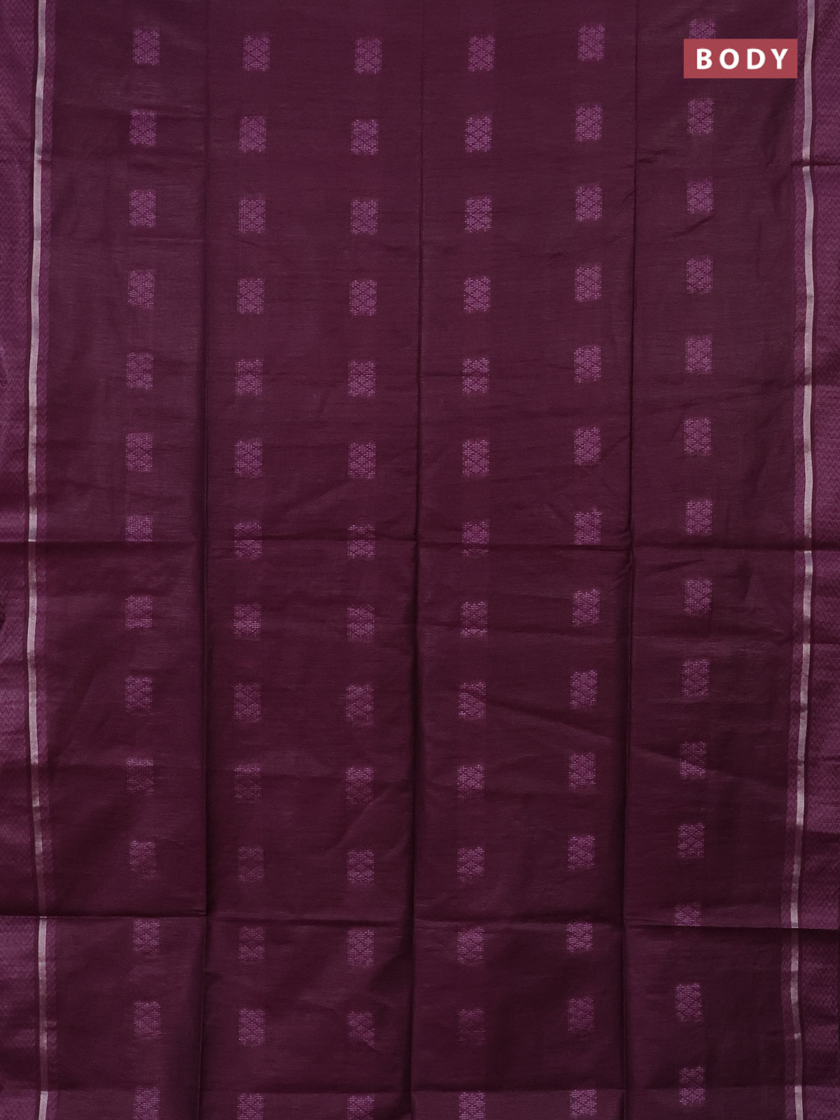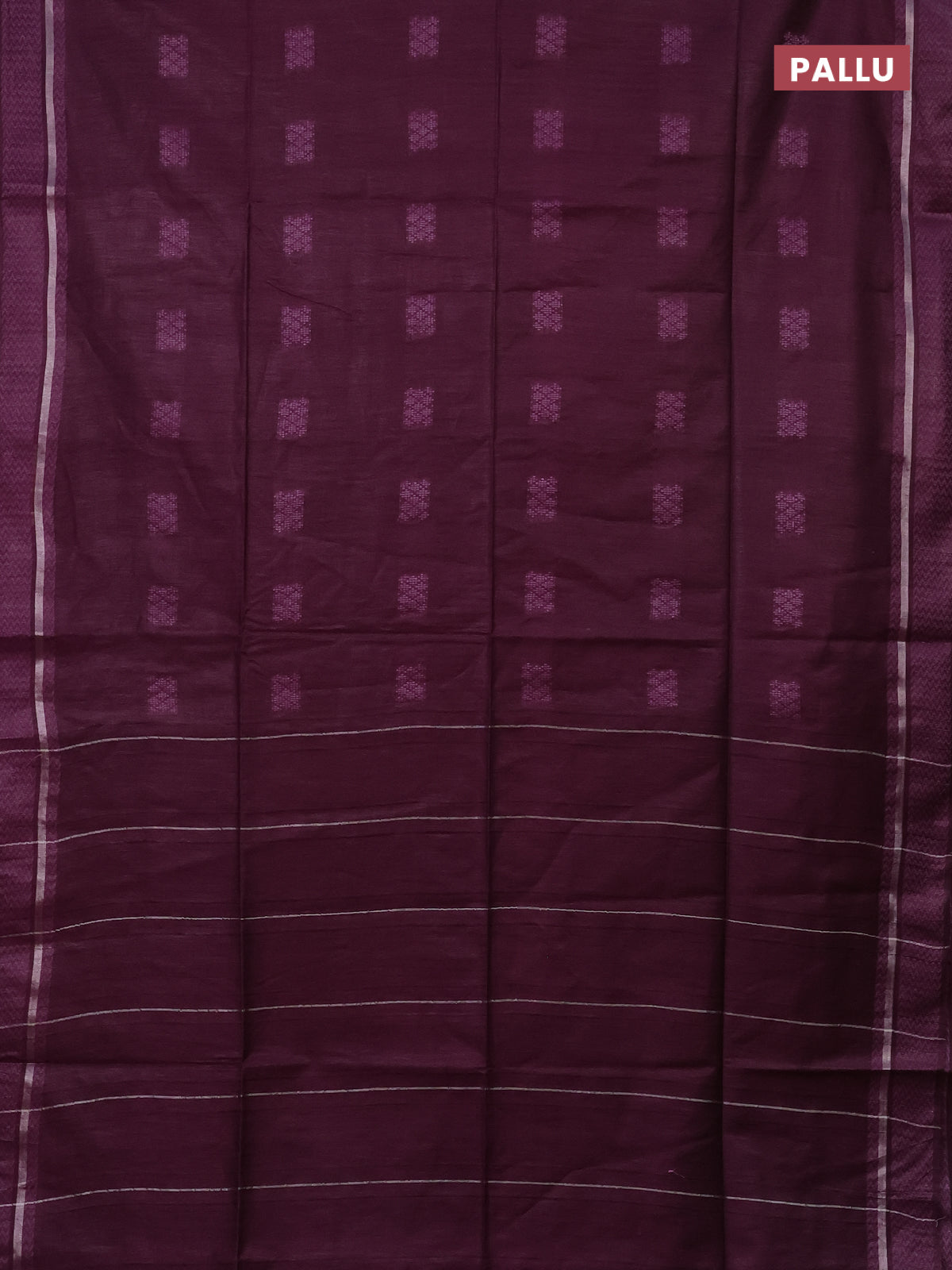 Semi bamboo saree wine shade with woven buttas and zari woven simple border