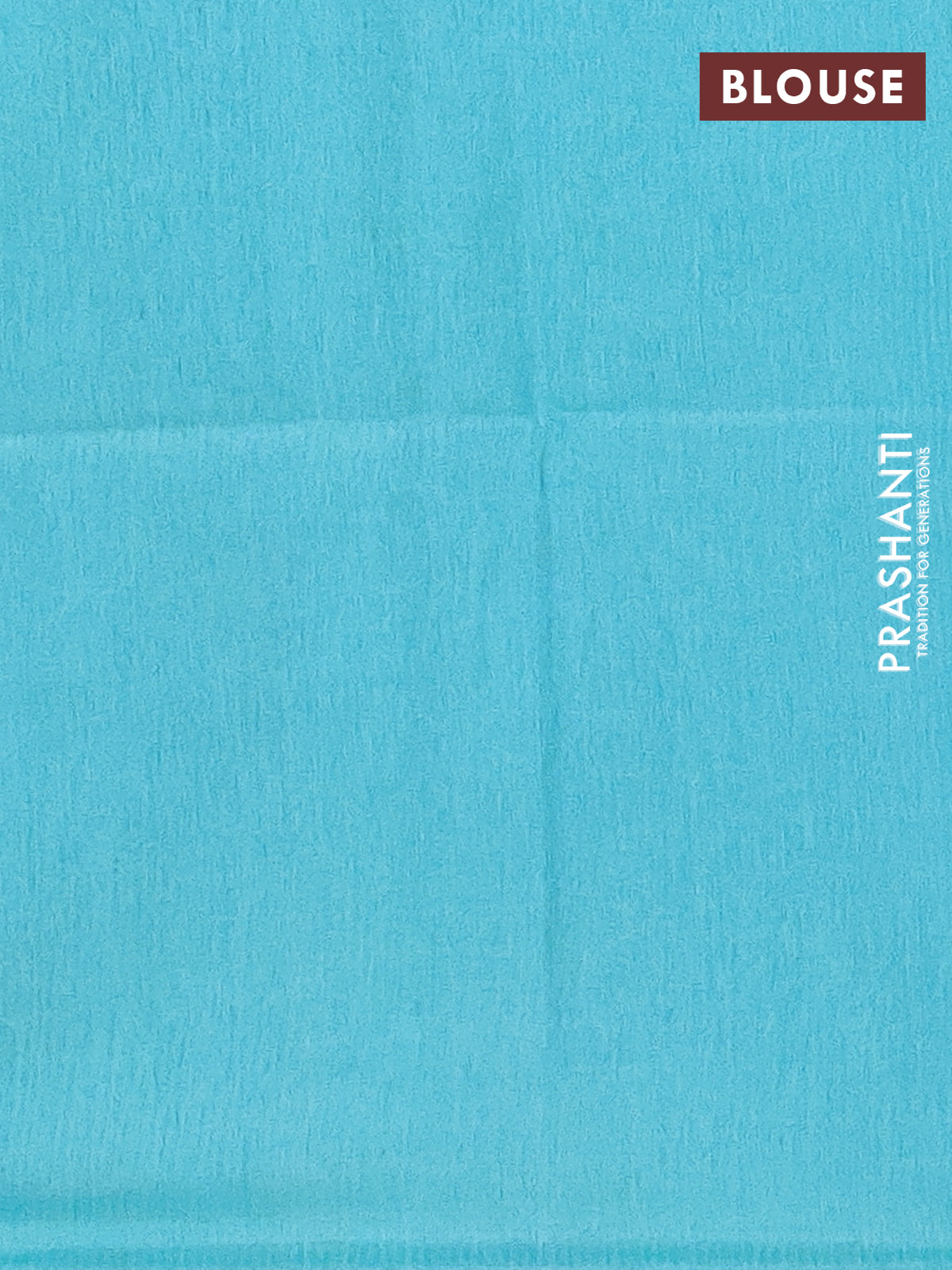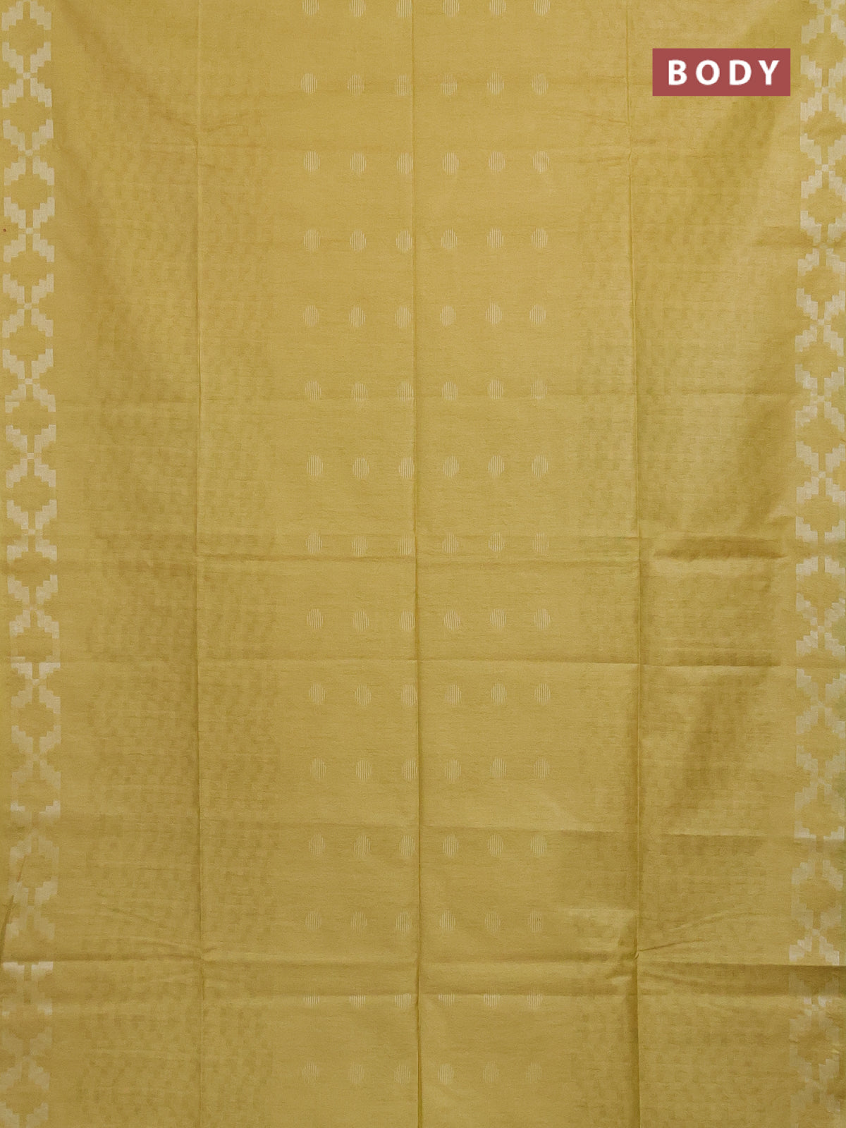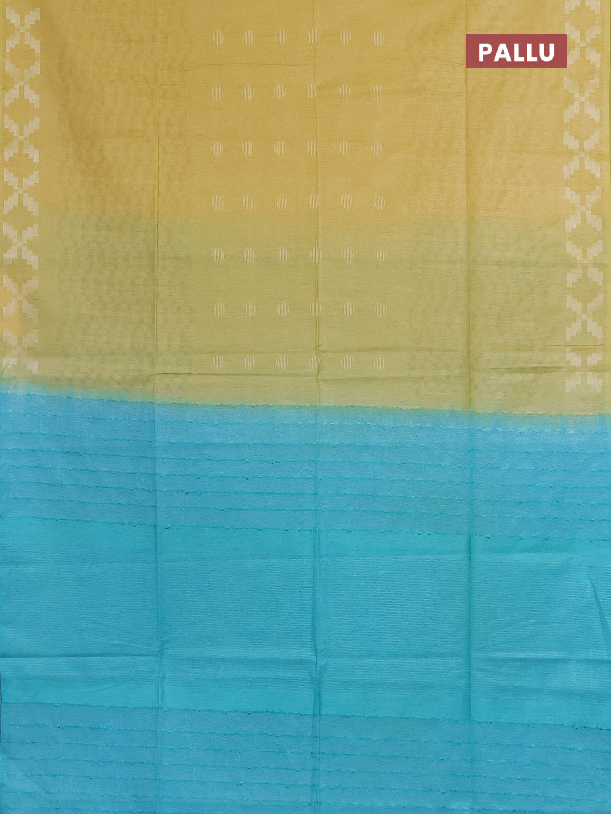 Semi bamboo saree yellow and teal blue with allover thread weaves and simple border
