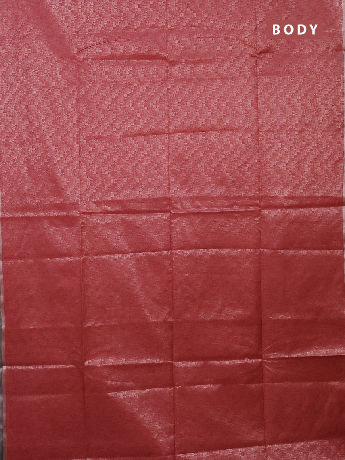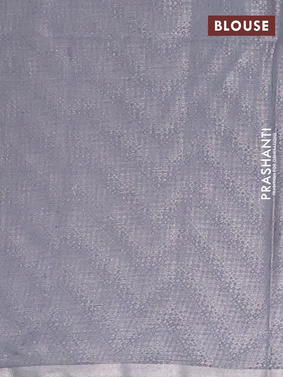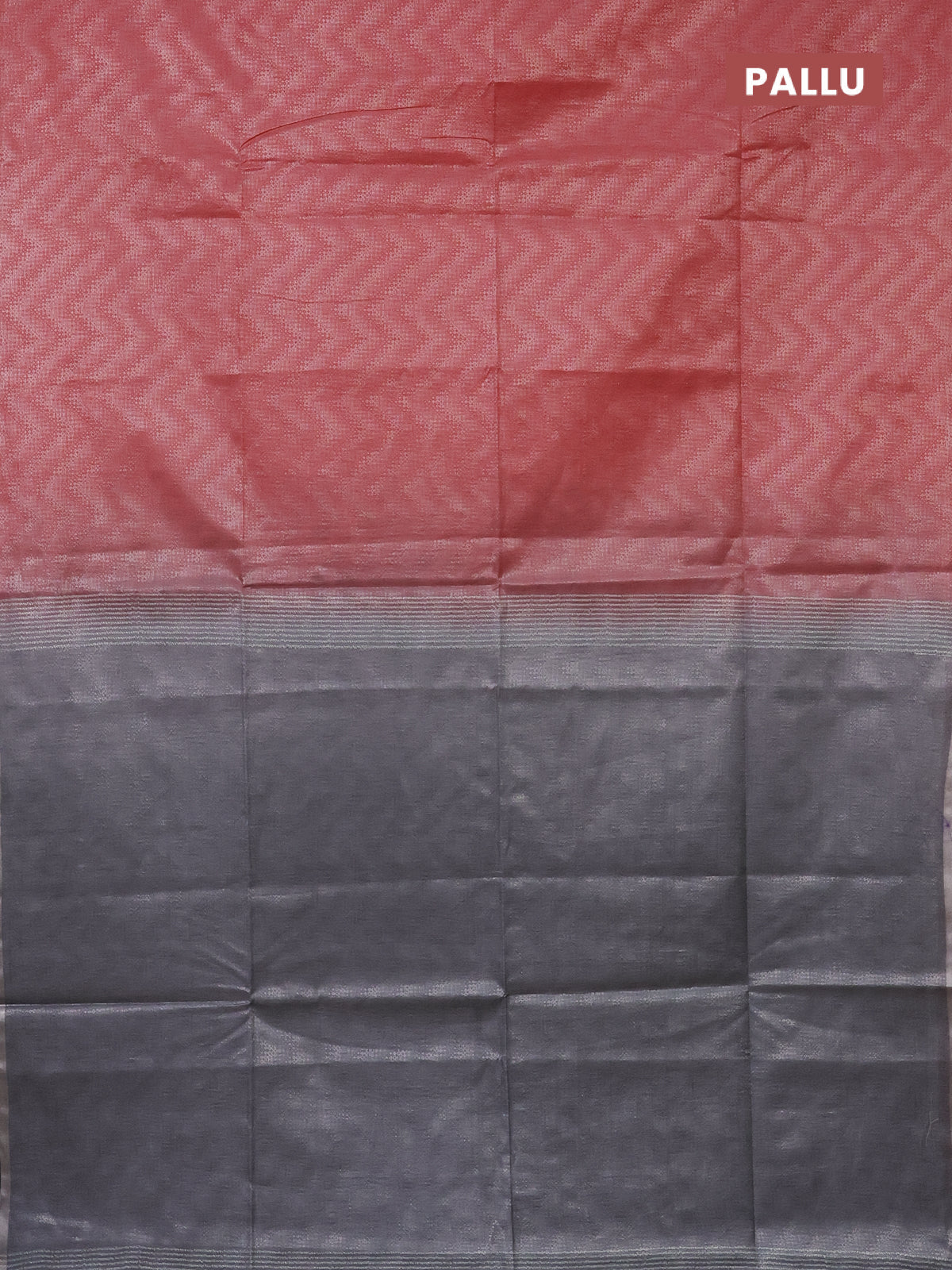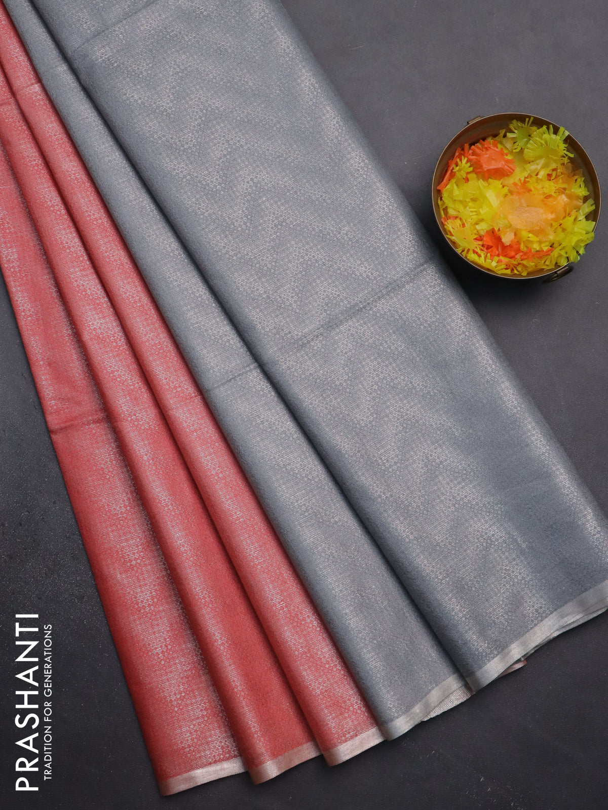 Semi bamboo tissue saree peach shade and grey with allover silver zari weaves and zari woven piping border