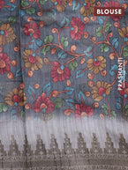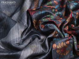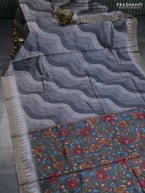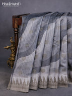 Semi banarasi tussar saree elephant grey and grey with allover wavy prints & woven buttas and woven border