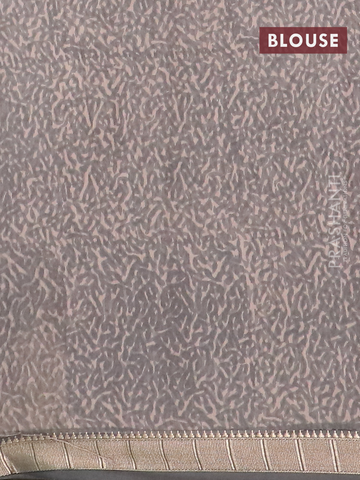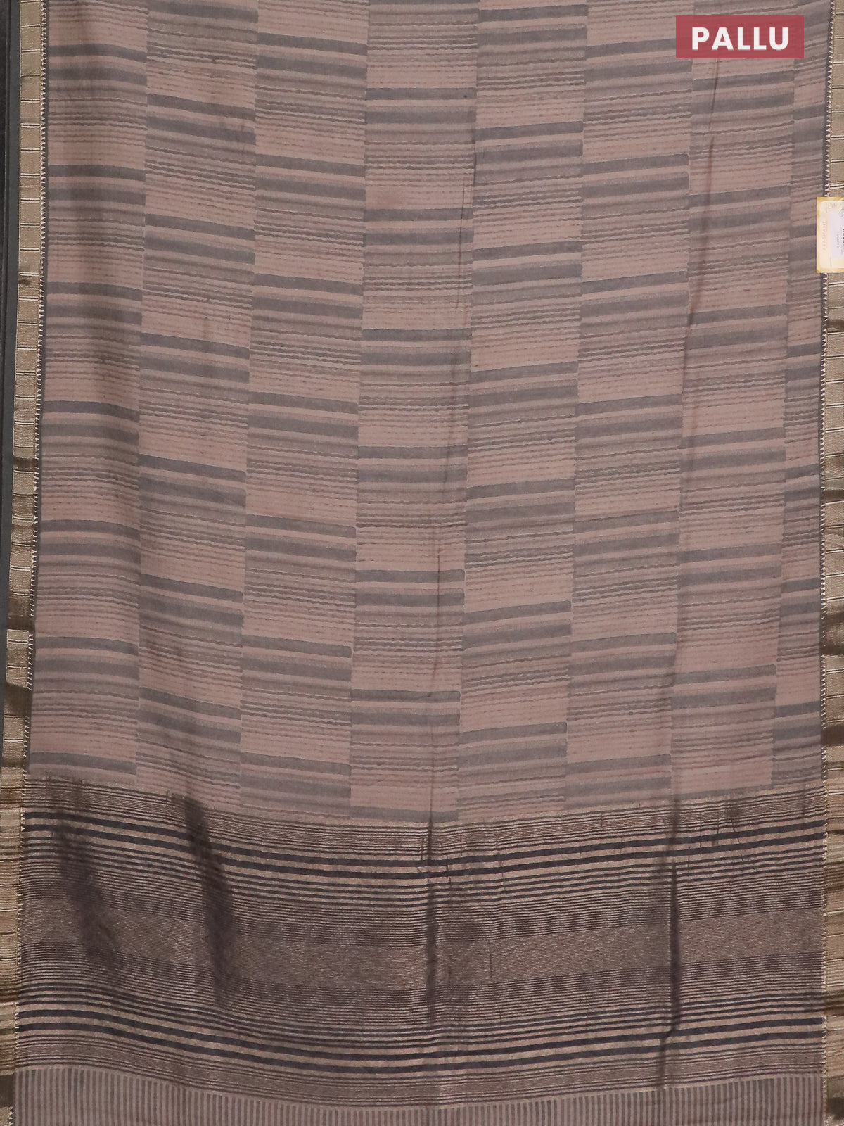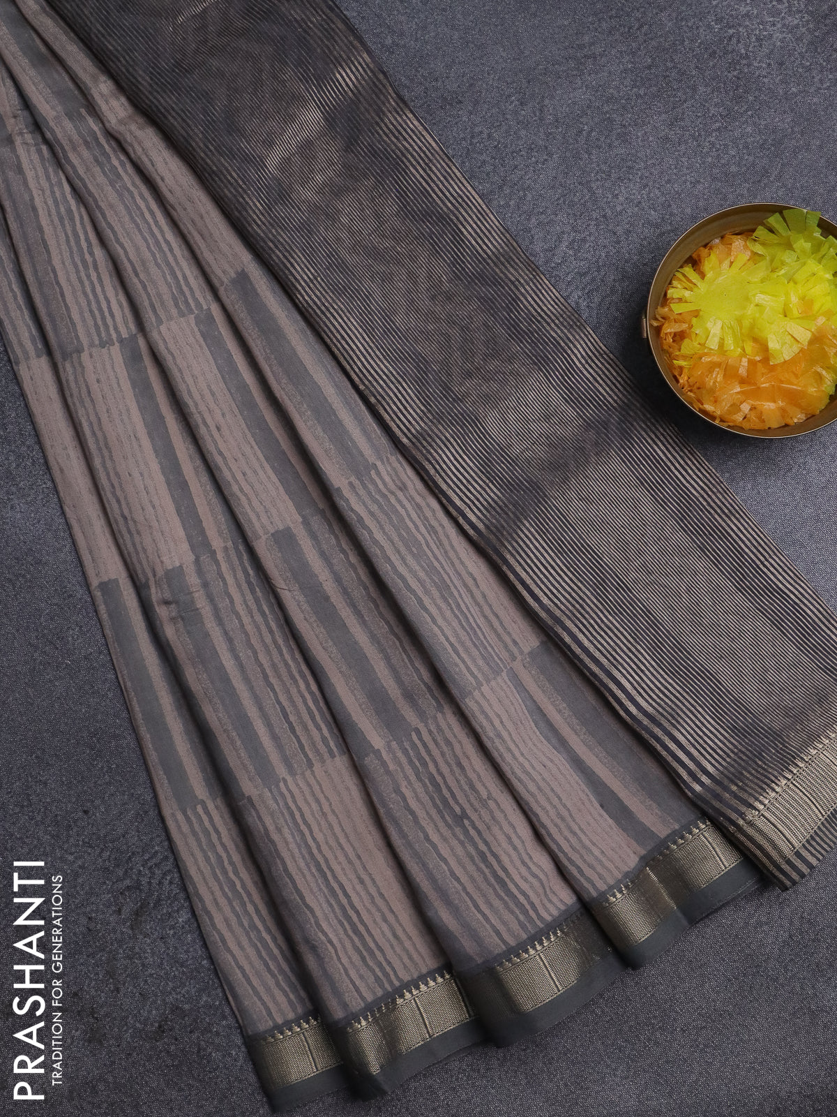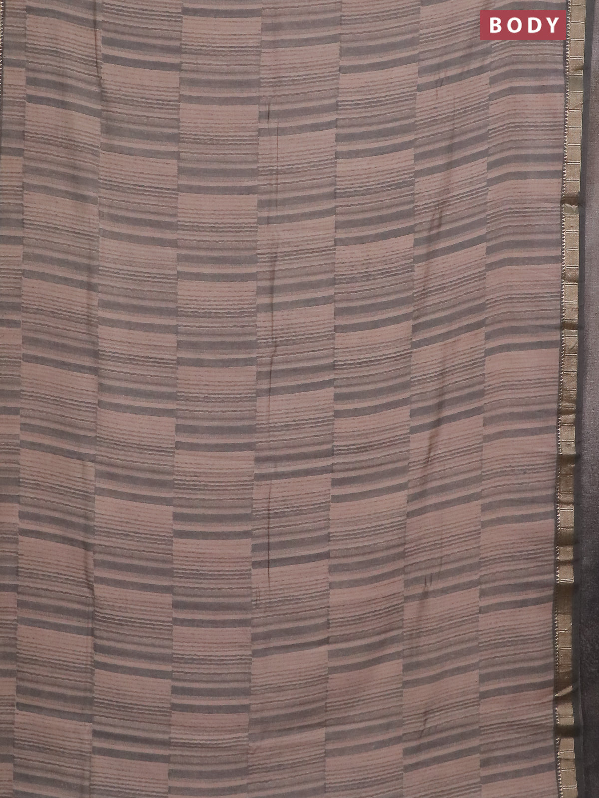 Semi chanderi saree beige and grey with allover stripe pattern and zari woven border