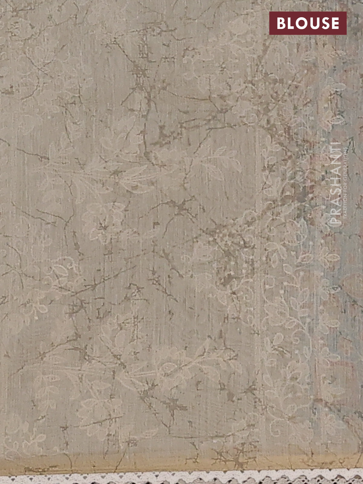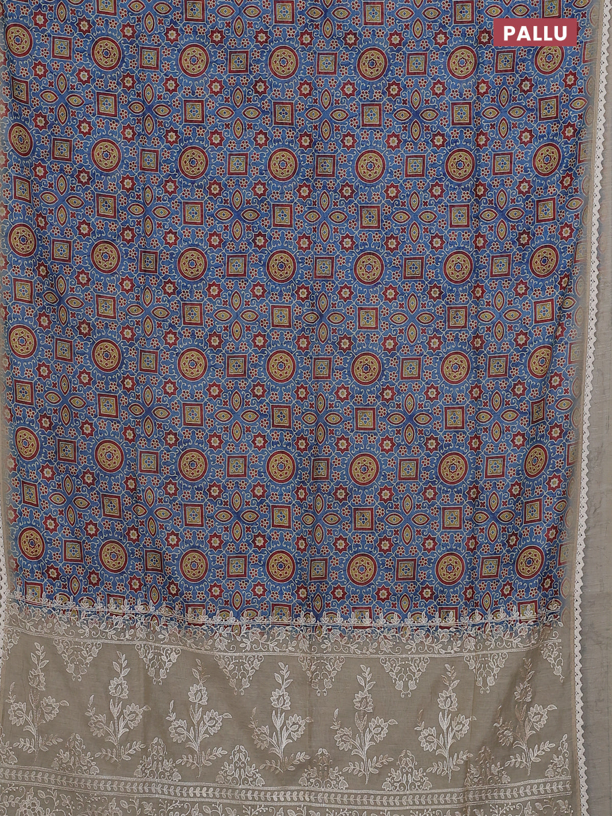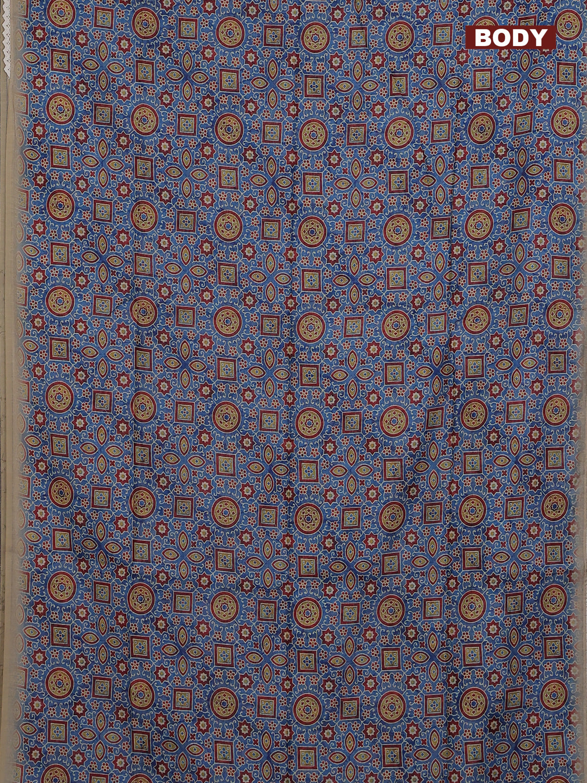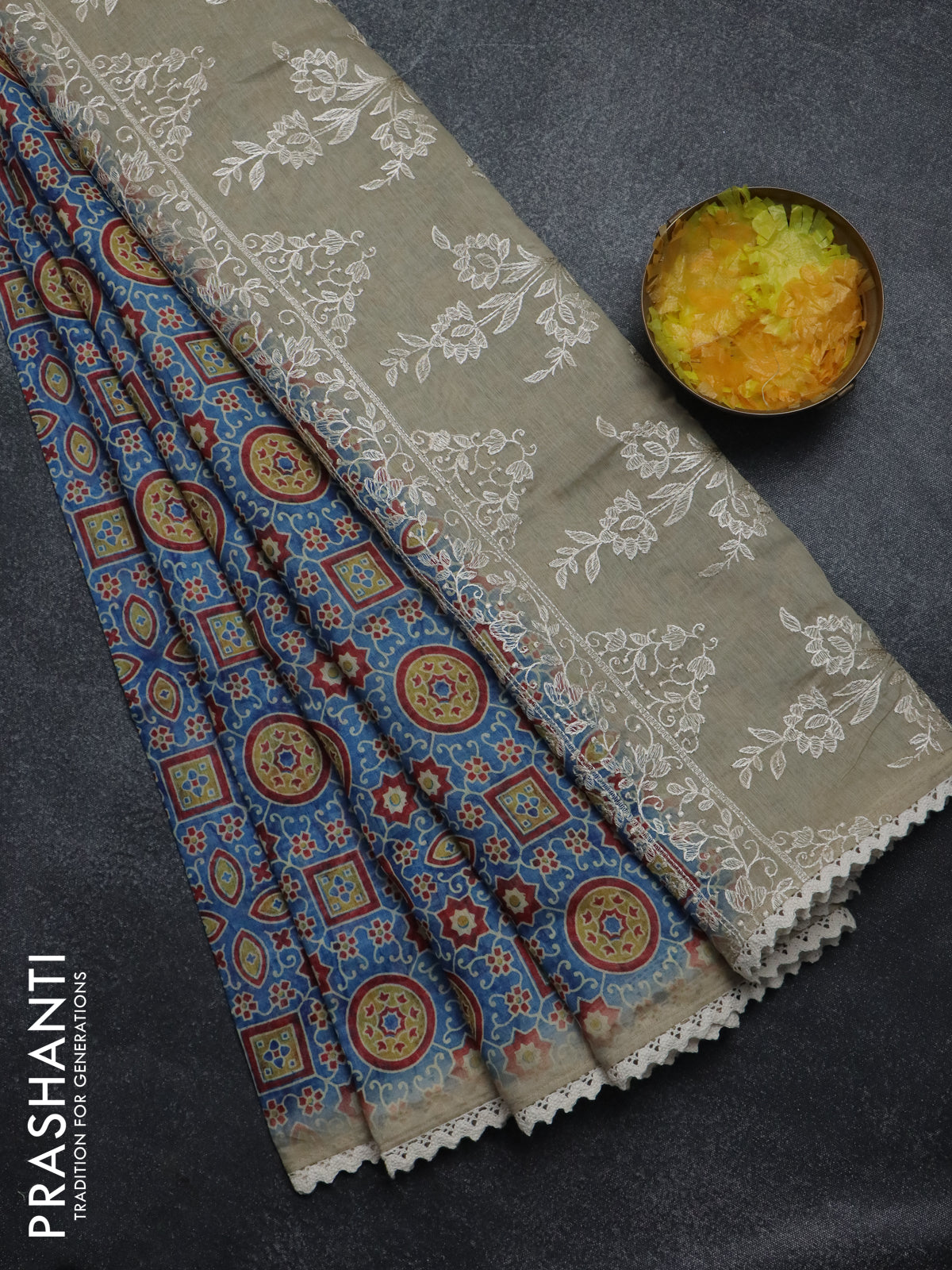 Semi chanderi saree blue and beige with allover ajrakh prints and embroidery pallu