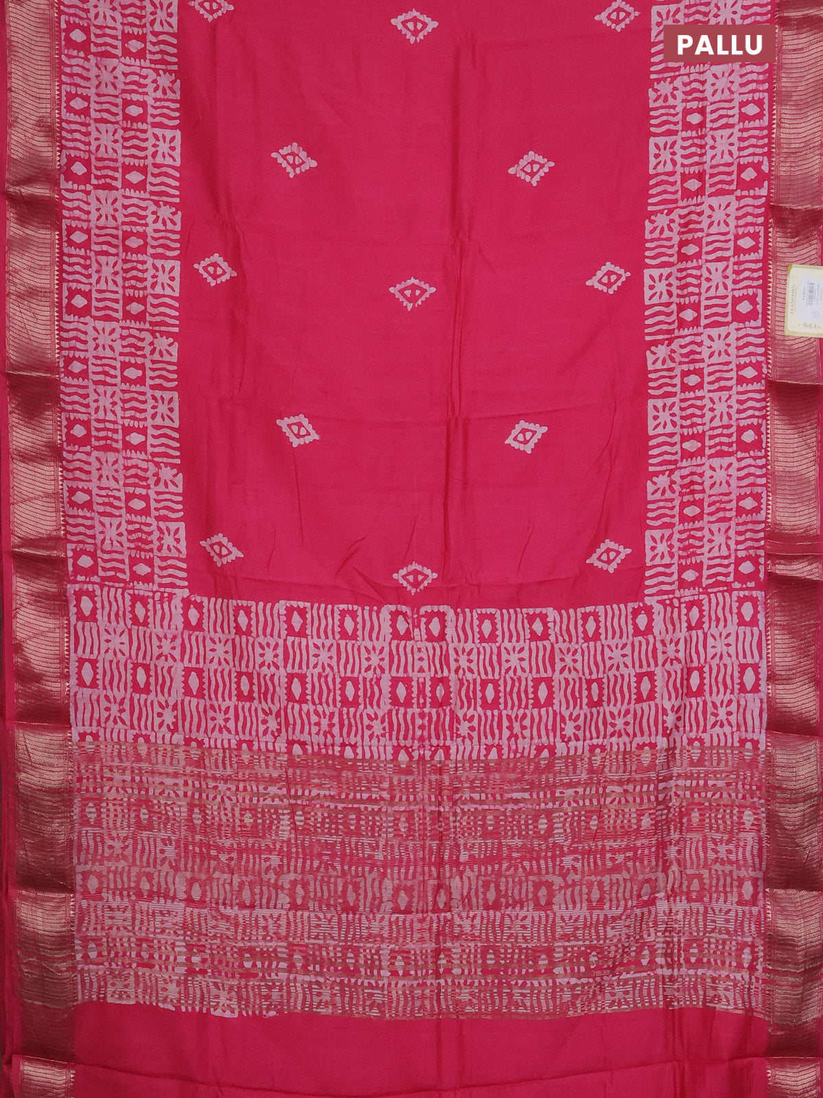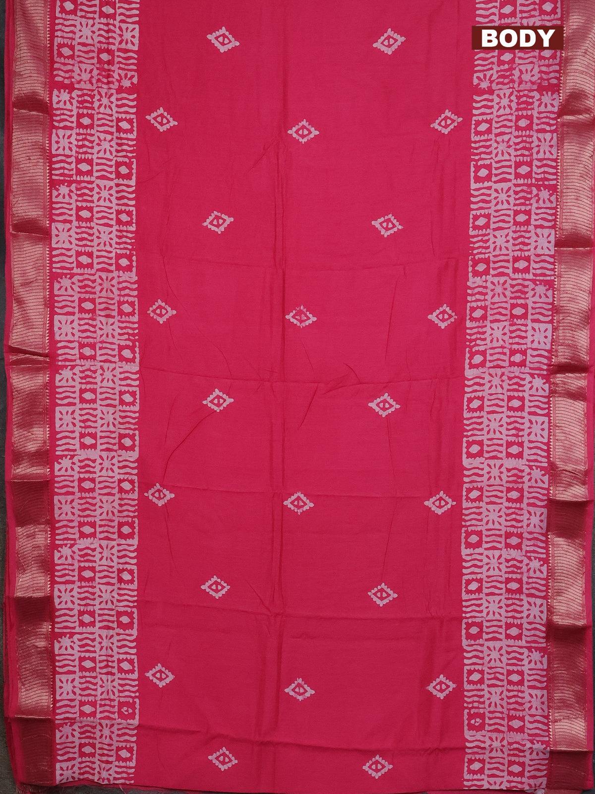 Semi chanderi saree candy pink and off white with barik butta prints and long printed zari border