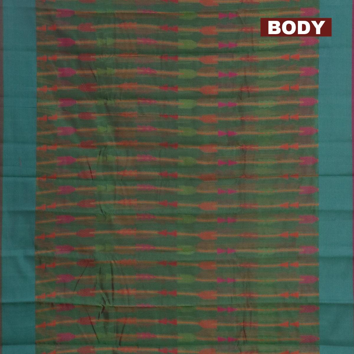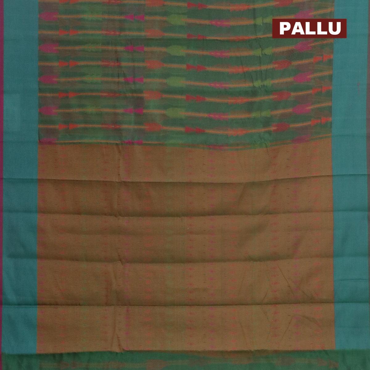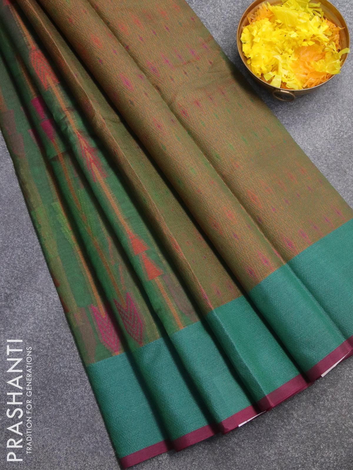 Semi chanderi saree dual shade of green and pink with allover thread weaves and woven border