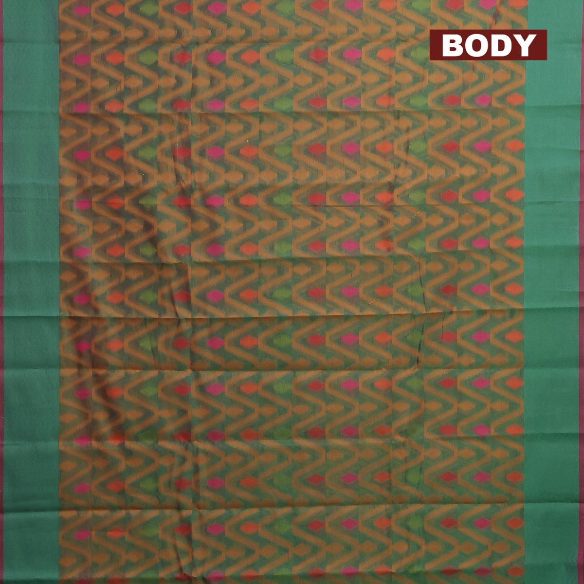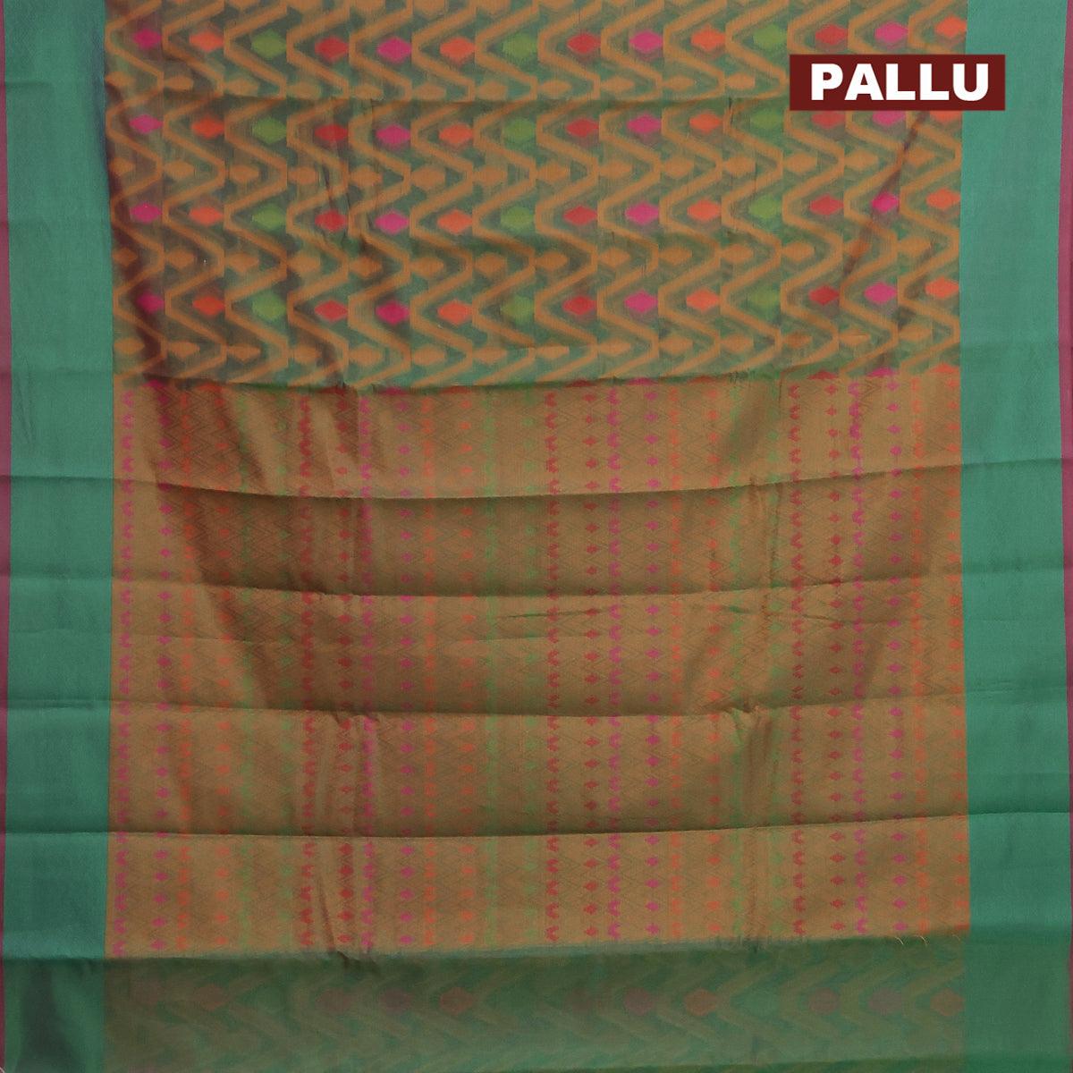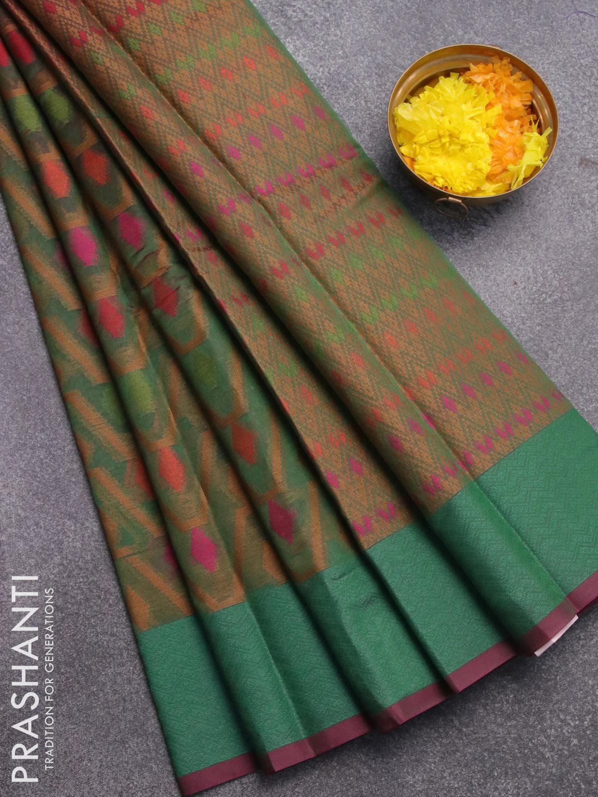 Semi chanderi saree dual shade of greenish pink and with allover thread weaves and woven border
