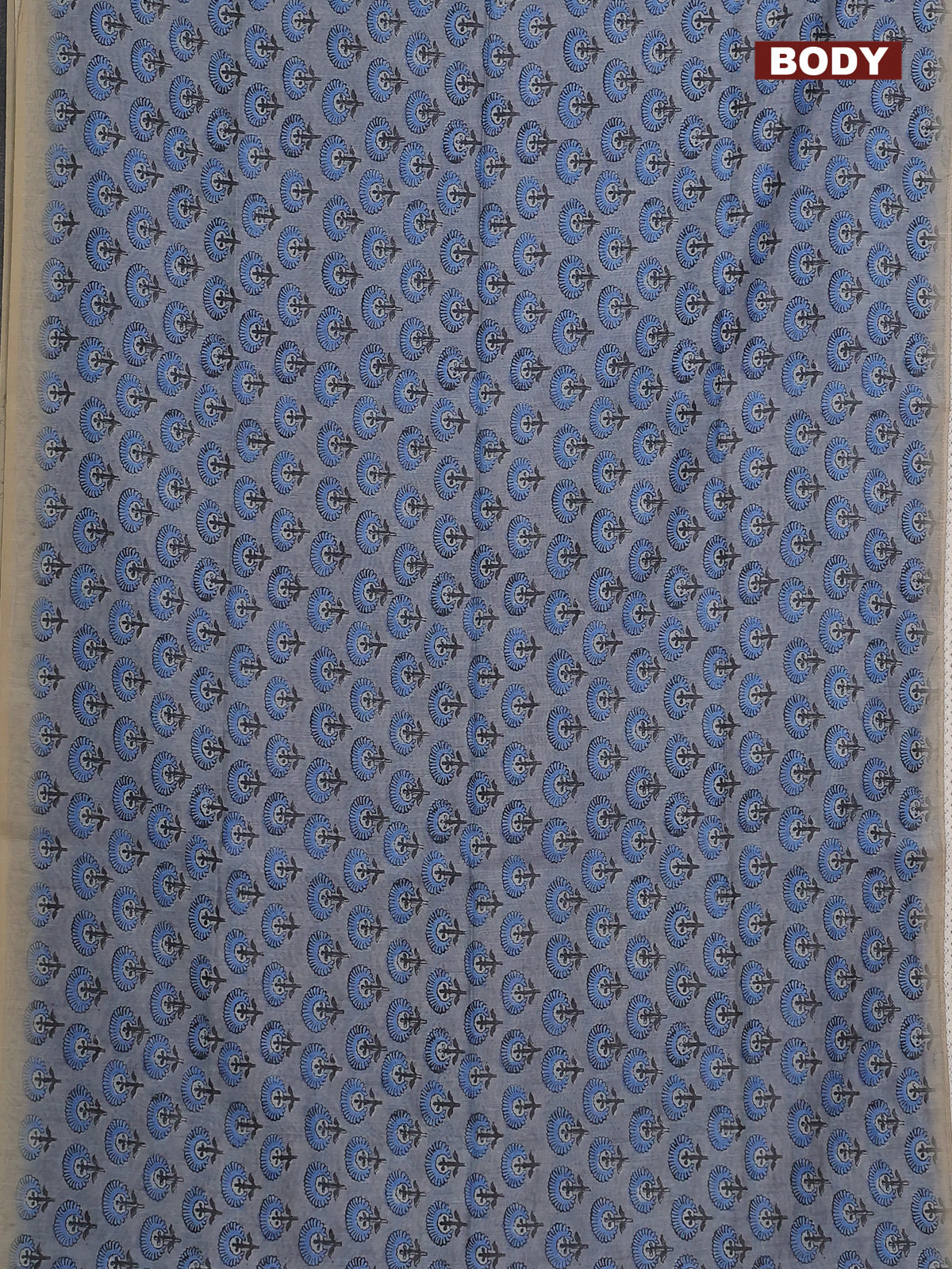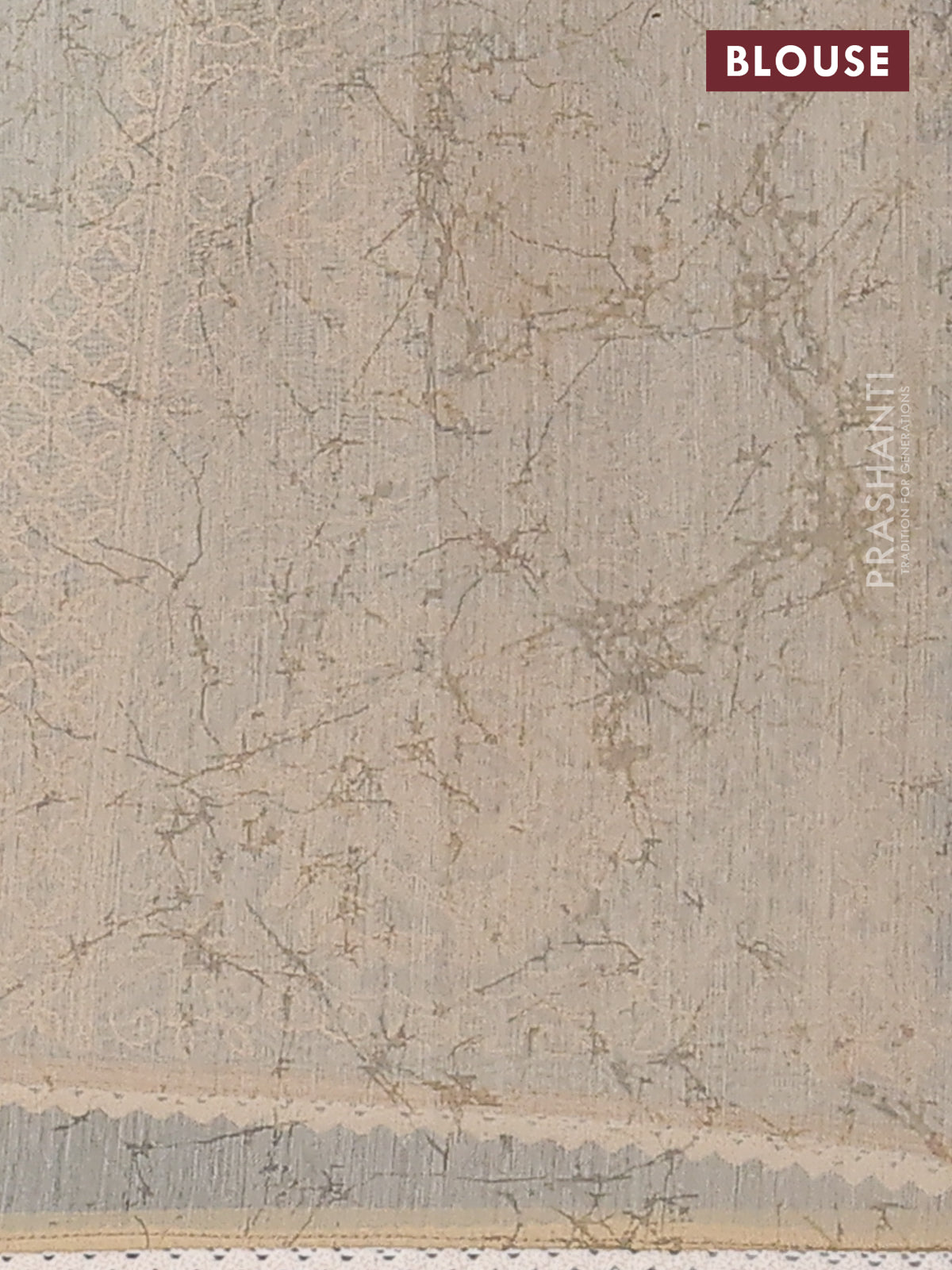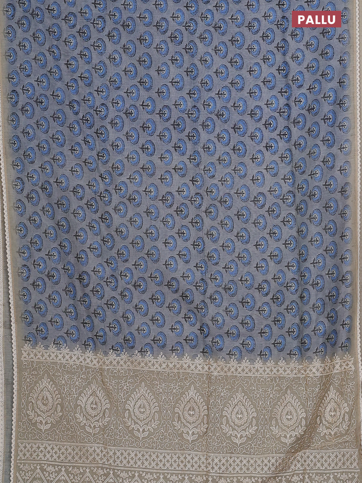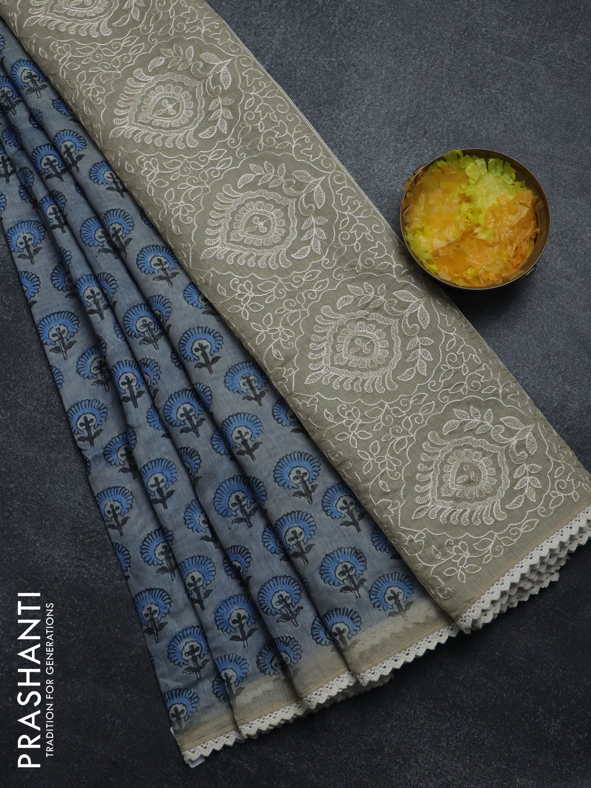 Semi chanderi saree grey blue and beige with floral butta prints and embroidery pallu