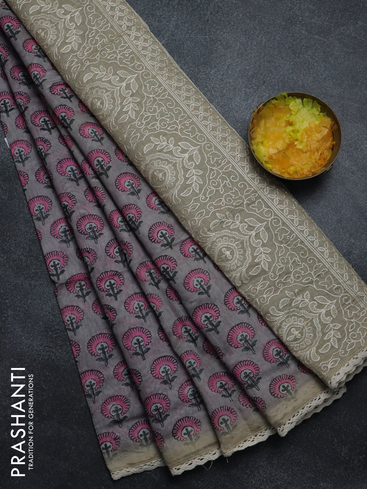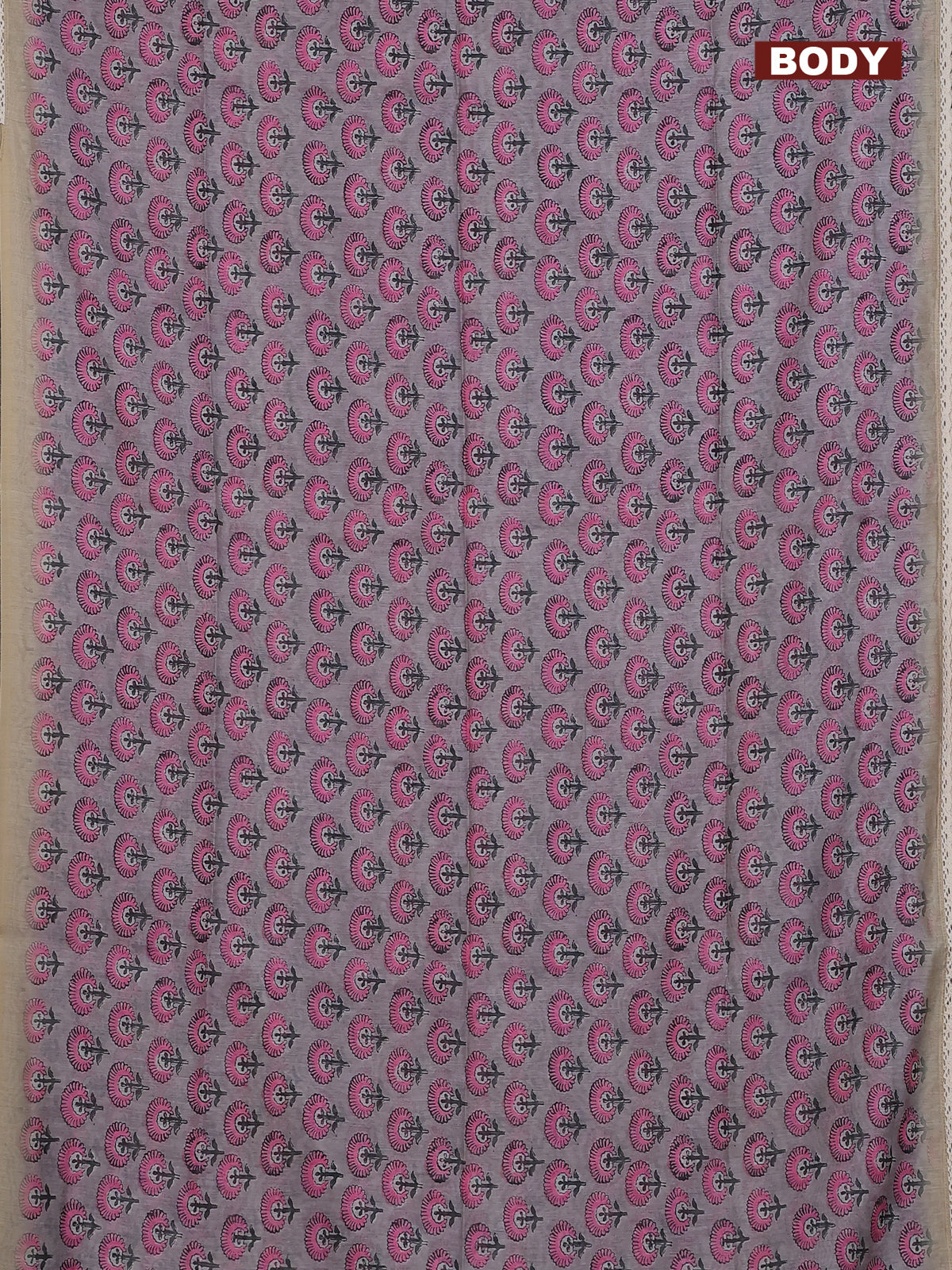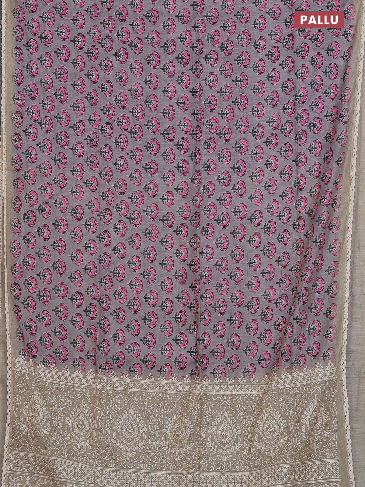 Semi chanderi saree grey pink and beige with floral butta prints and embroidery pallu