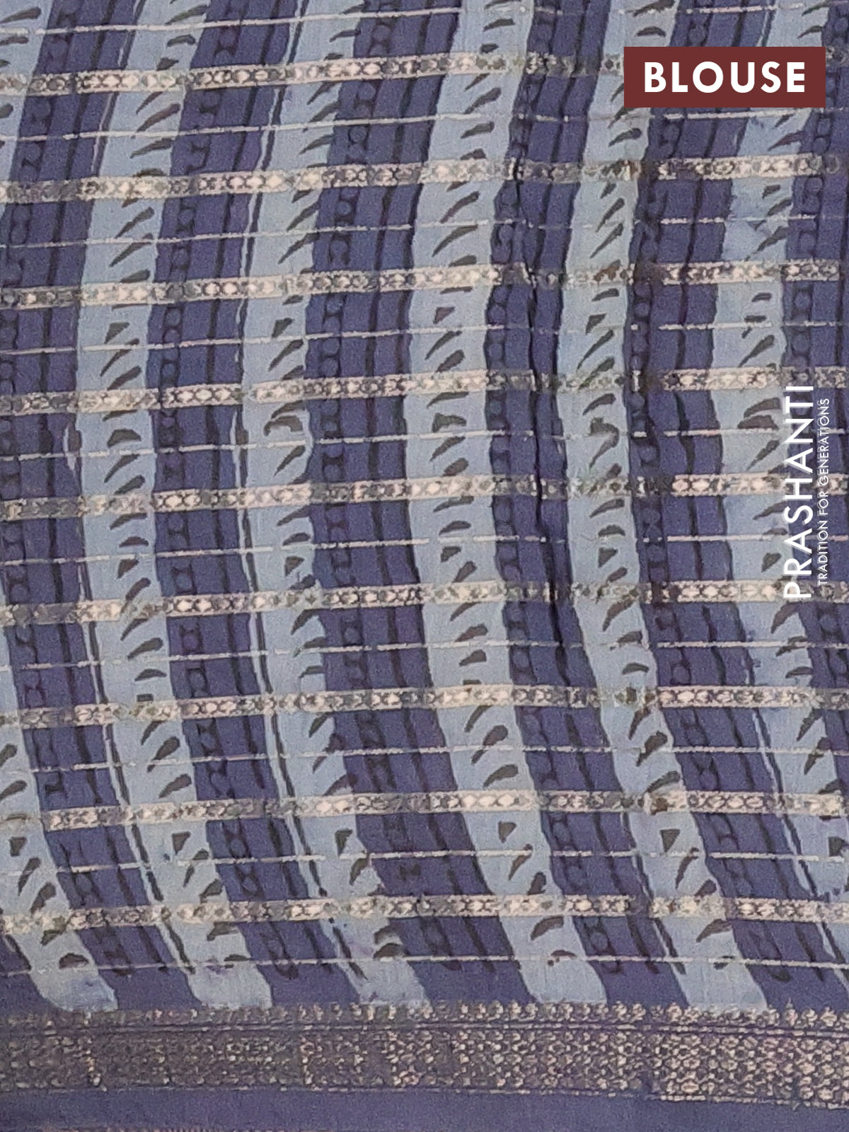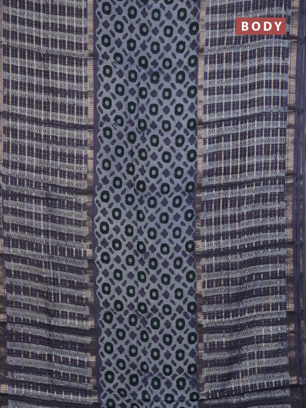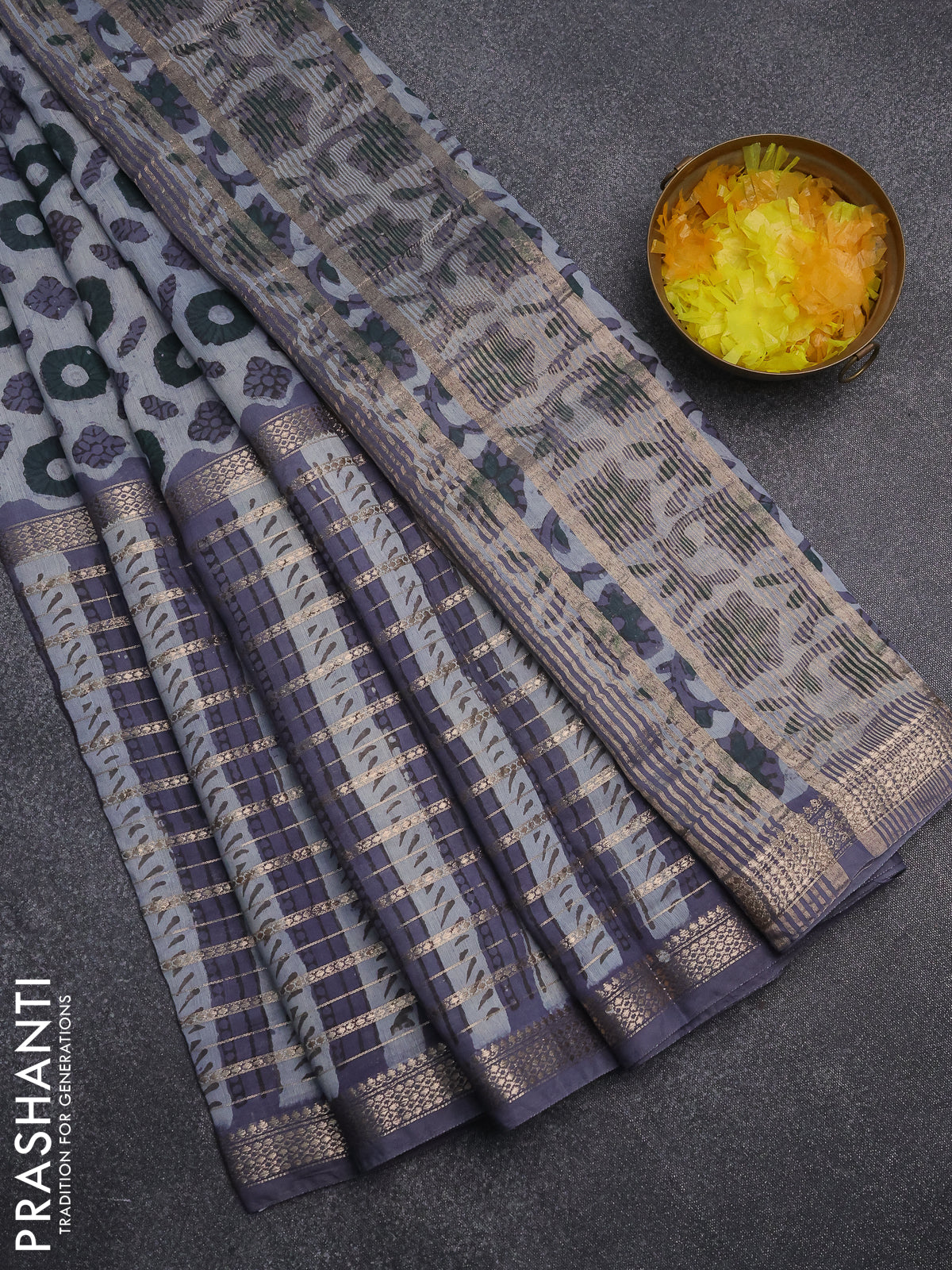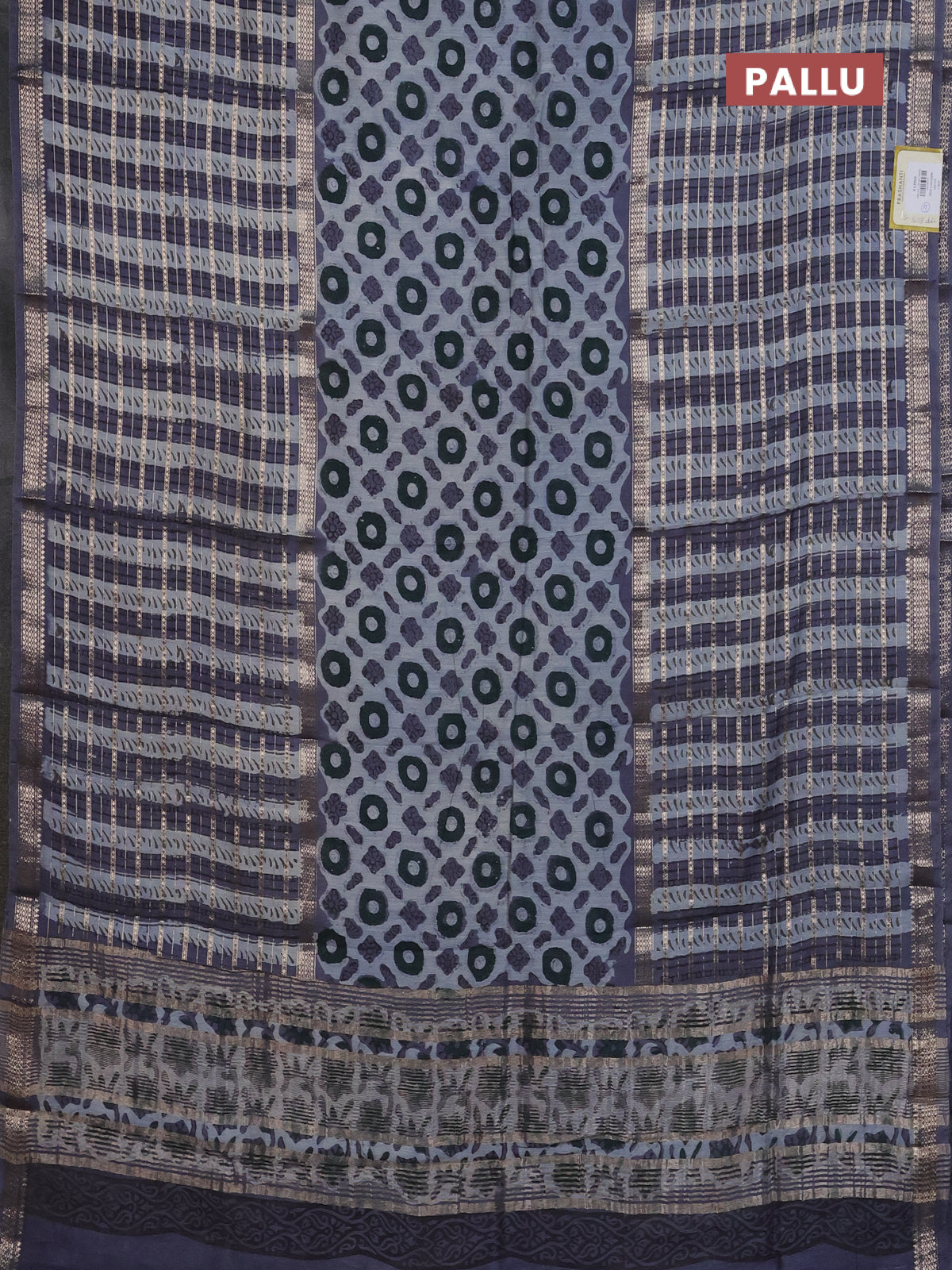 Semi chanderi saree greyish blue and grey with allover ajrakh prints and long printed zari border