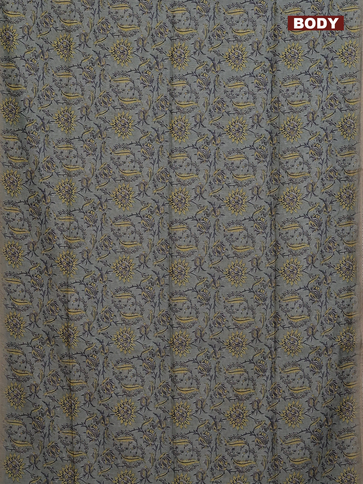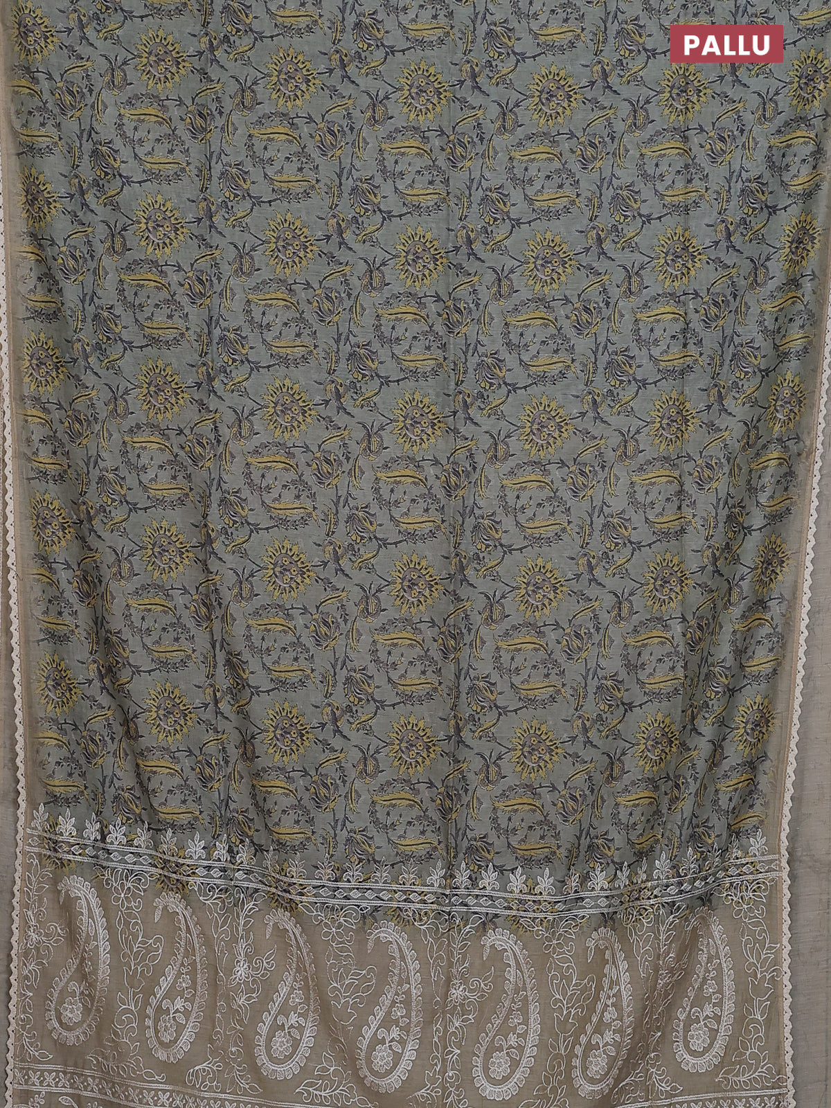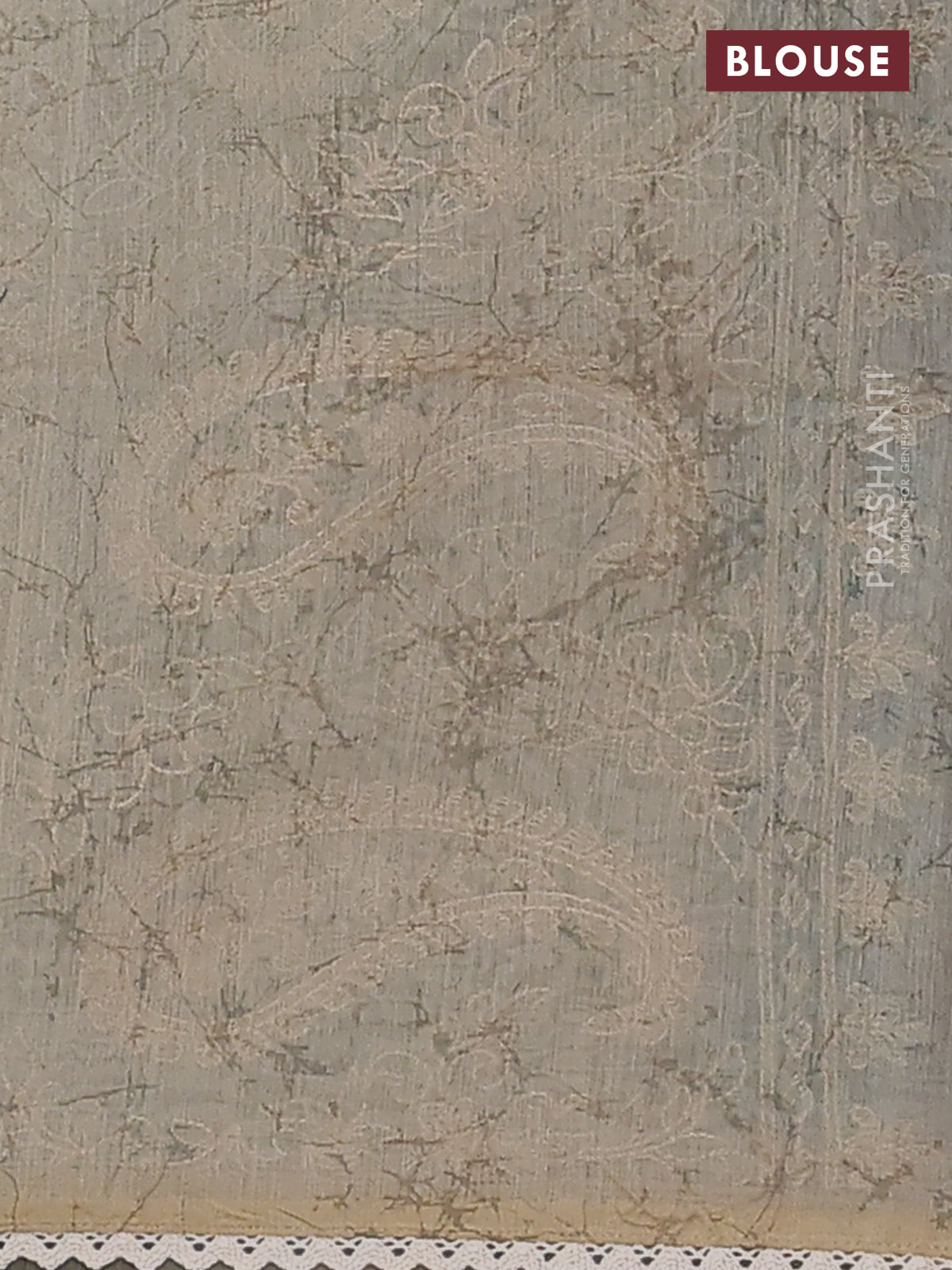 Semi chanderi saree greyish green and beige with allover prints and embroidery pallu