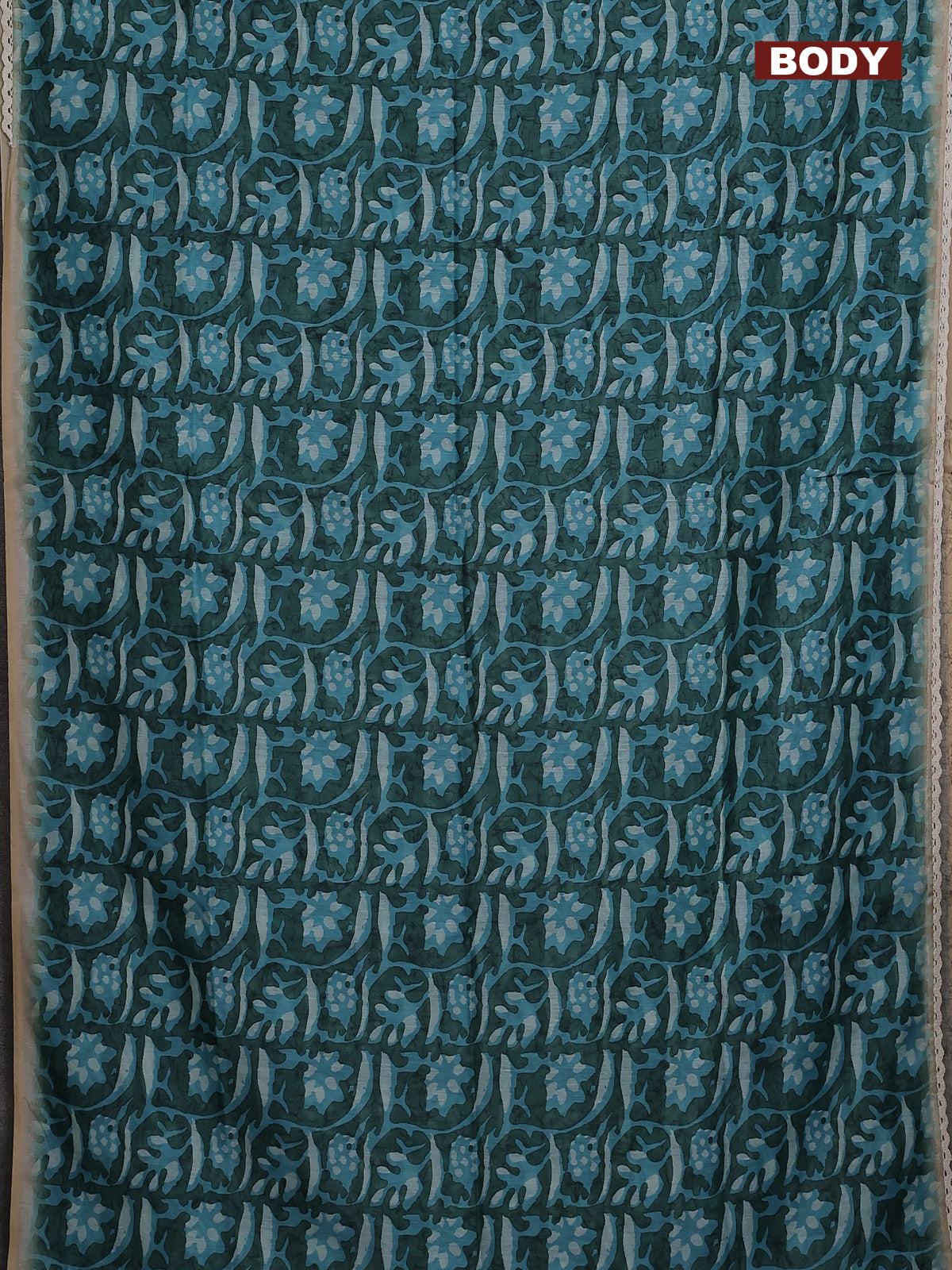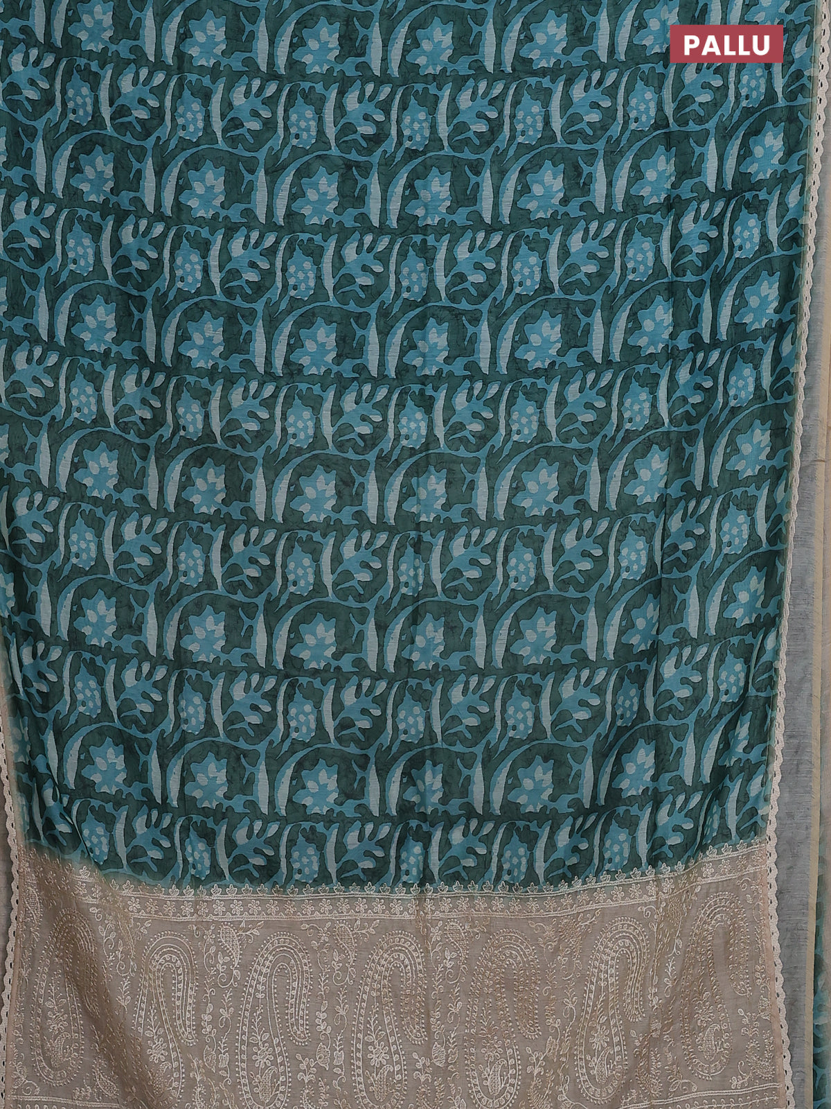 Semi chanderi saree light blue and beige with allover batik ptrints and embroidery pallu