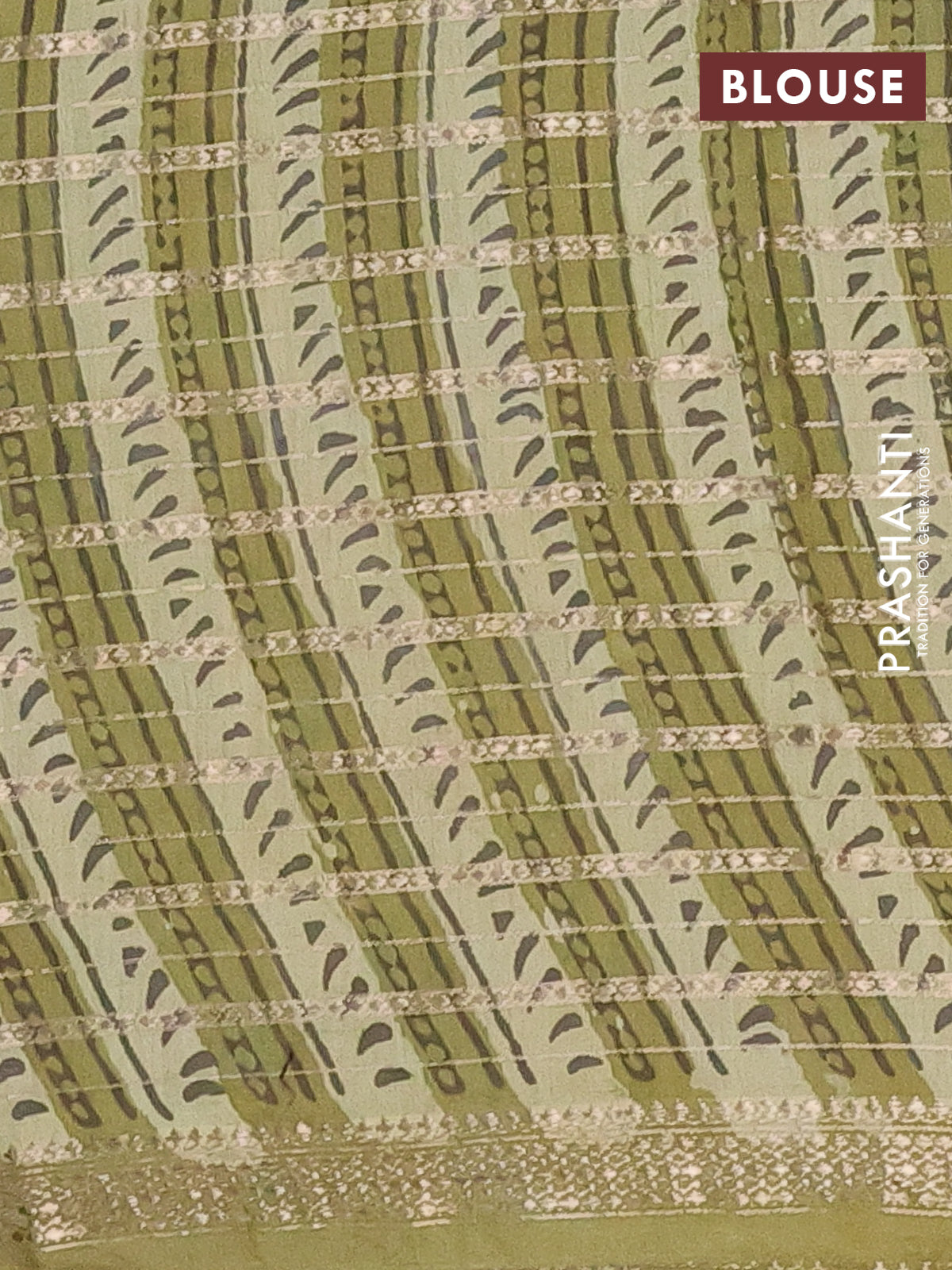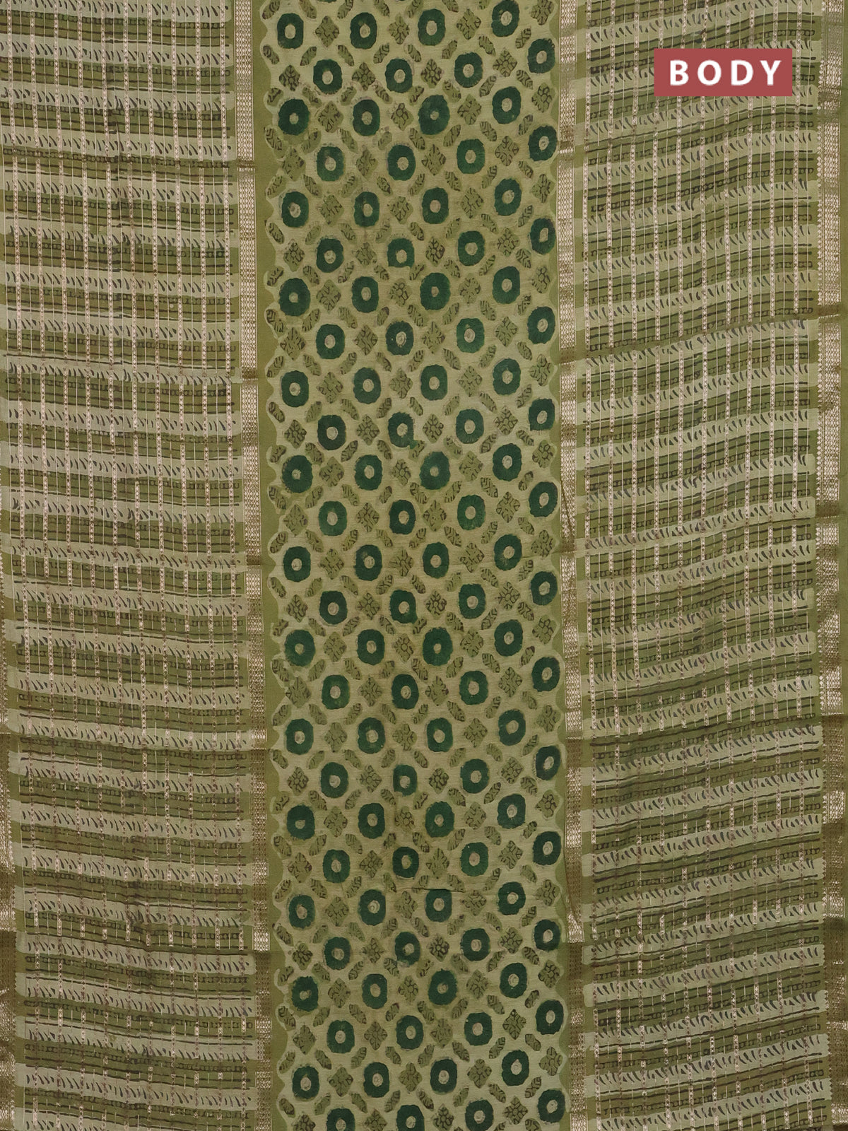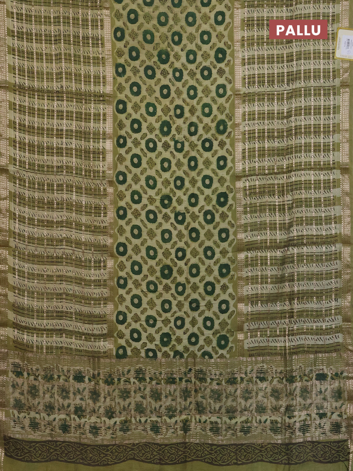 Semi chanderi saree lime green and green with allover ajrakh prints and long printed zari border