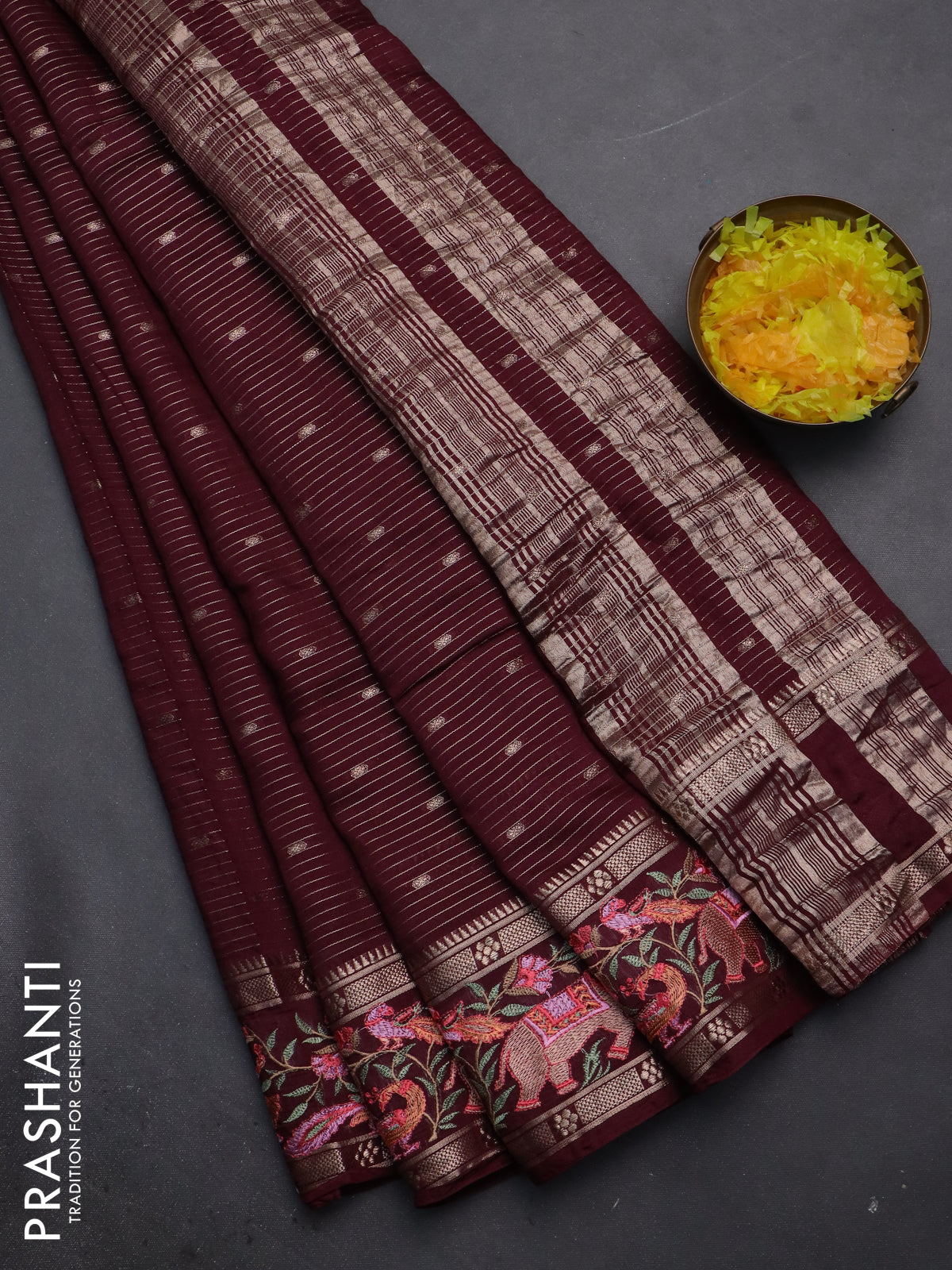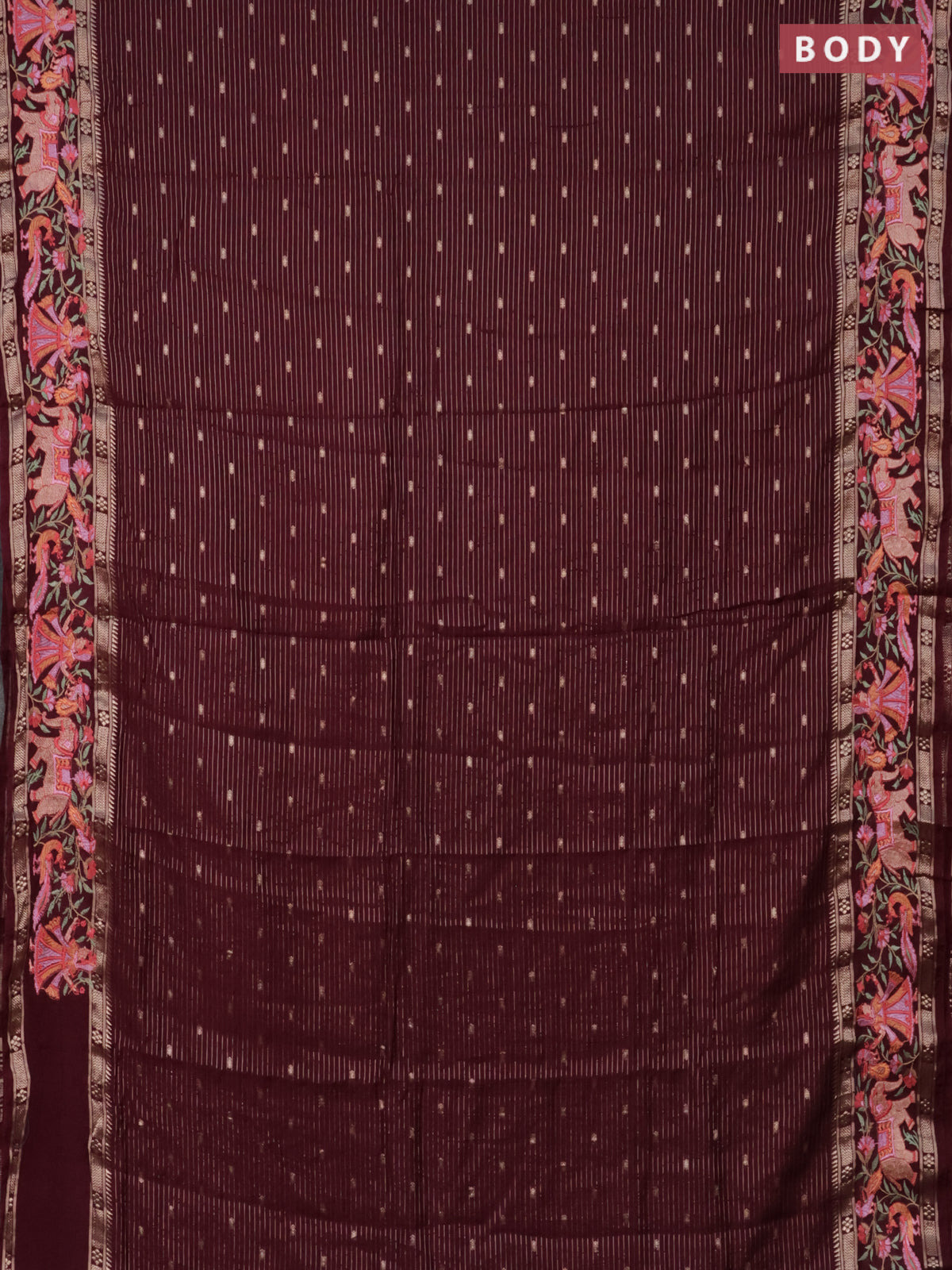 Semi chanderi saree maroon with allover zari weaves & buttas and embroidery border
