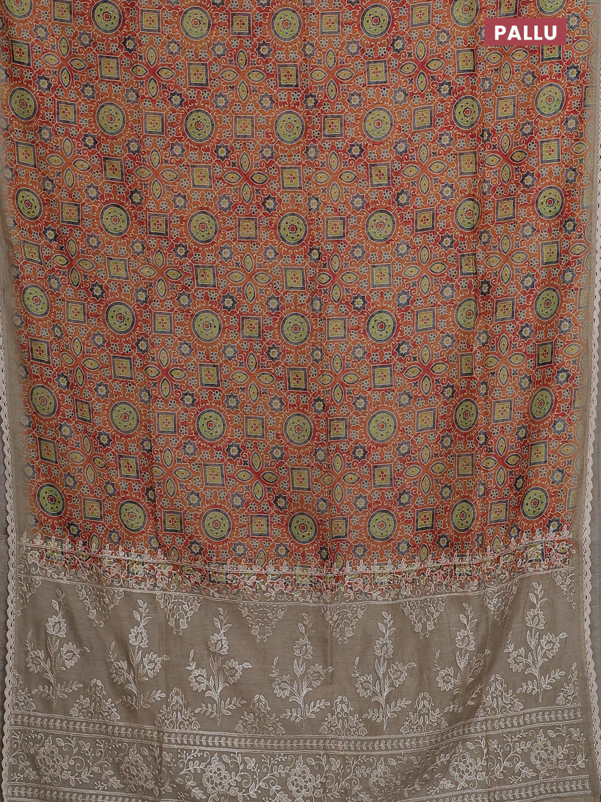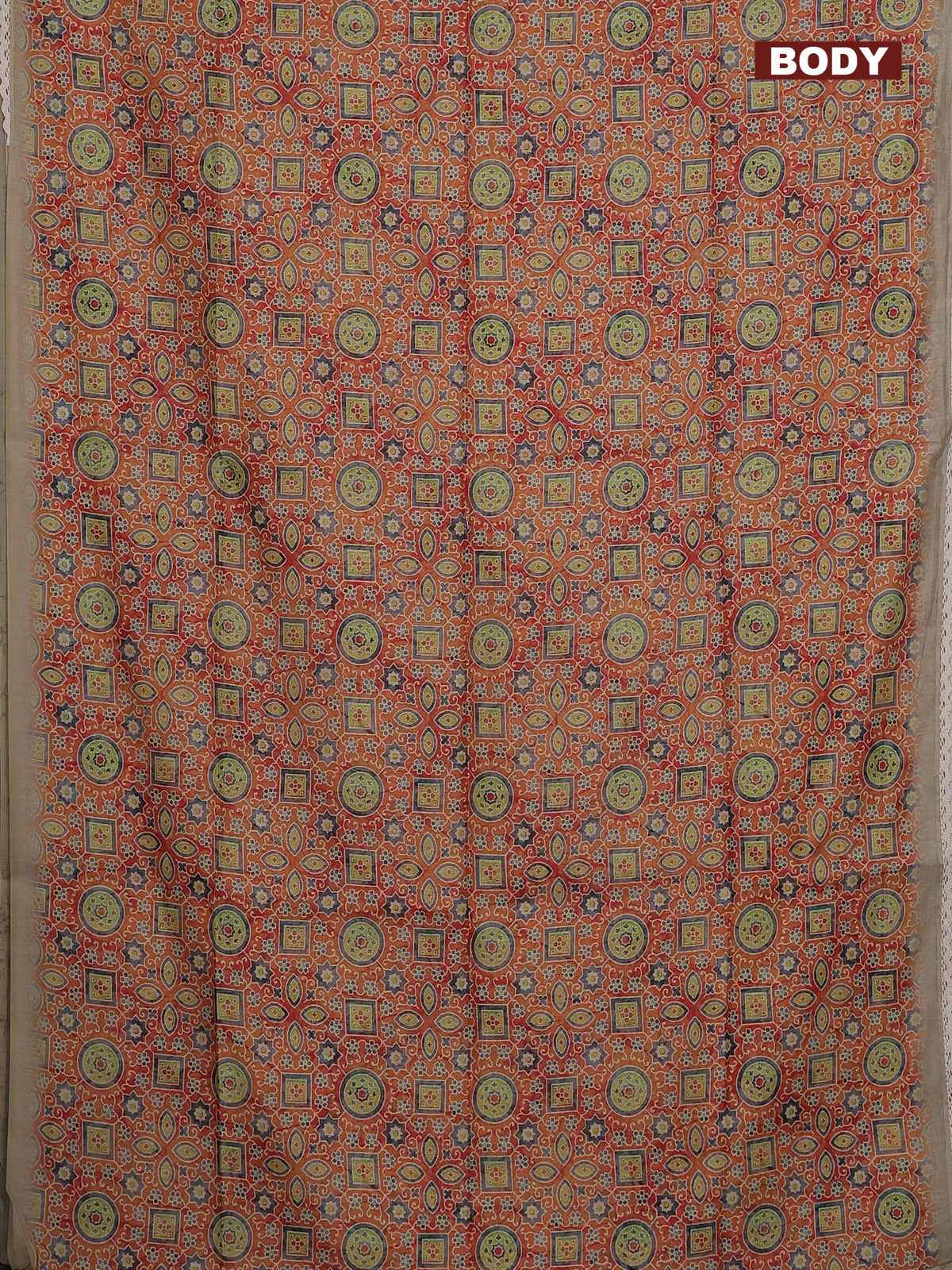 Semi chanderi saree orange and beige with allover ajrakh prints and embroidery pallu