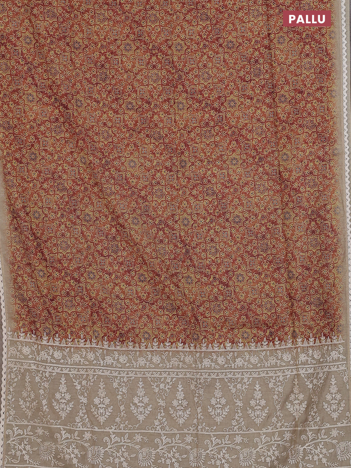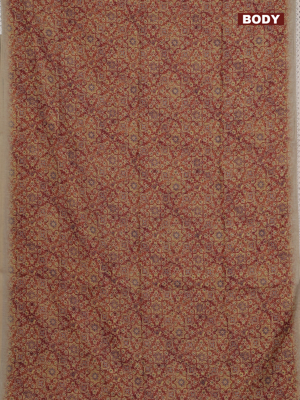 Semi chanderi saree pastel brown and beige with allover ajrakh prints and embroidery pallu