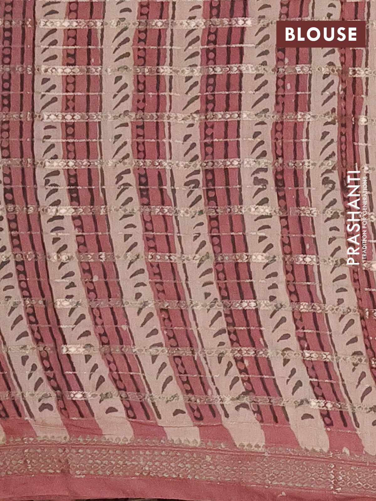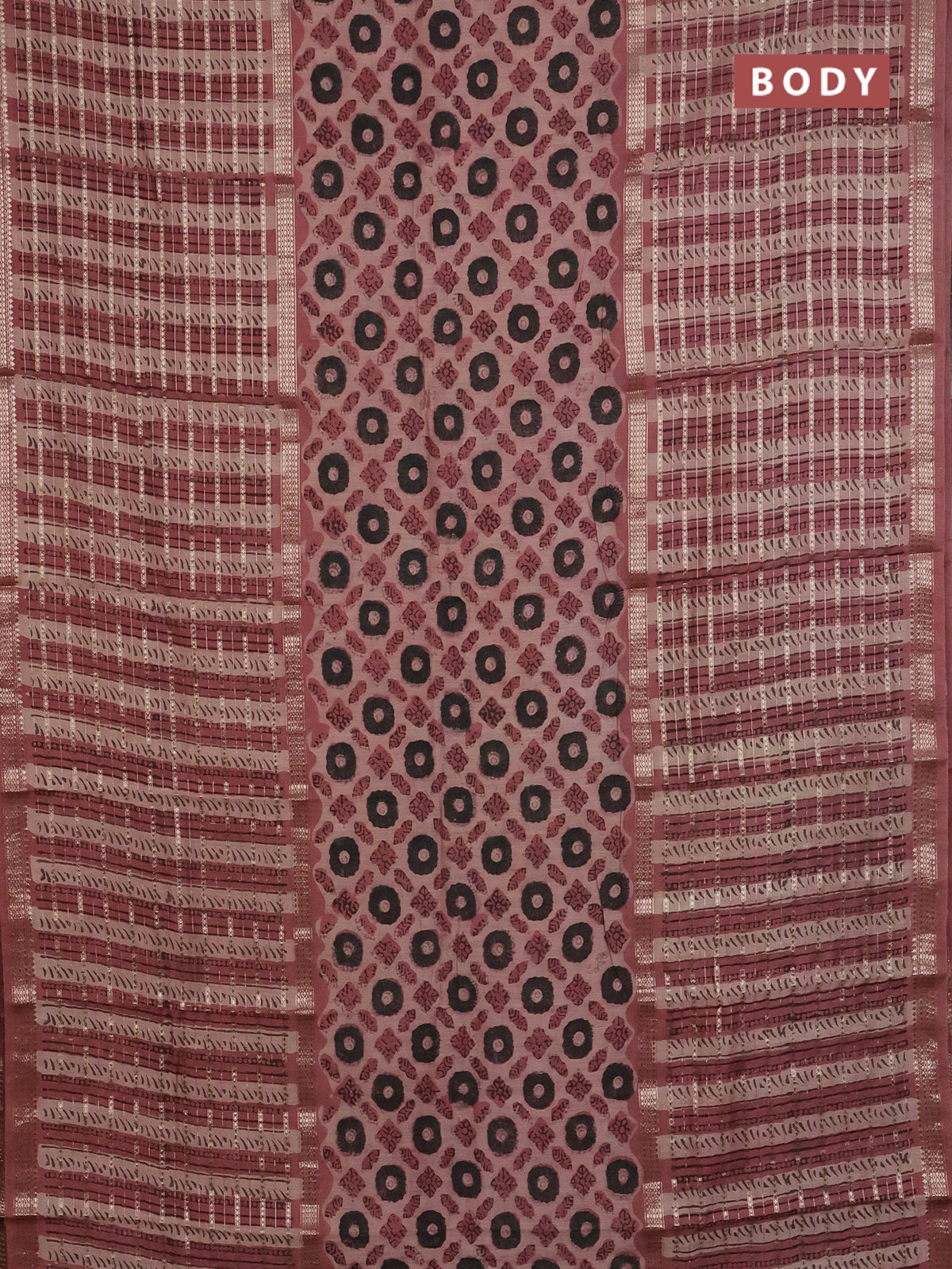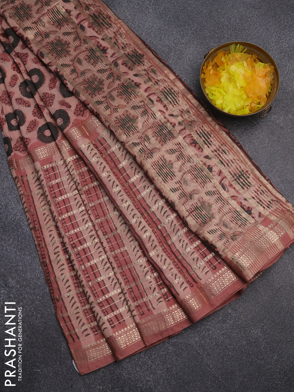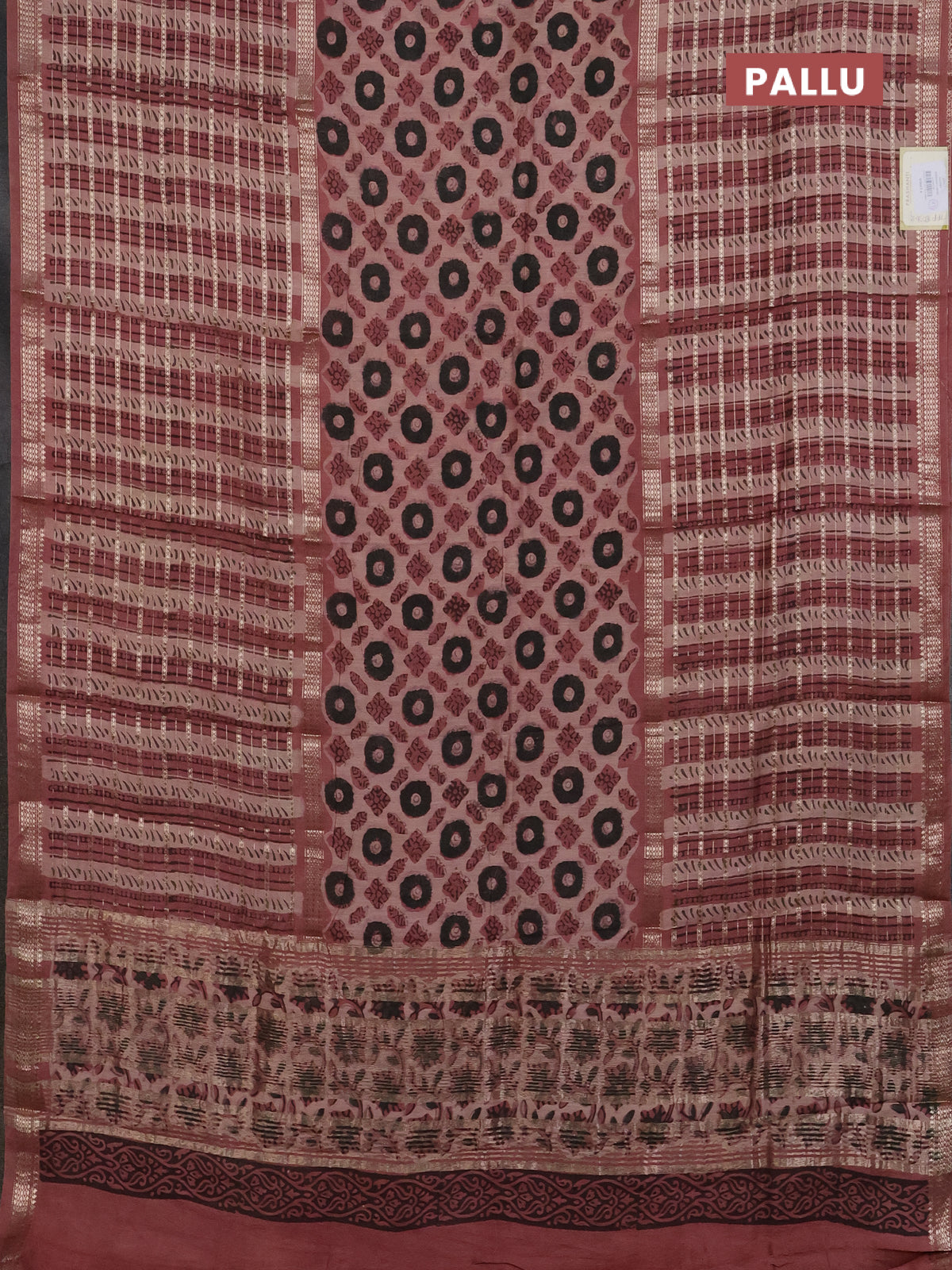 Semi chanderi saree pastel peach shade with allover ajrakh prints and long printed zari border
