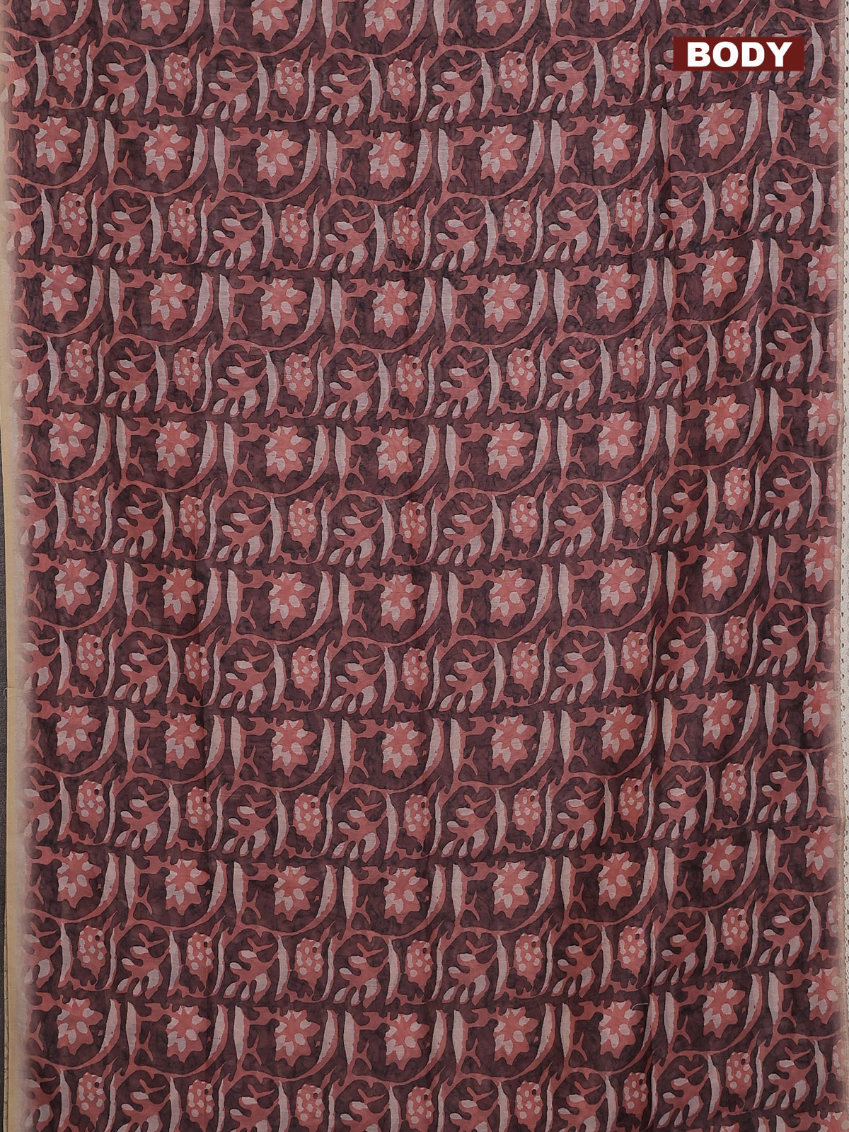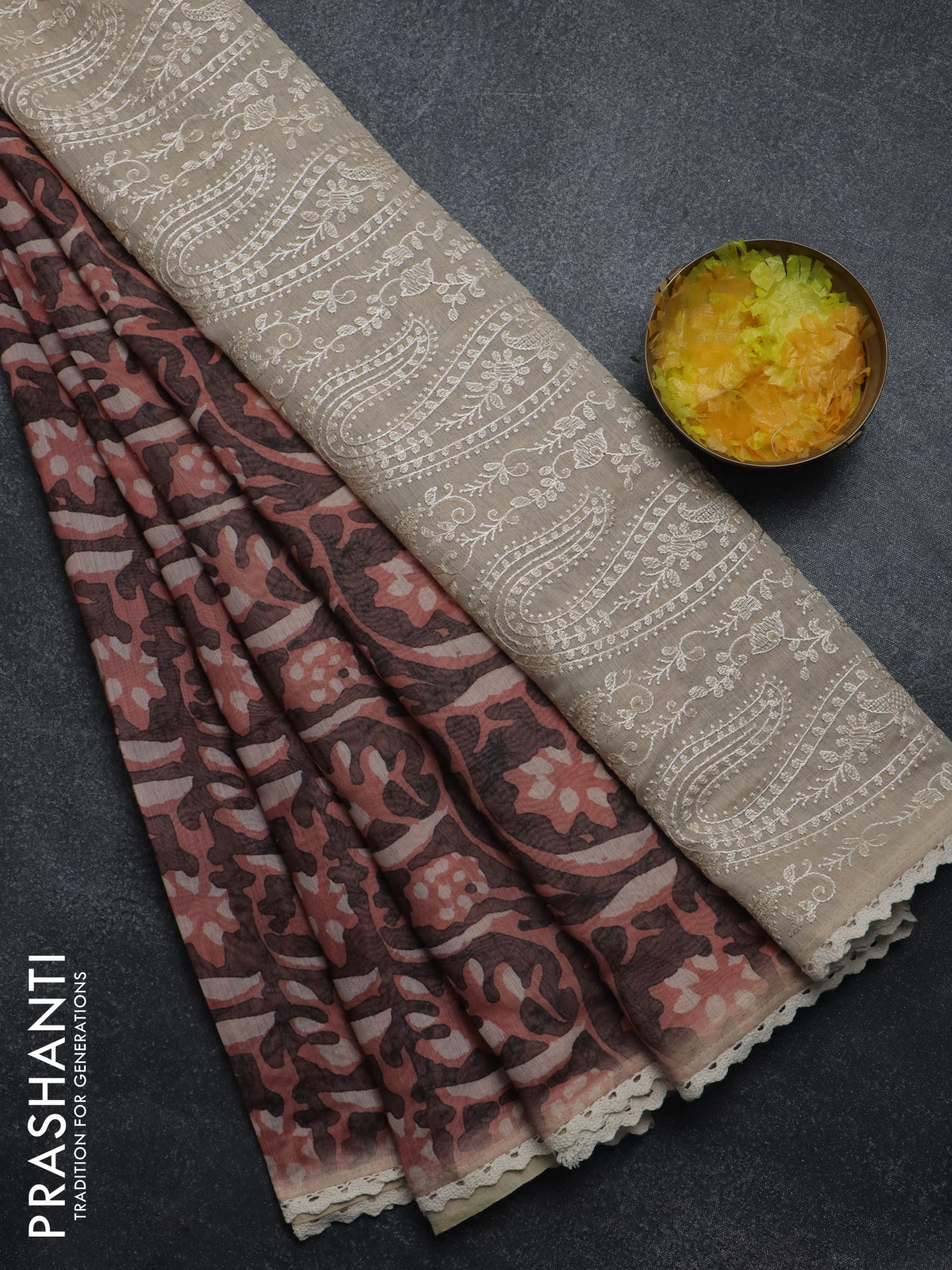 Semi chanderi saree peach shade and beige with allover batik ptrints and embroidery pallu