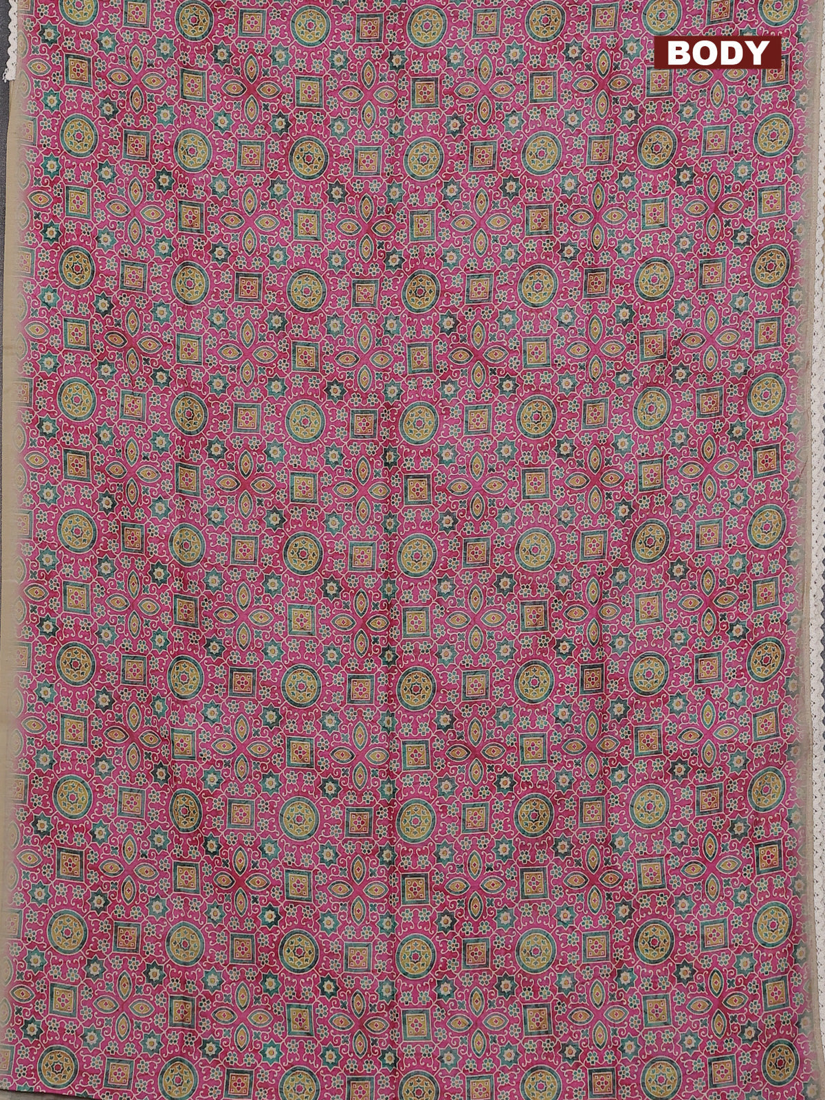 Semi chanderi saree pink and beige with allover ajrakh prints and embroidery pallu