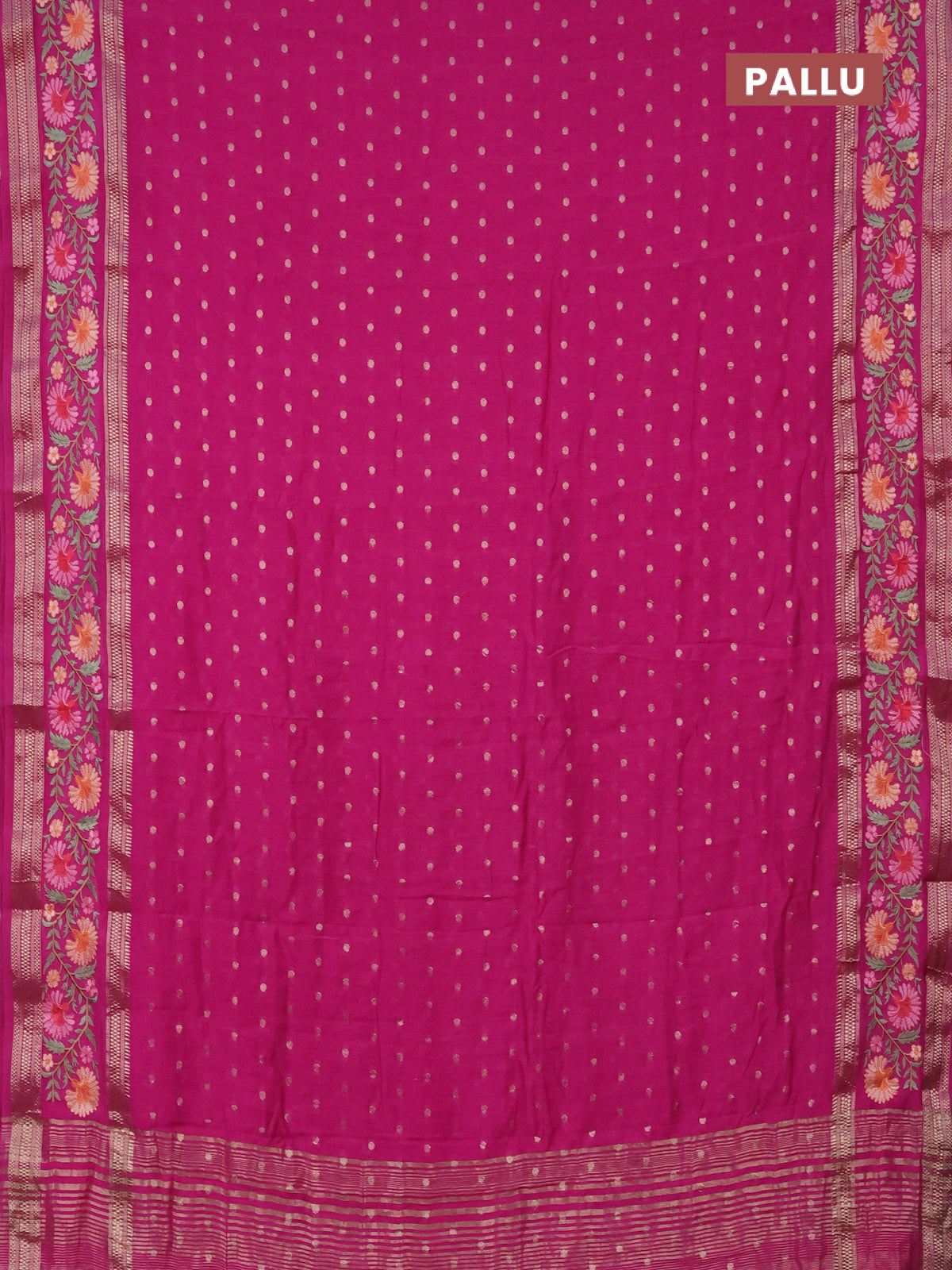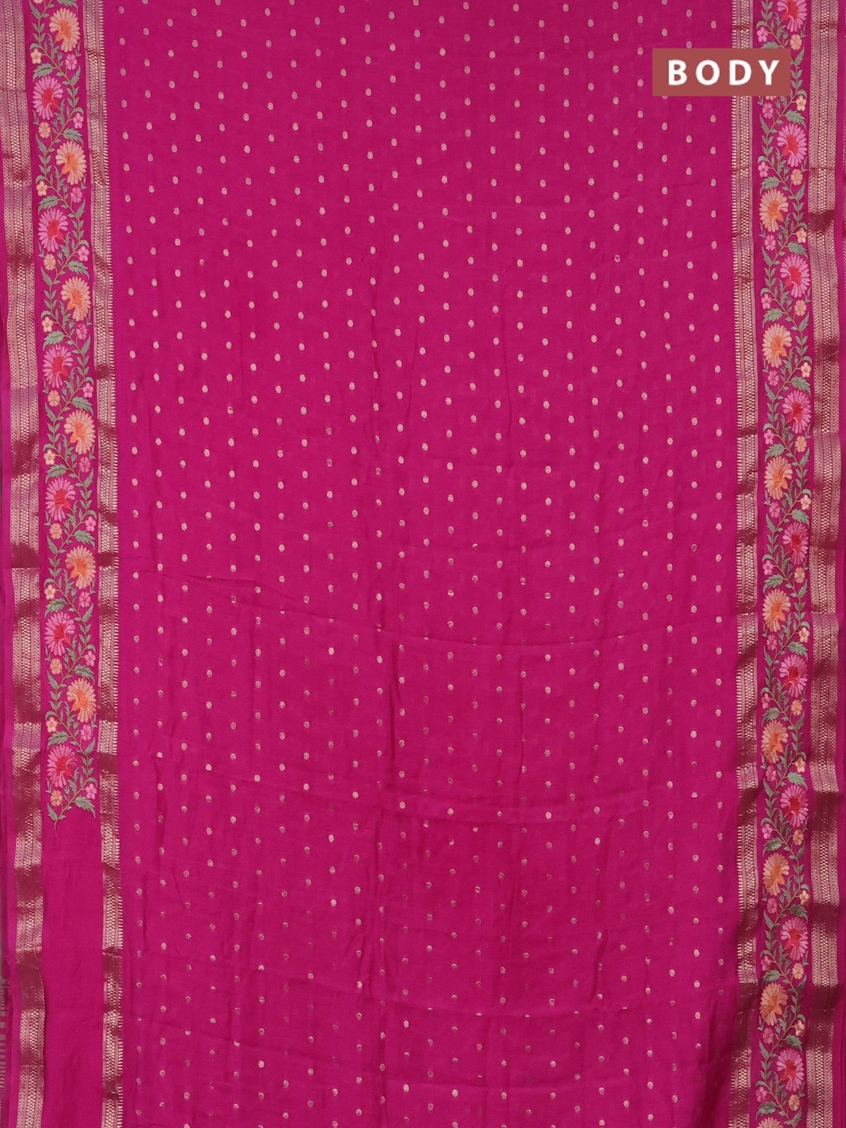 Semi chanderi saree pink with zari woven buttas and floral embroidery border