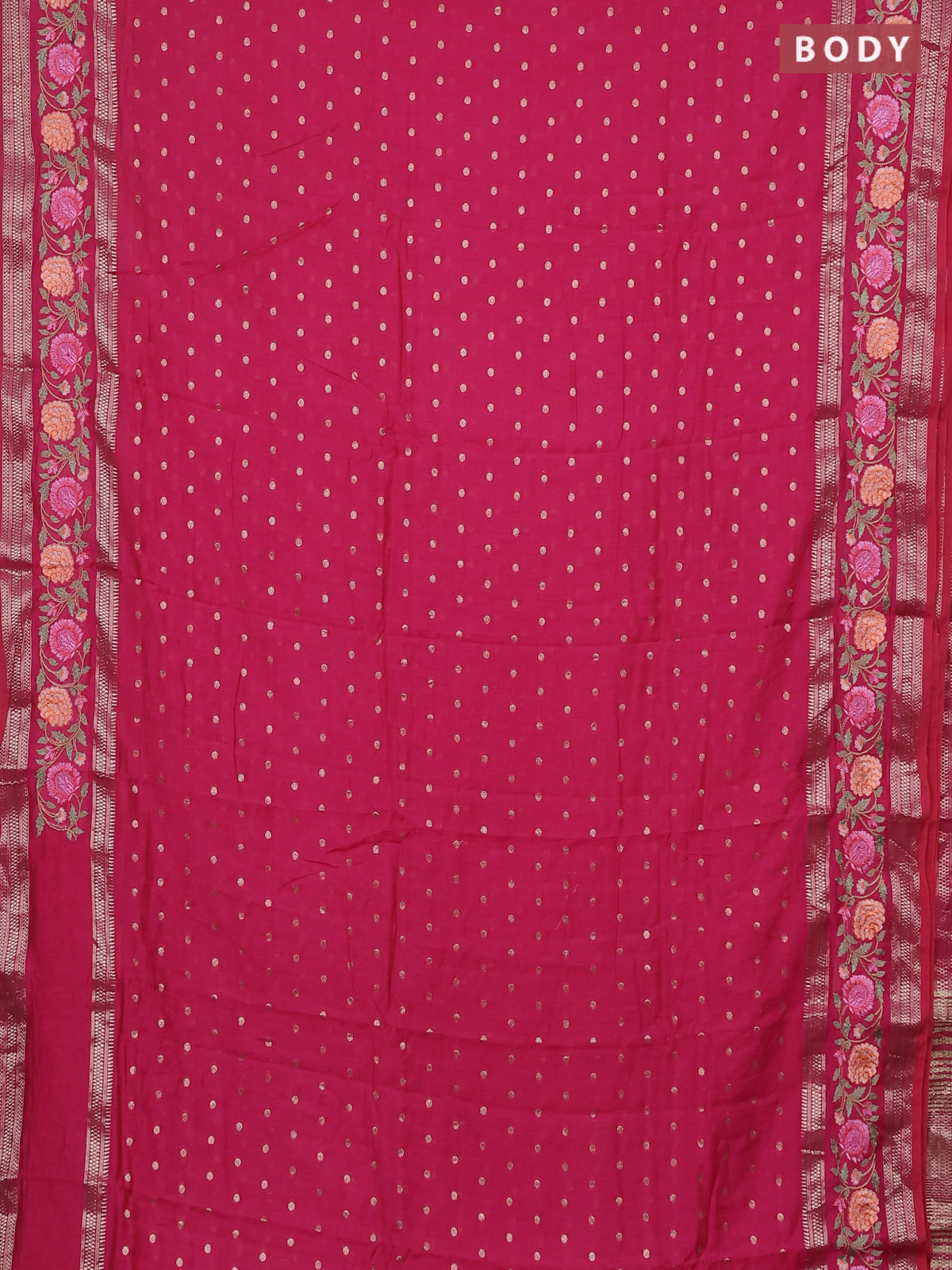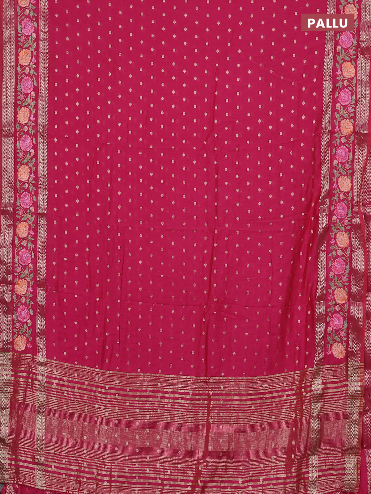 Semi chanderi saree pink with zari woven buttas and floral embroidery border