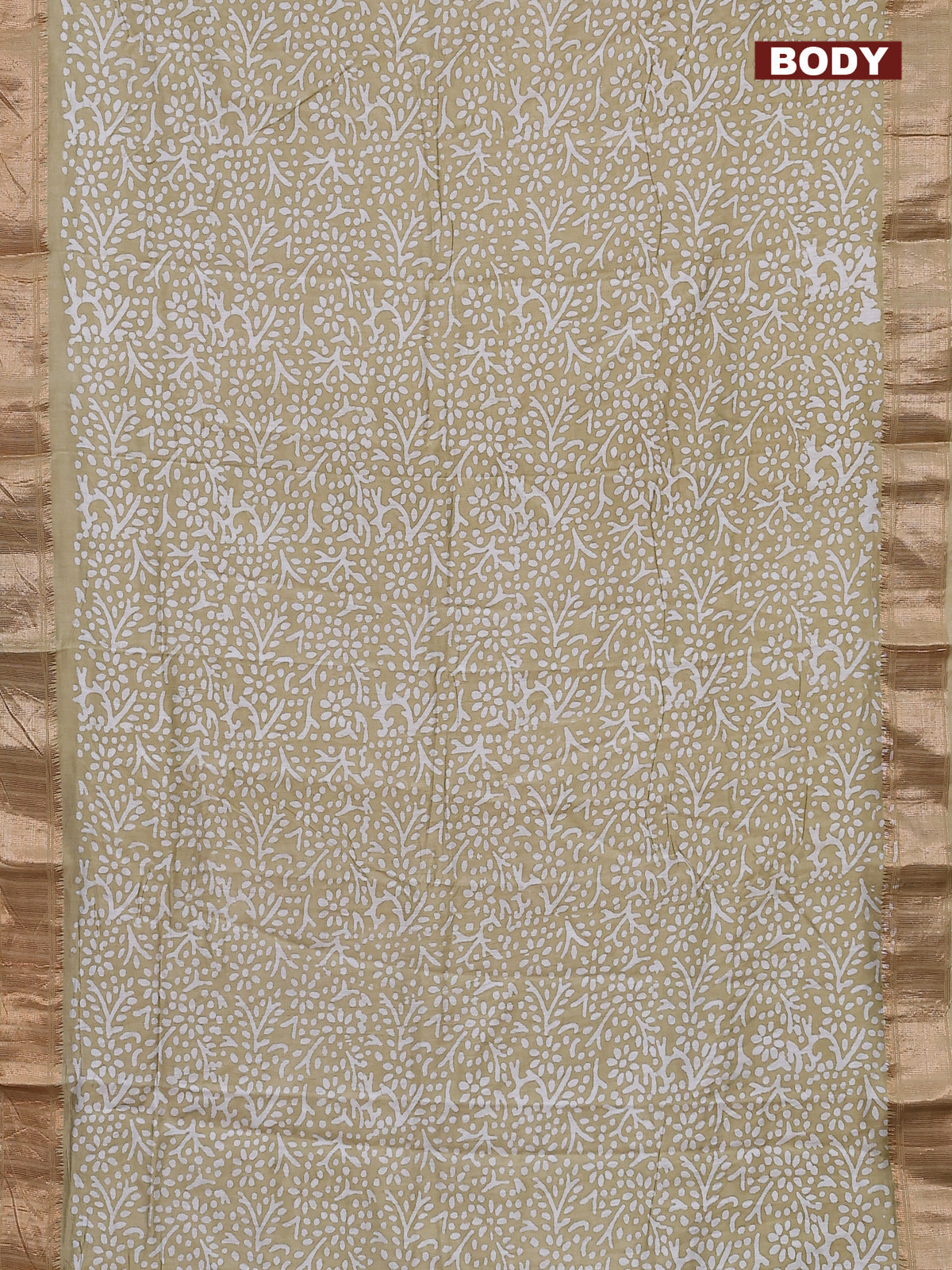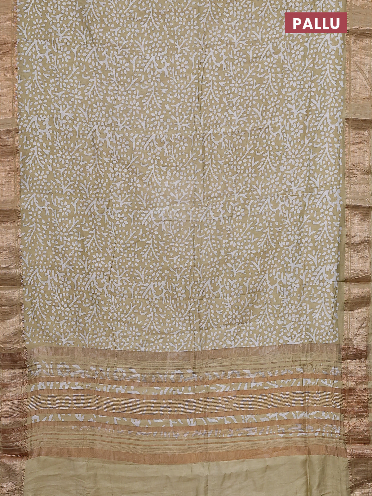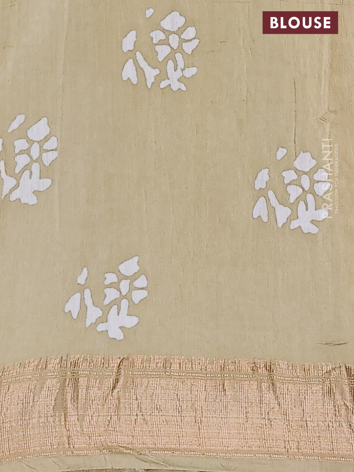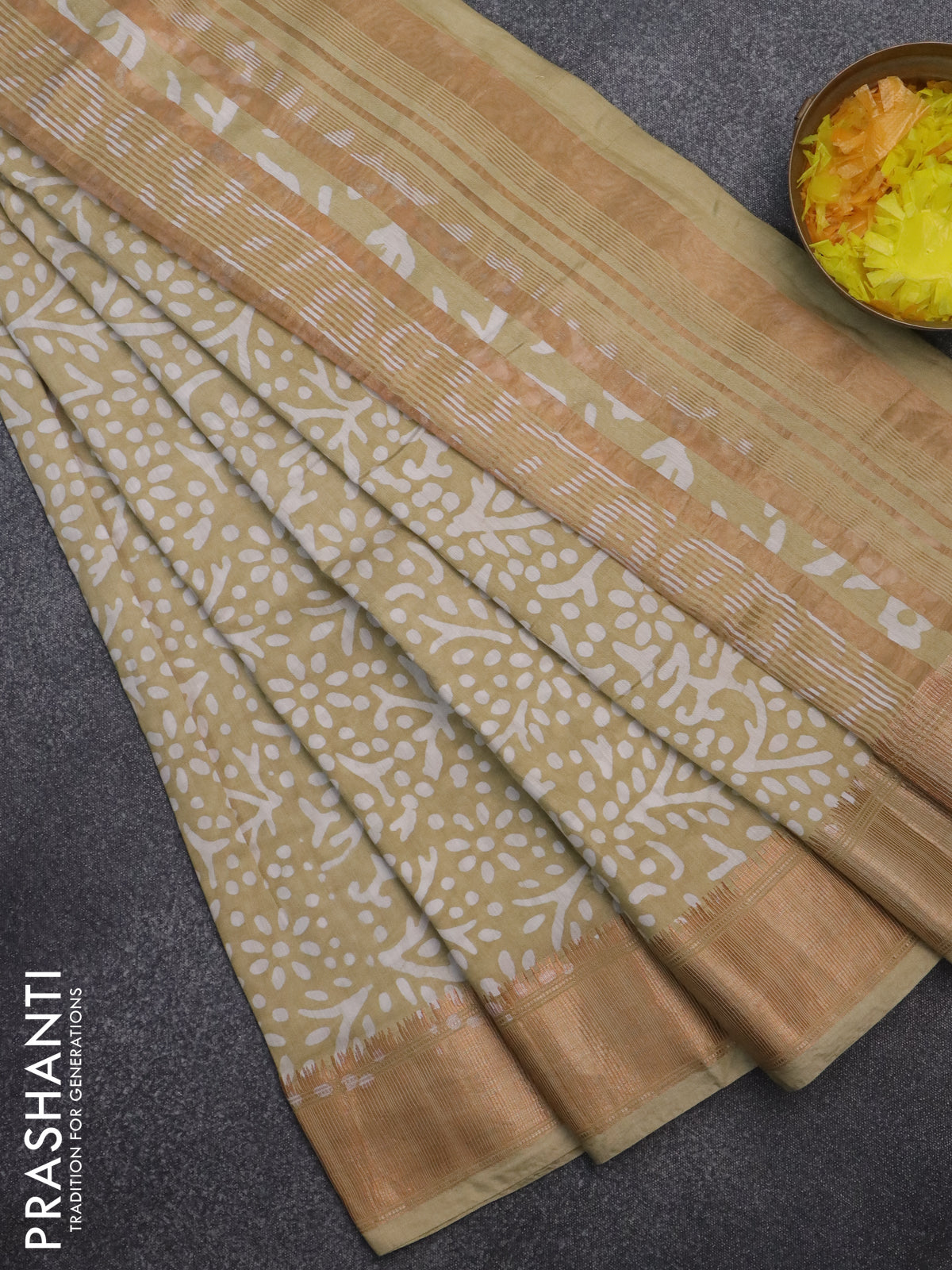 Semi chanderi saree sandal and off white with allover batik prints and zari woven border