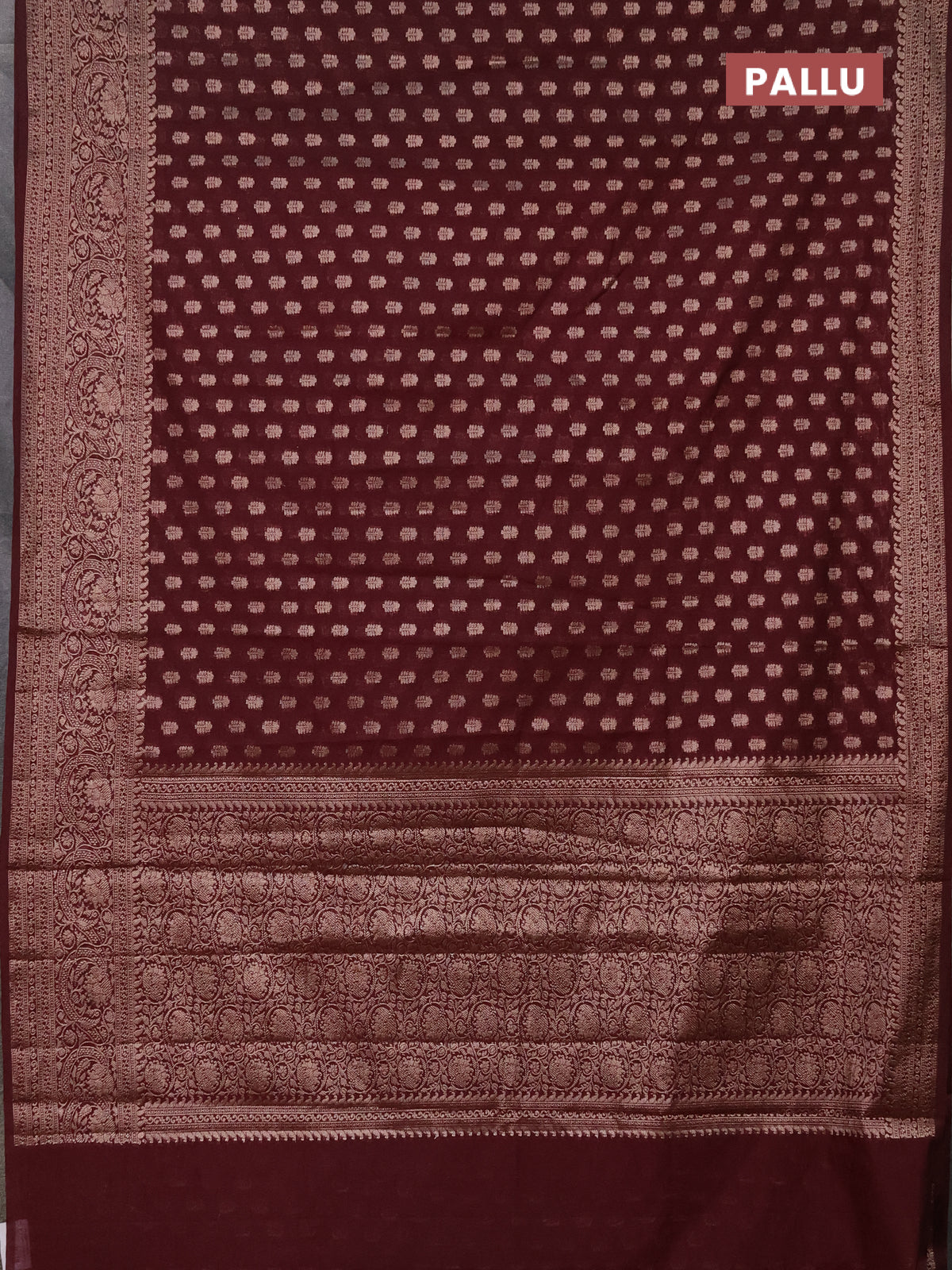 Semi chiniya saree deep maroon with woven buttas and woven border