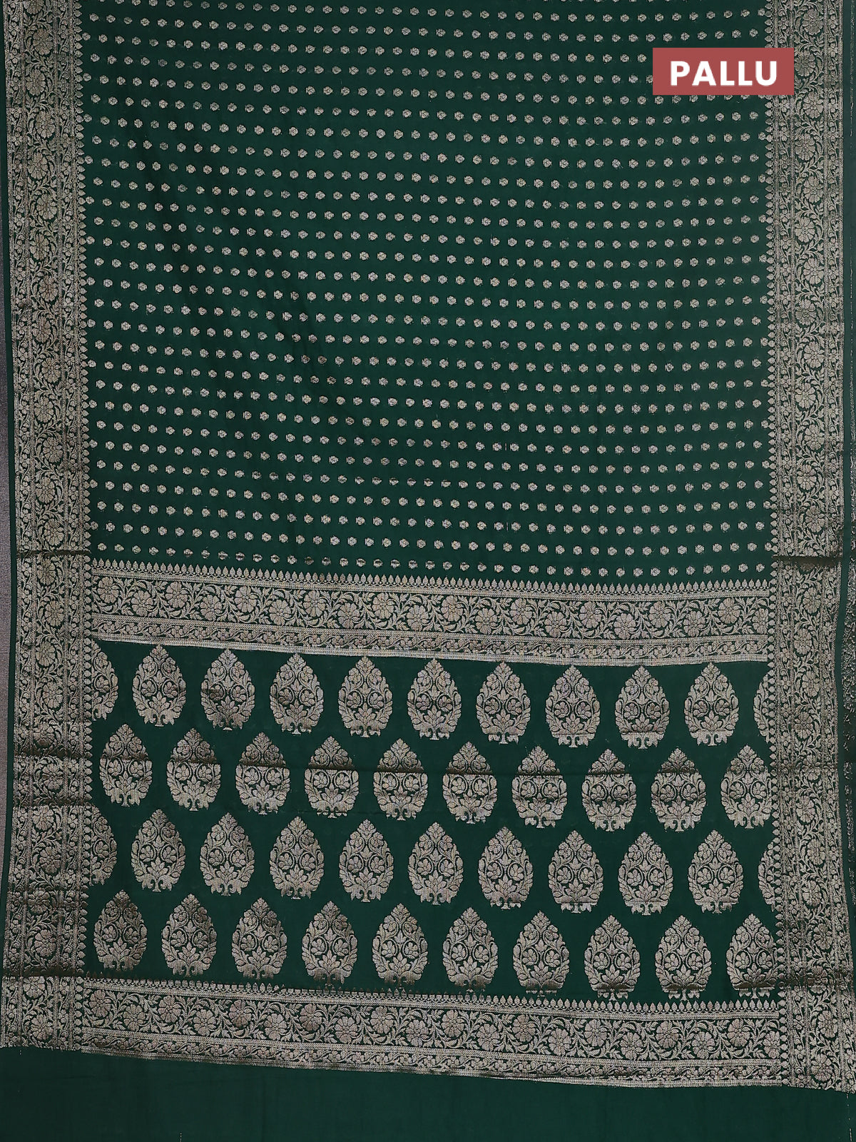 Semi chiniya saree green with woven buttas and woven border