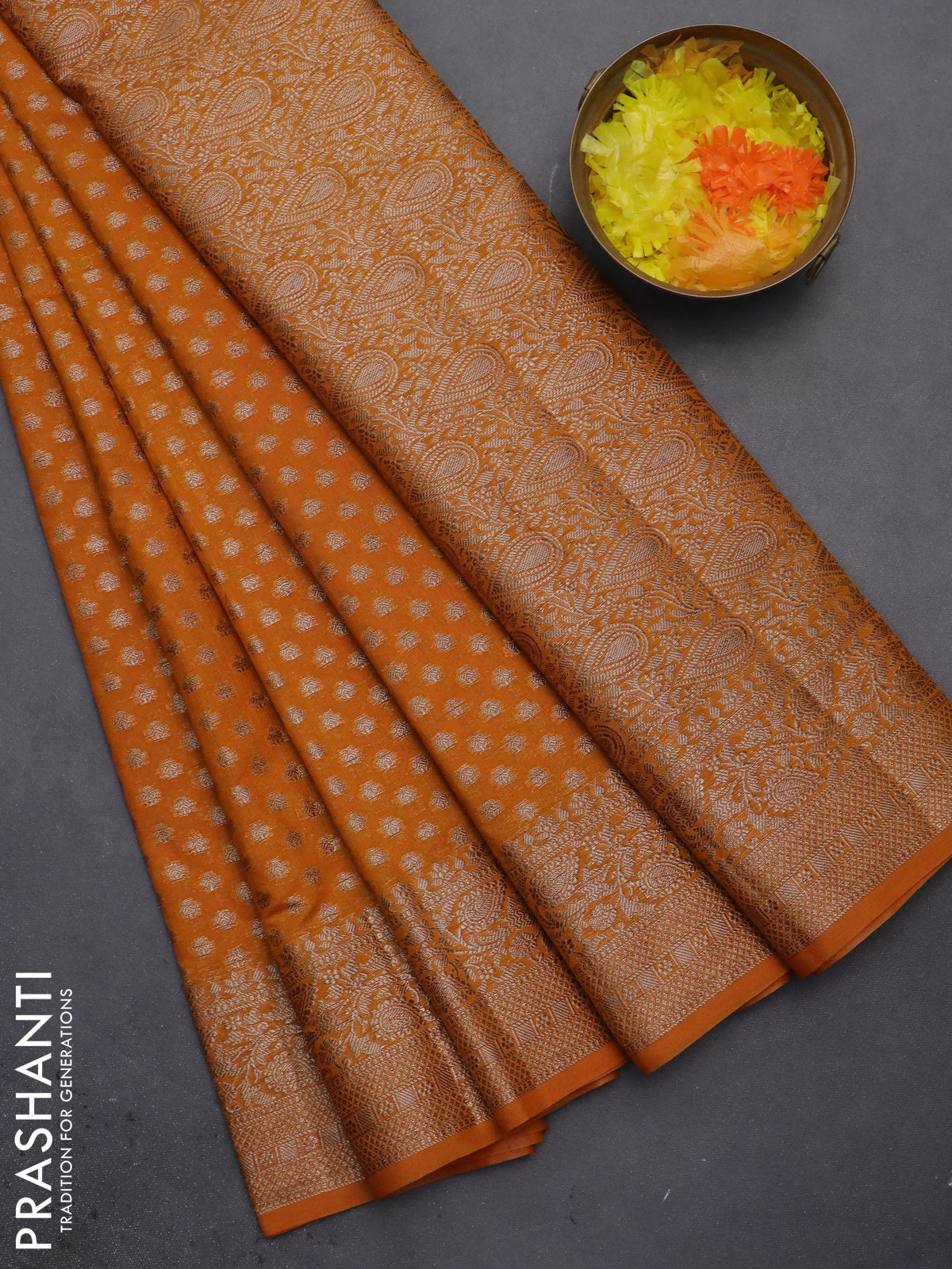 Semi chiniya saree mango yellow with woven buttas and woven border