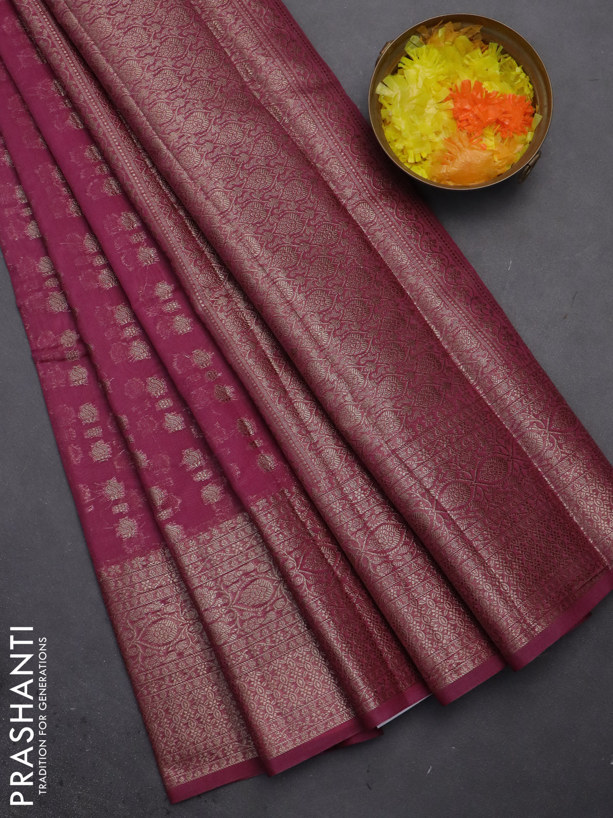 Semi chiniya saree mauve pink with woven buttas and woven border