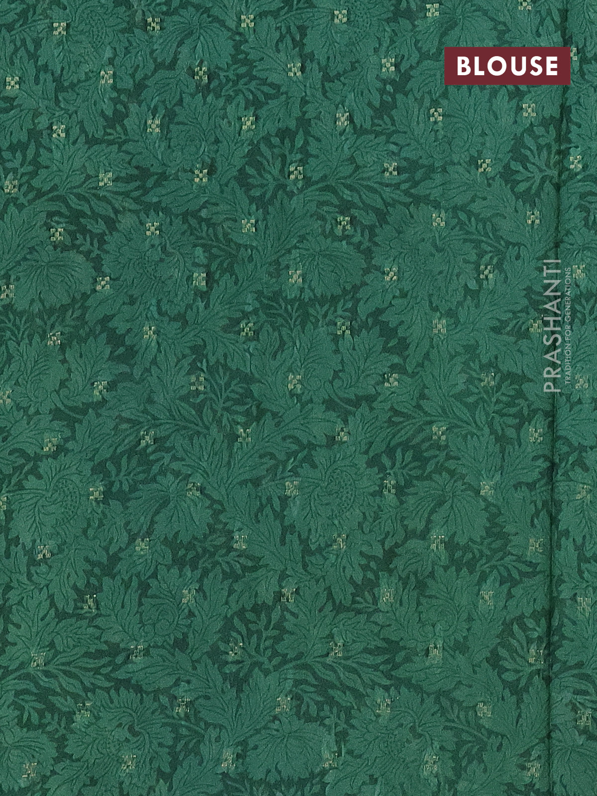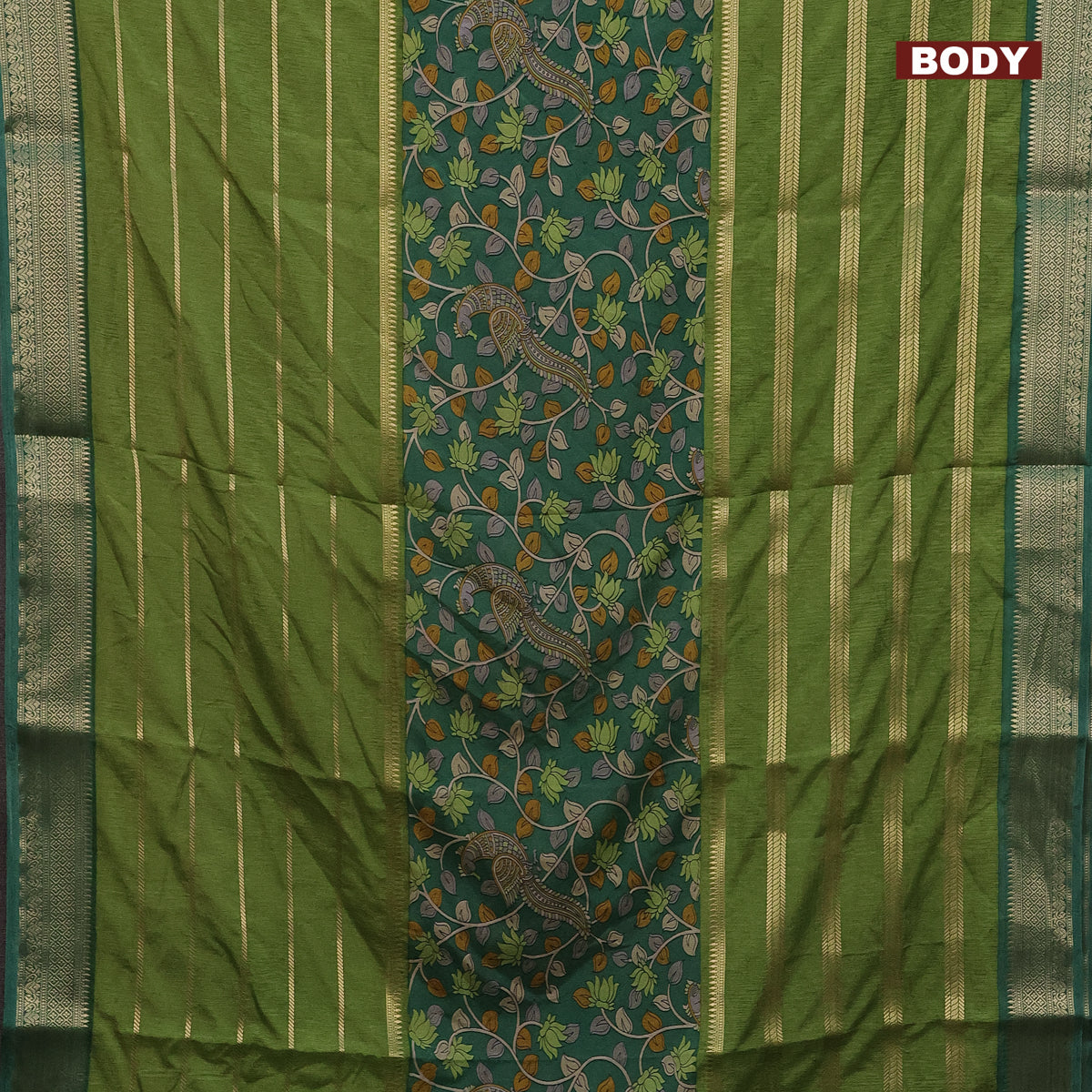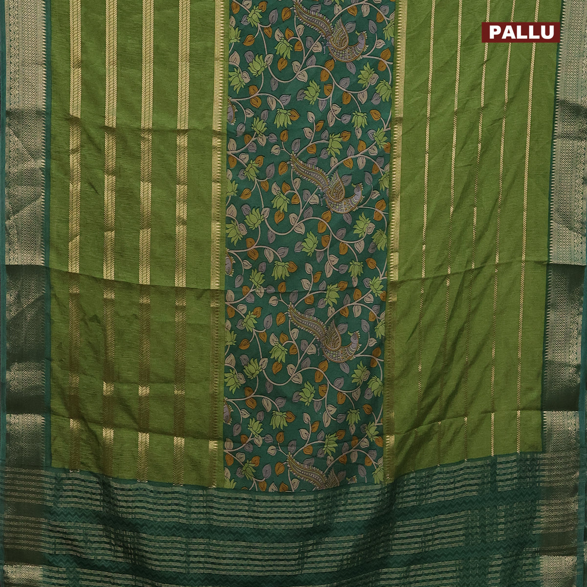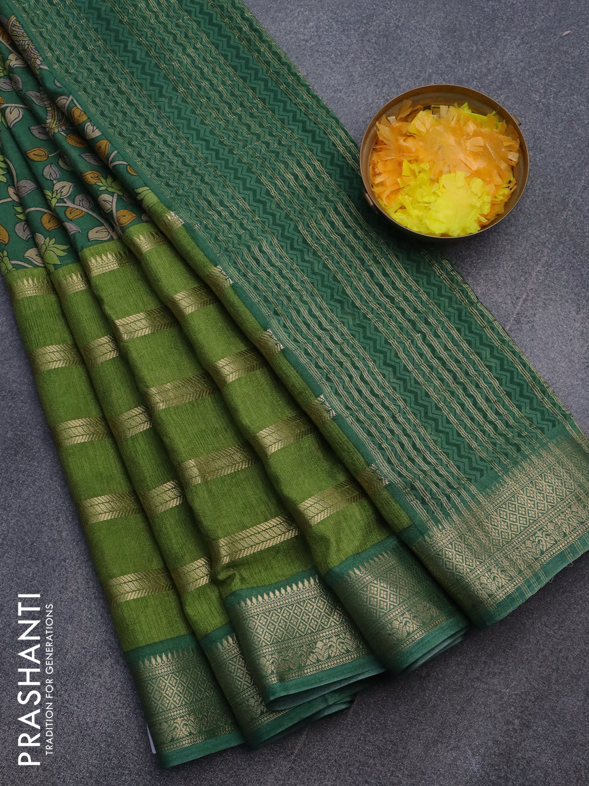 Semi crepe saree green and light green with kalamkari prints and long zari woven simple border