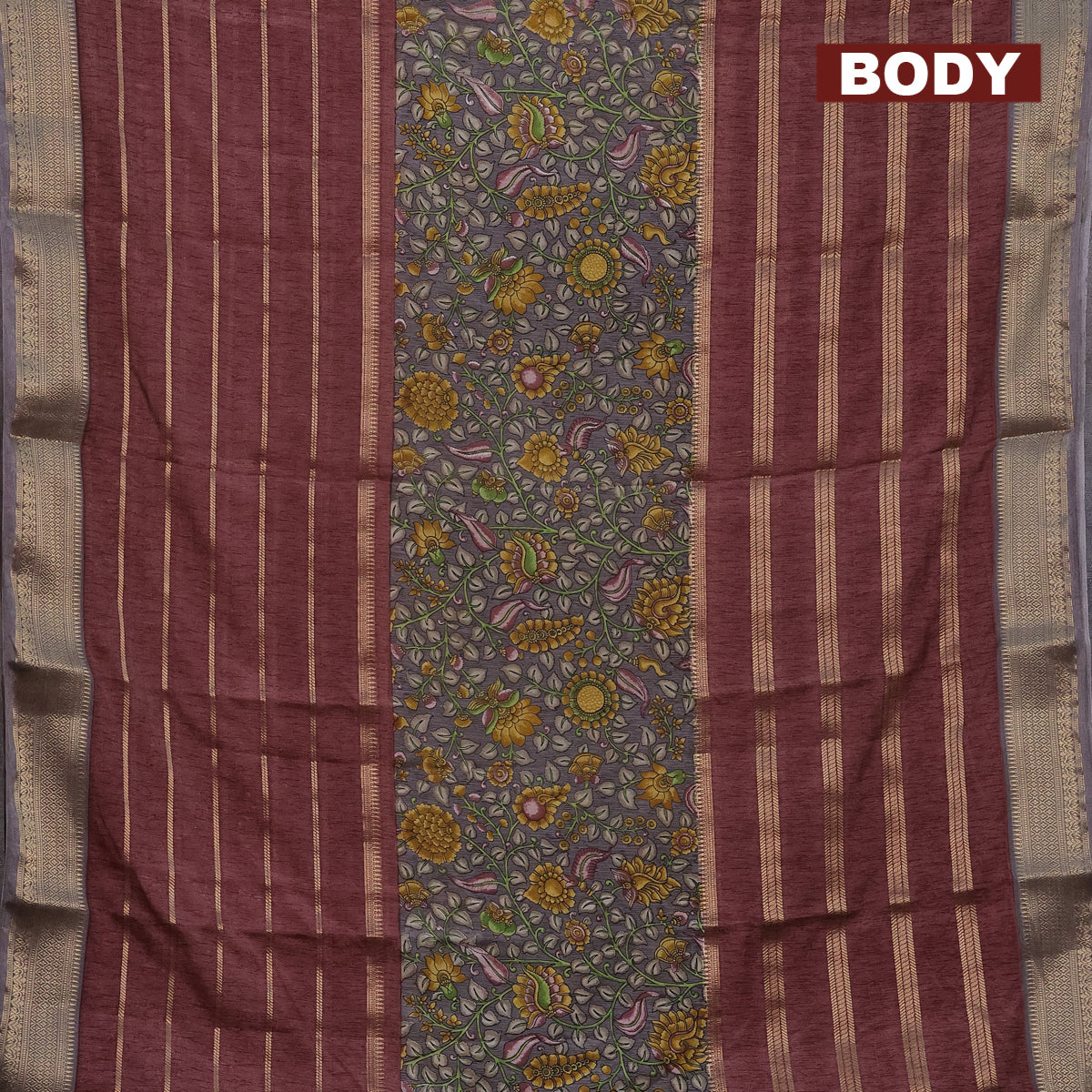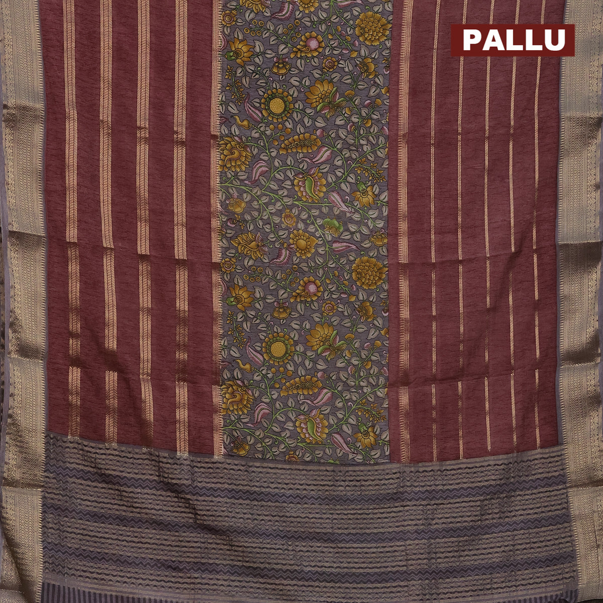 Semi crepe saree grey shade and pastel maroon shade with kalamkari prints and long zari woven simple border