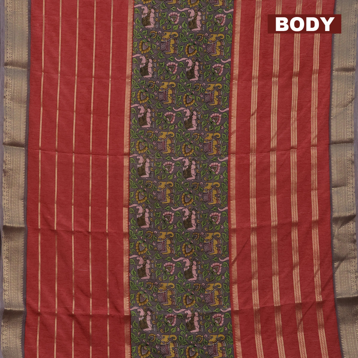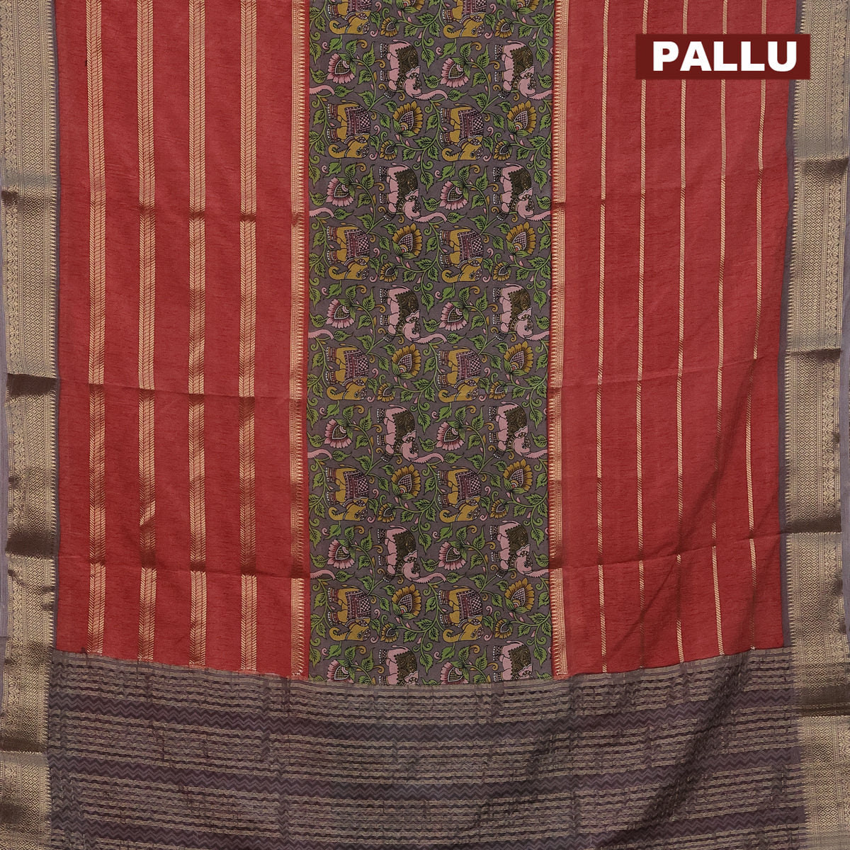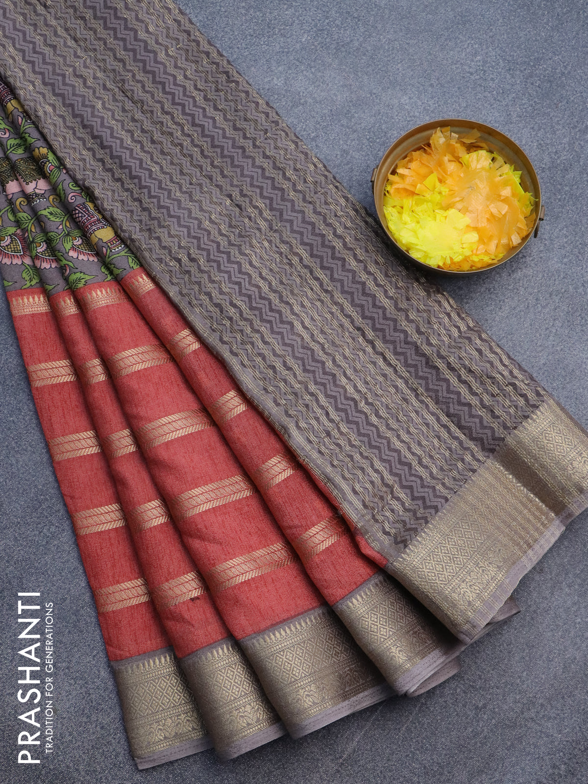 Semi crepe saree grey shade and peach shade with kalamkari prints and long zari woven simple border