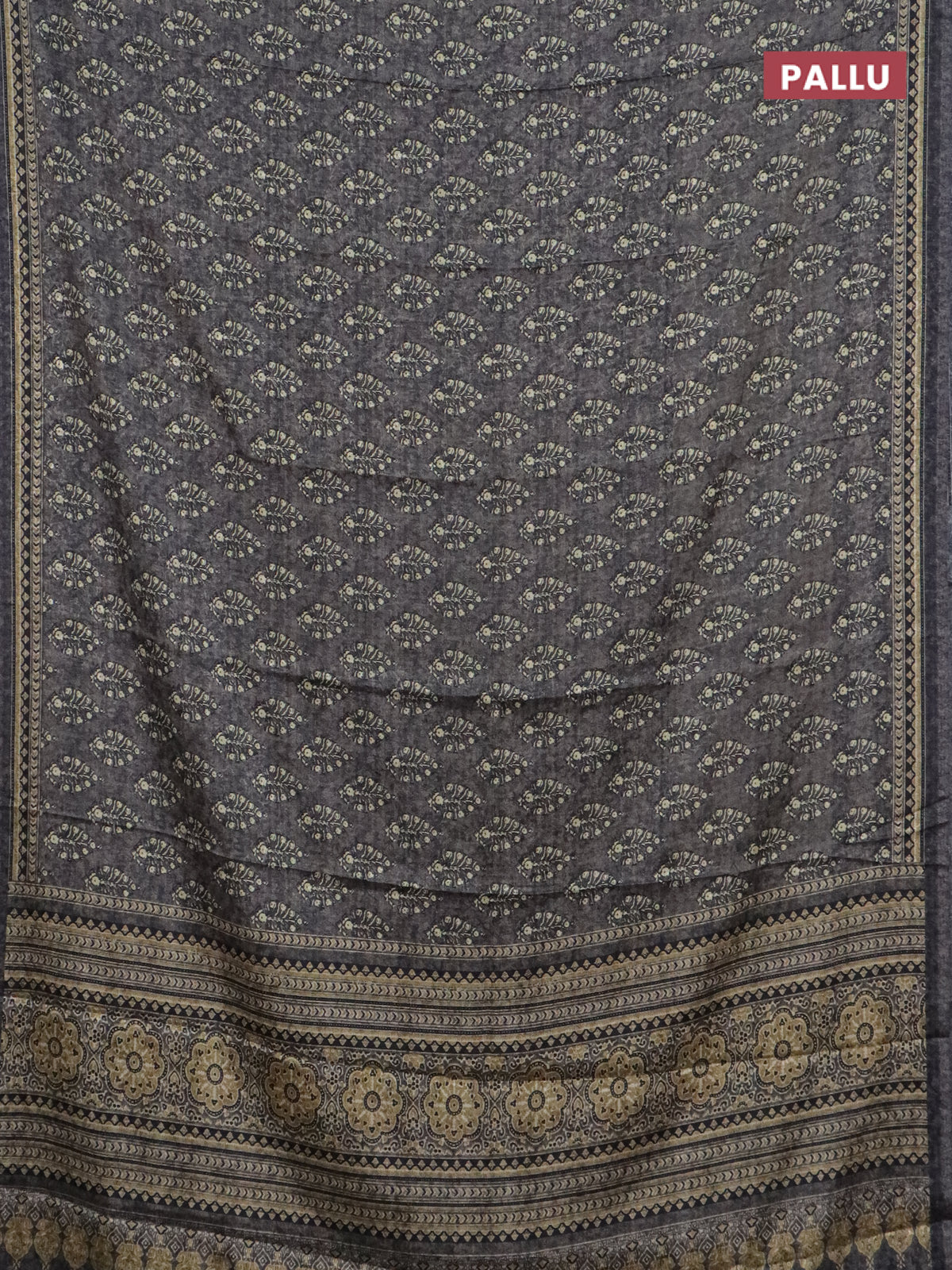 Semi crepe silk saree grey with allover self emboss & butta prints and printed border