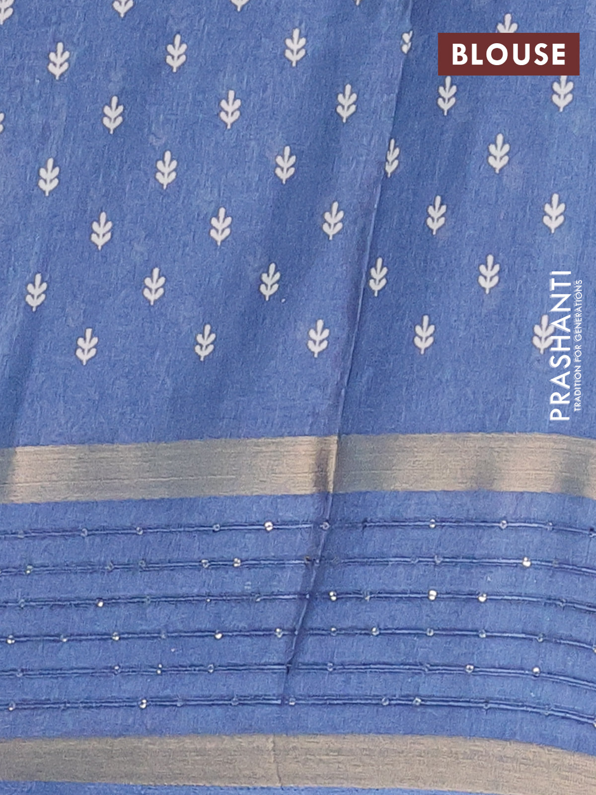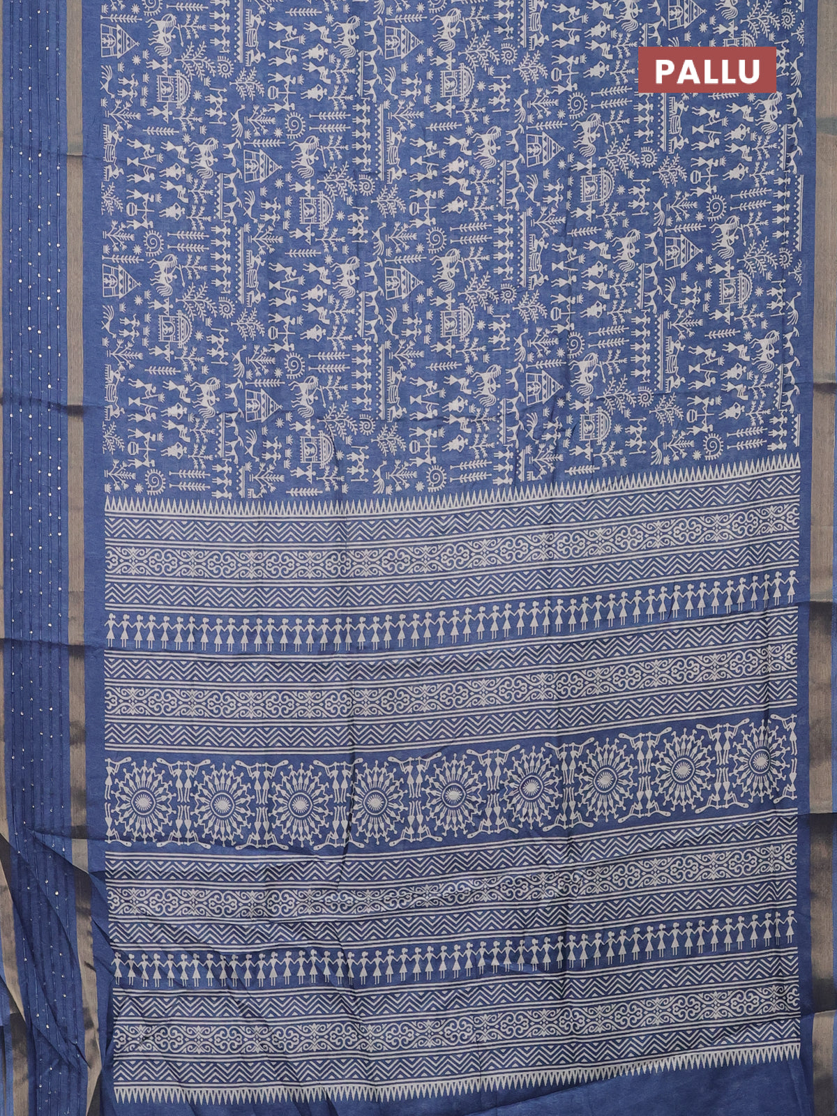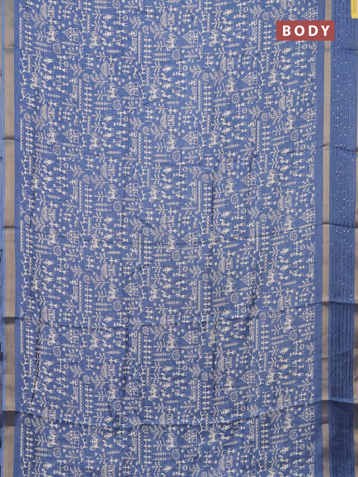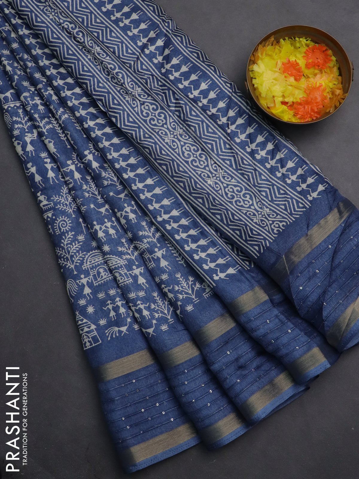 Semi dola saree cs blue with allover warli prints and zari woven sequin work border
