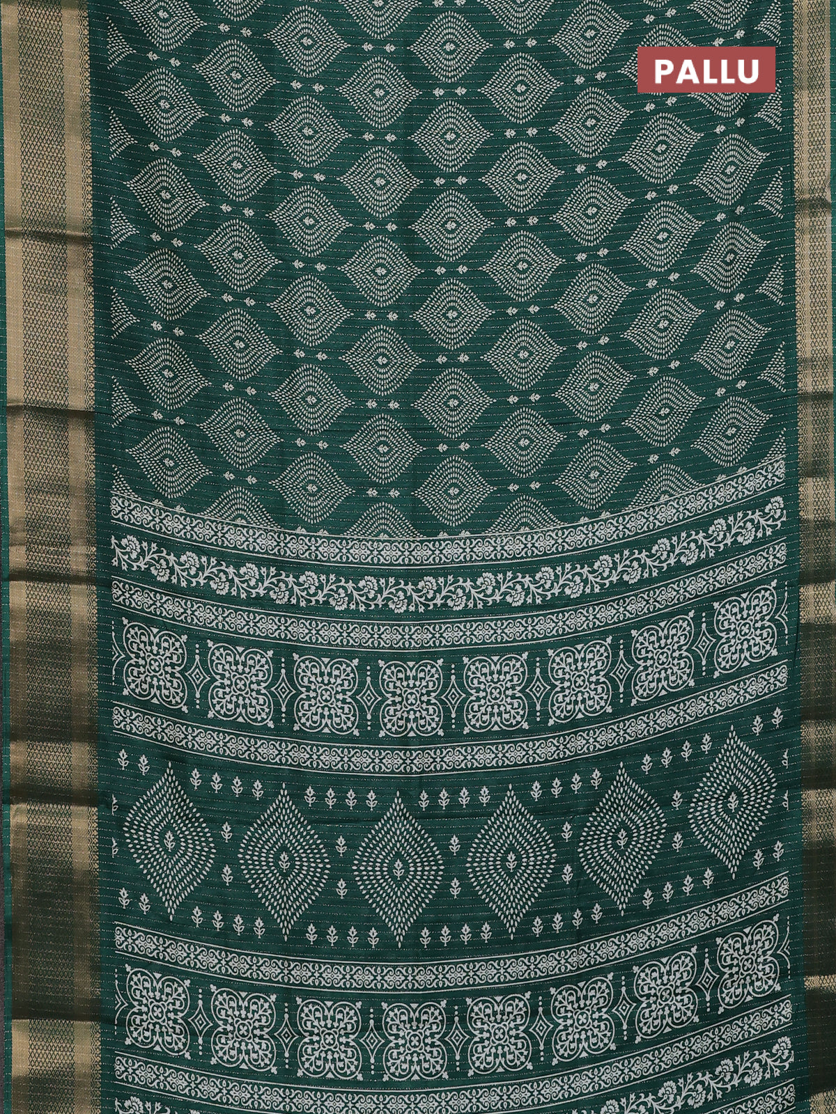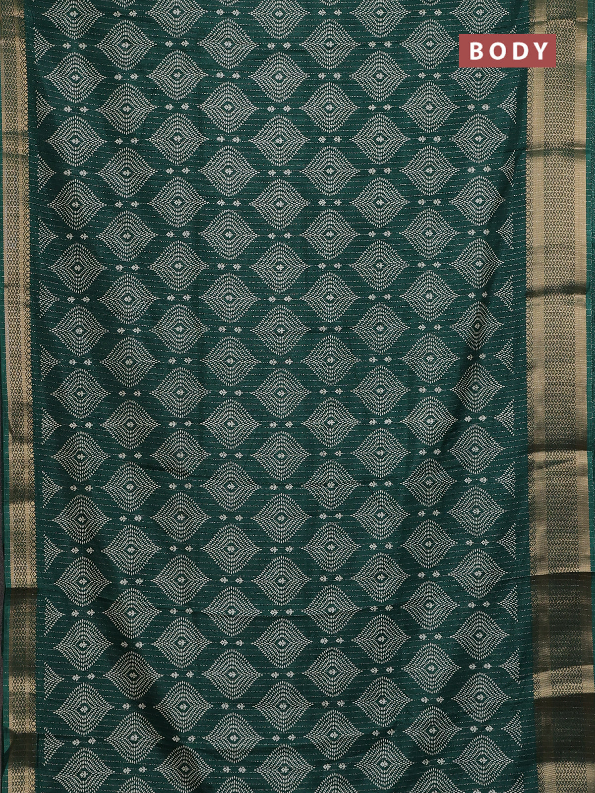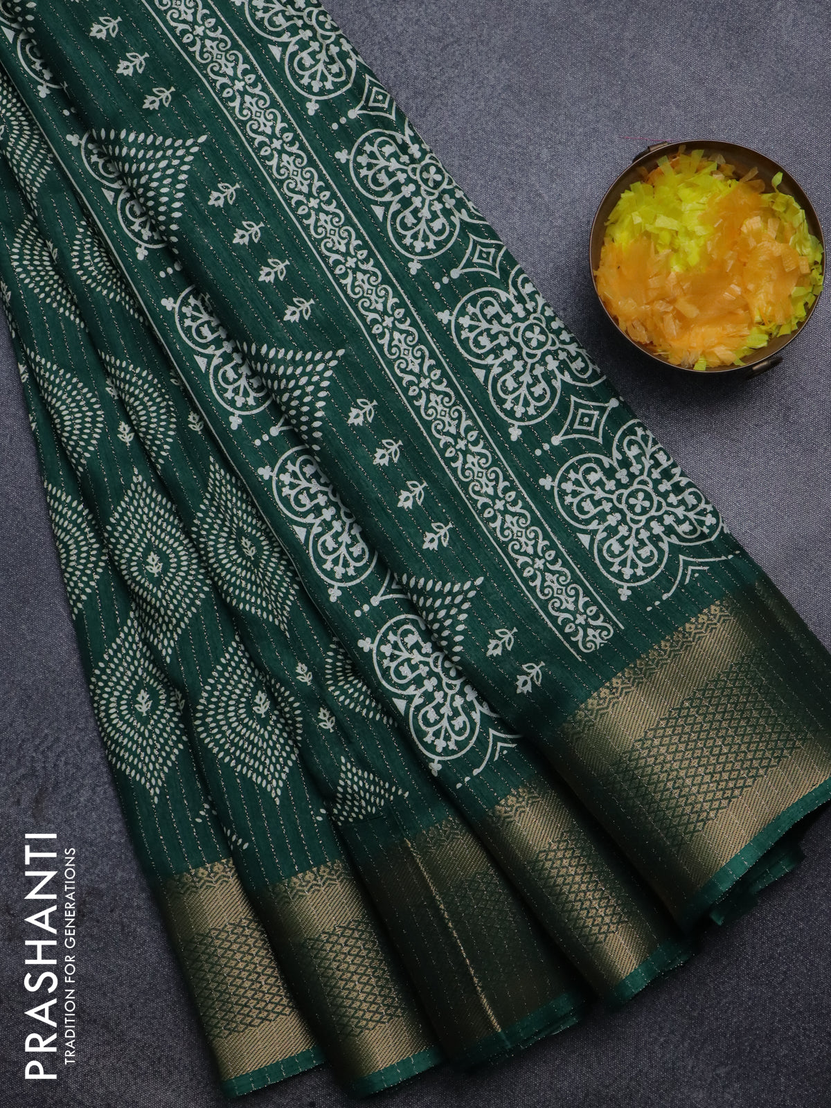 Semi dola saree dark green with allover zari weaves & prints and zari woven border