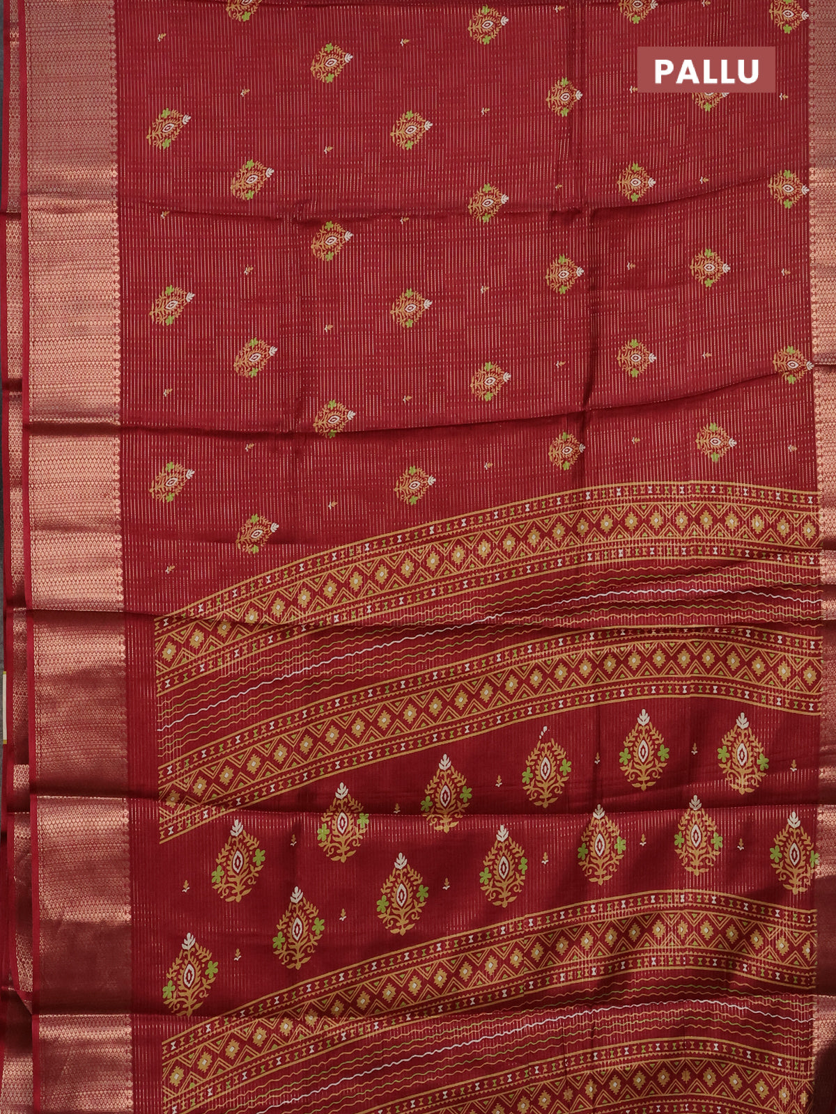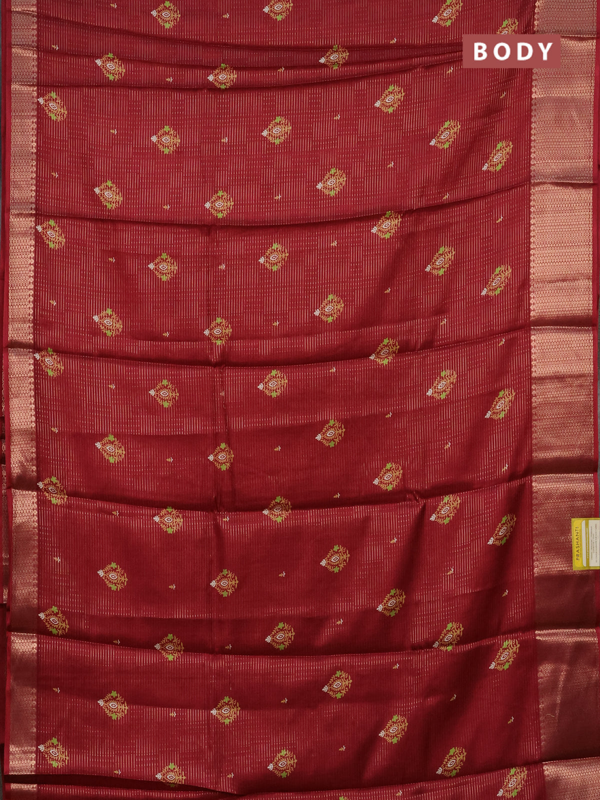 Semi dola saree maroon with allover zari weaves & butta prints and zari woven border