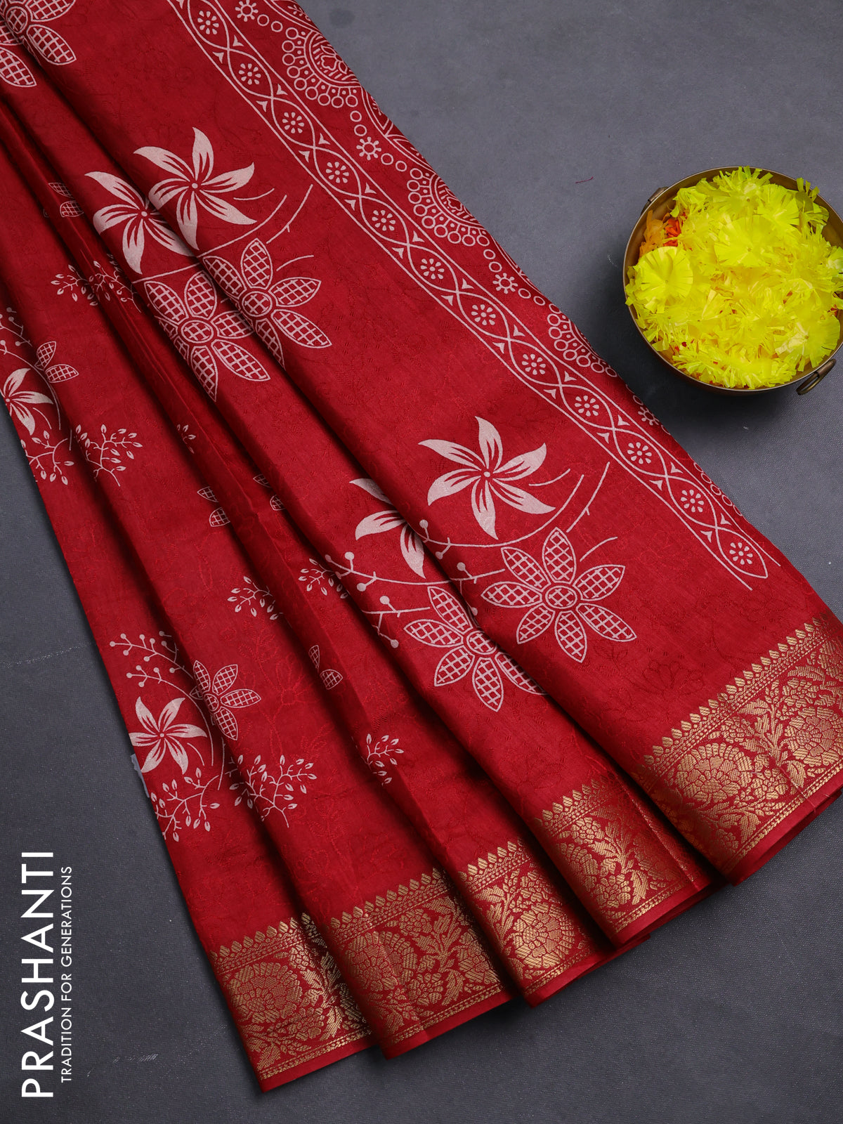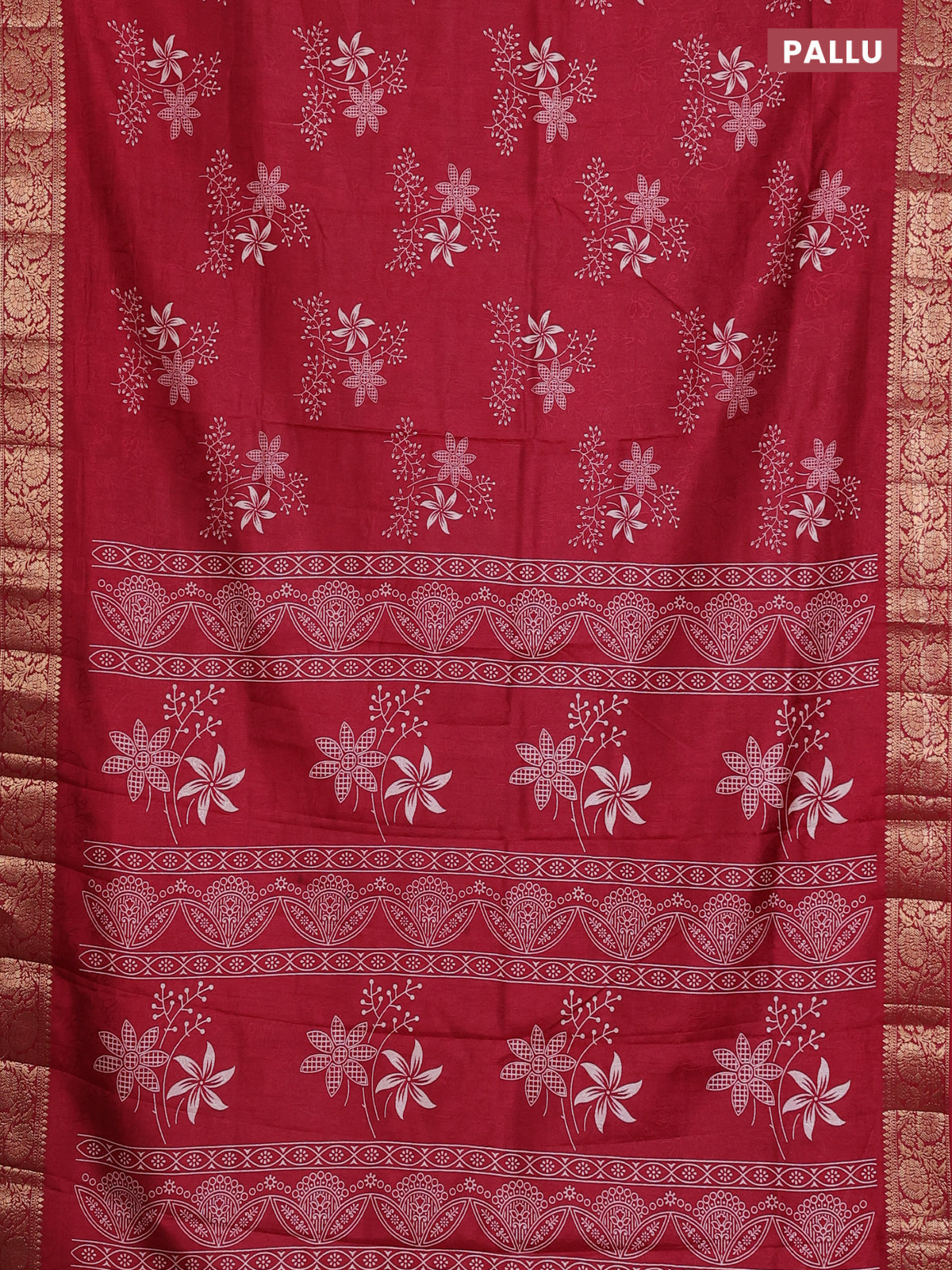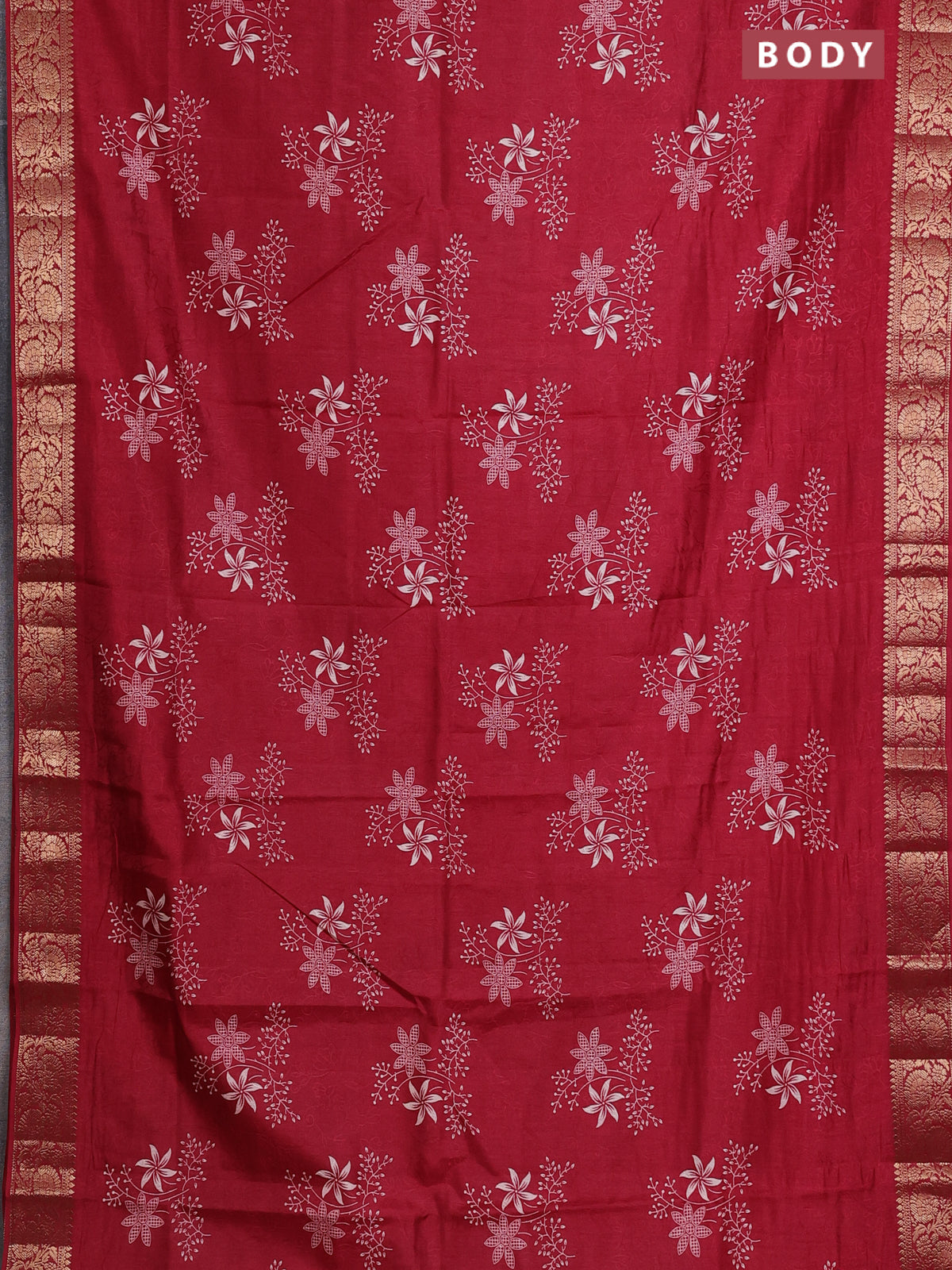 Semi dola saree maroon with floral prints & self emboss and zari woven border