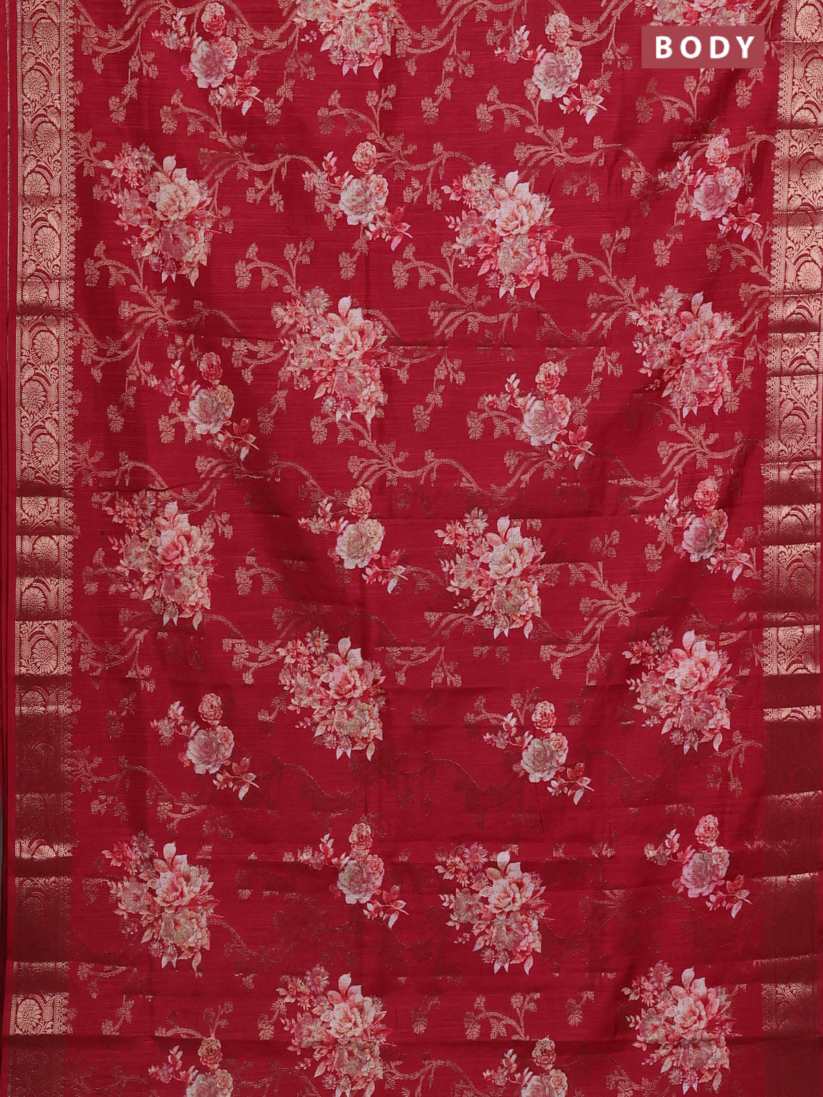 Semi dola saree maroon with floral prints & zari weaves and zari woven border
