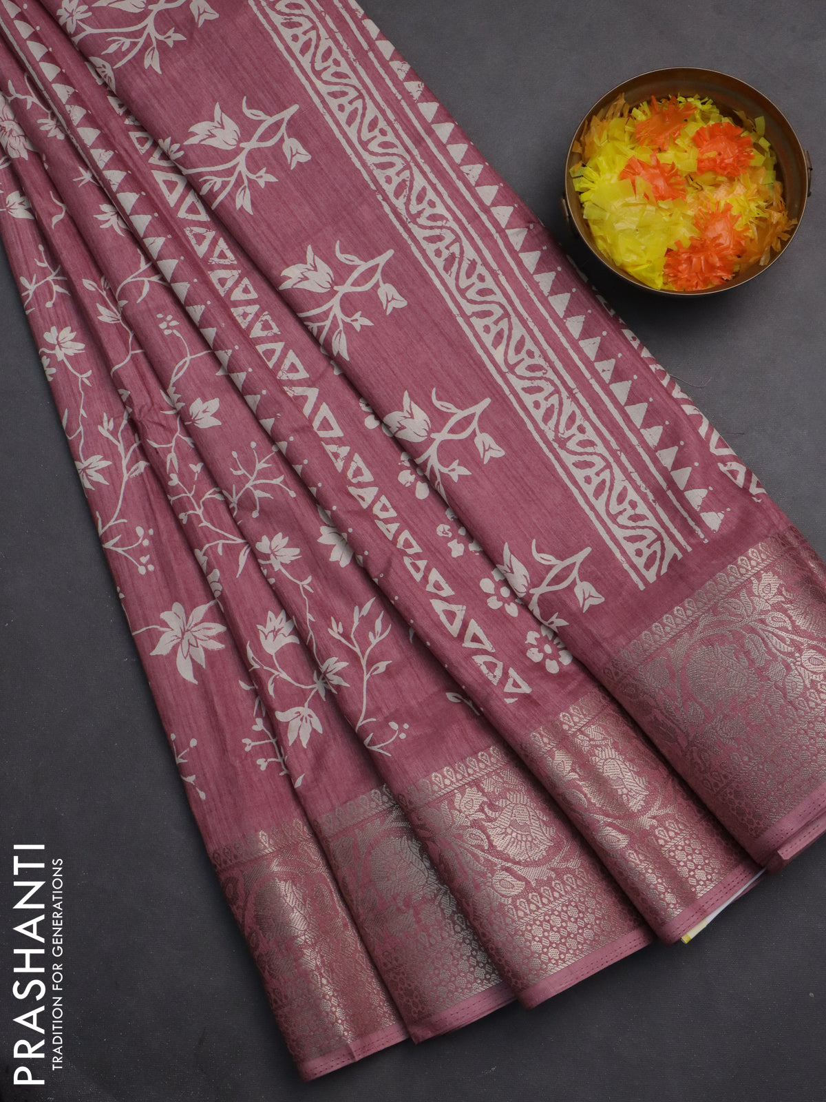 Semi dola saree mauve pink with allover prints and zari woven border