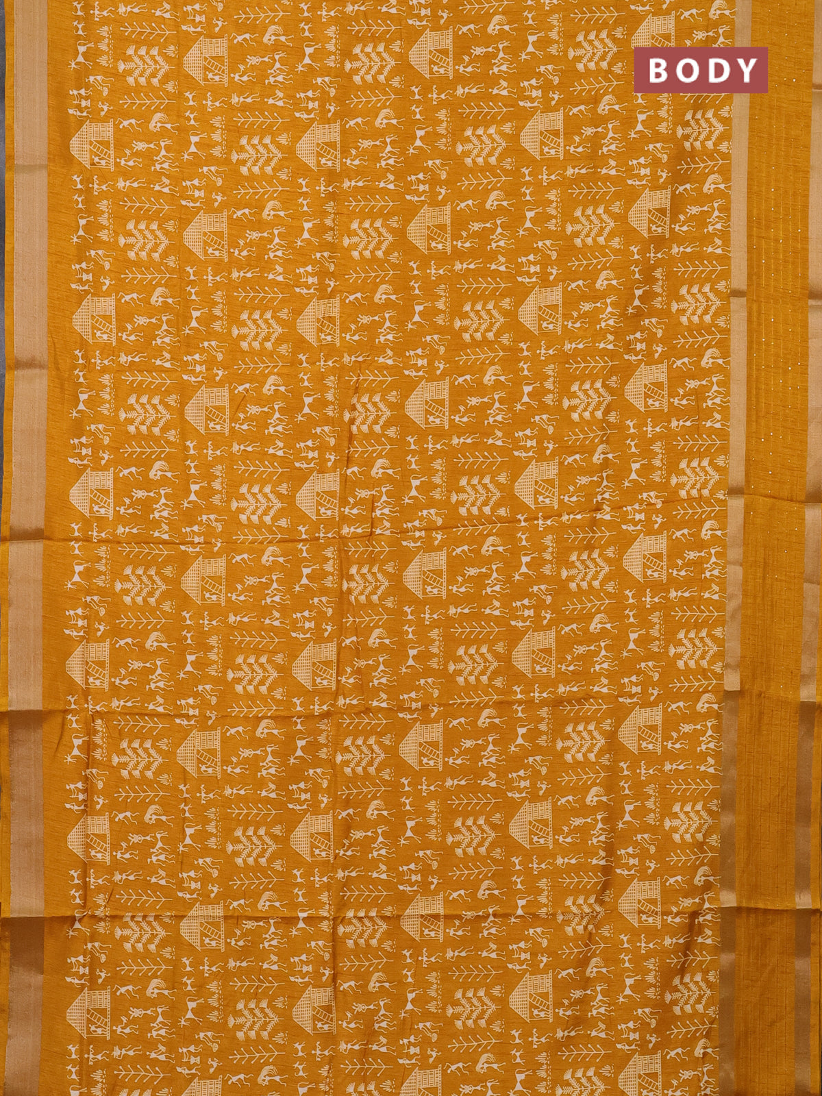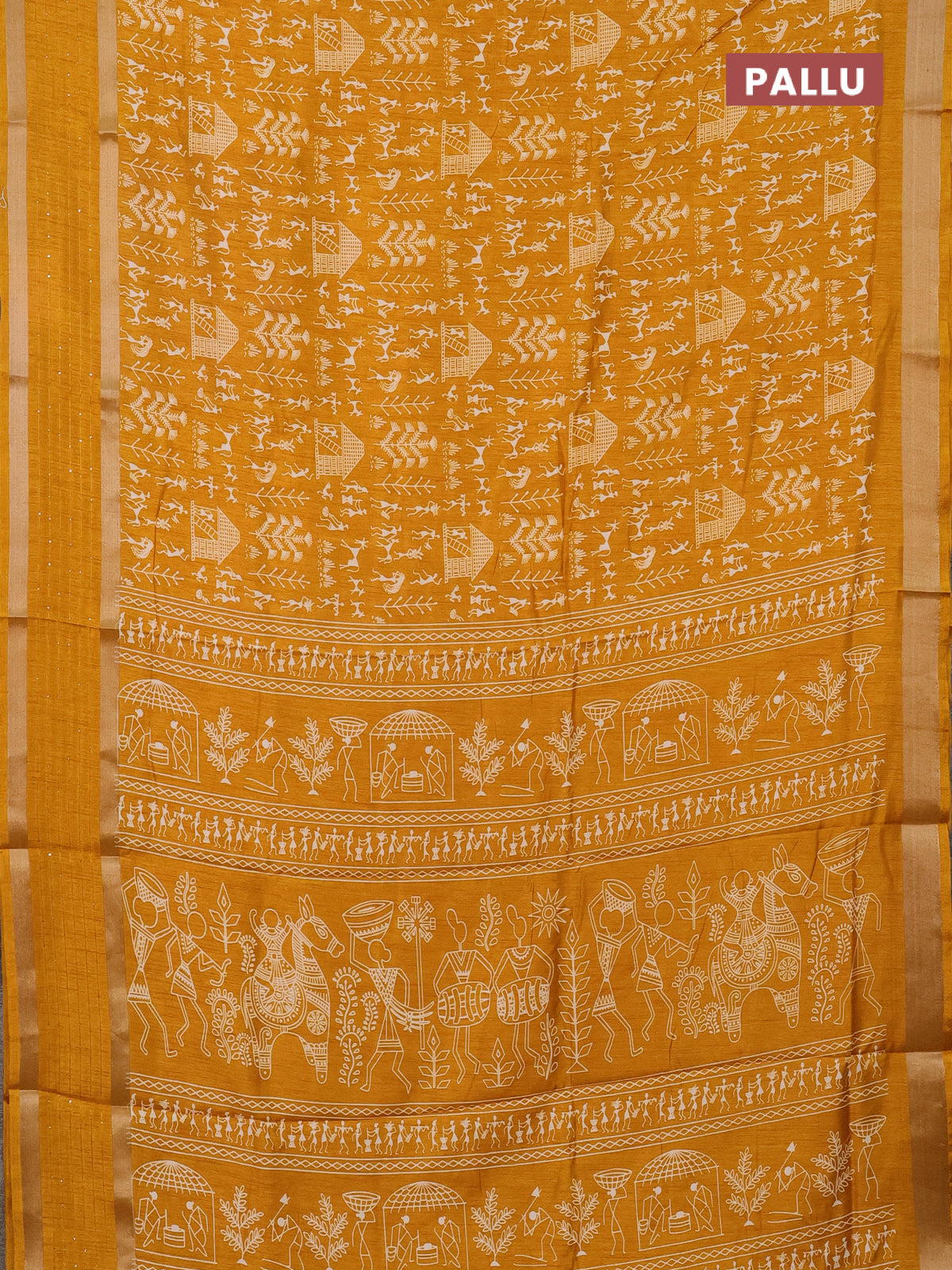 Semi dola saree mustard yellow with allover warli prints and zari woven sequin work border