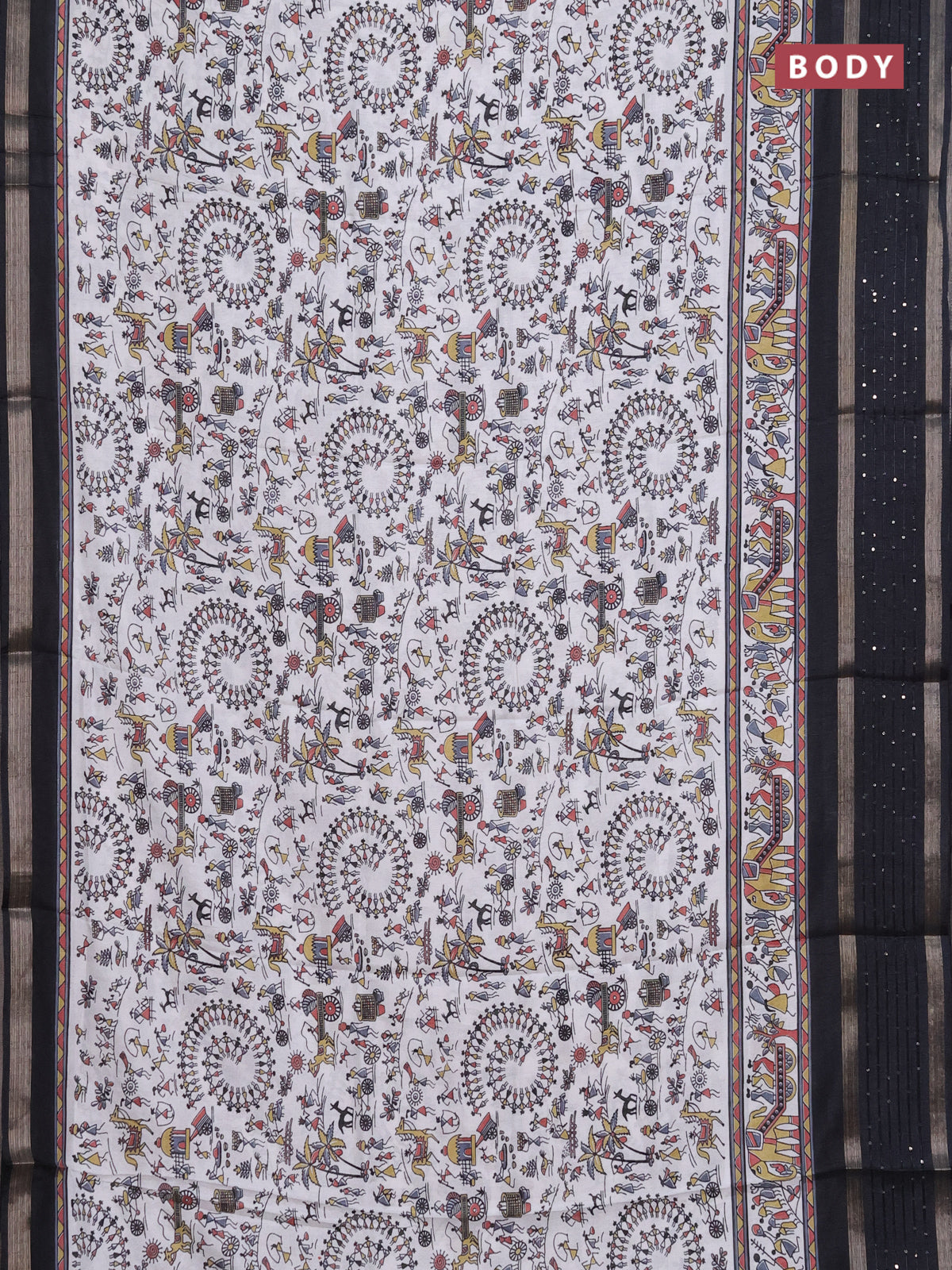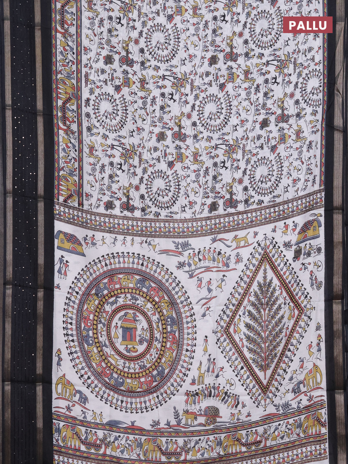 Semi dola saree off white and black with allover warli prints and zari woven sequin work border