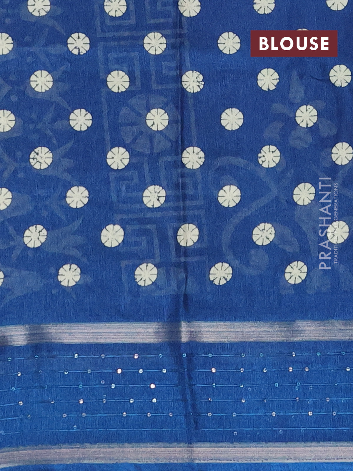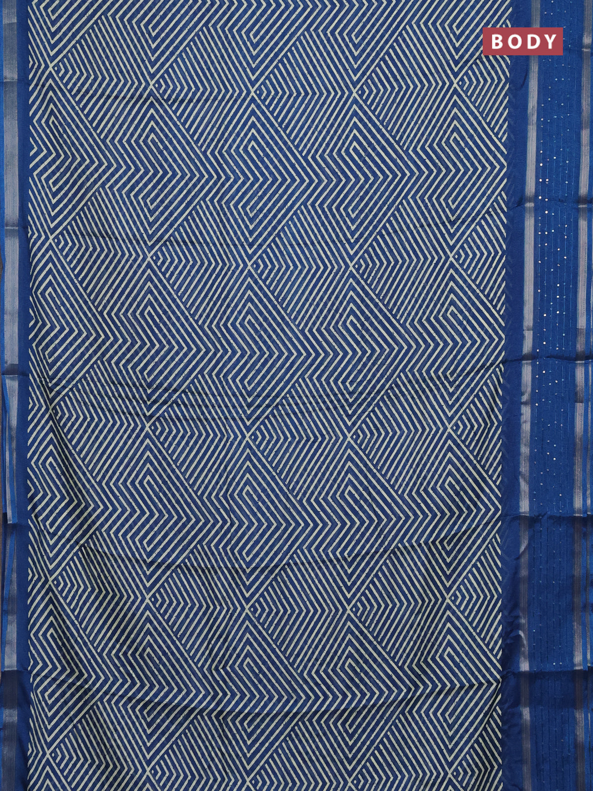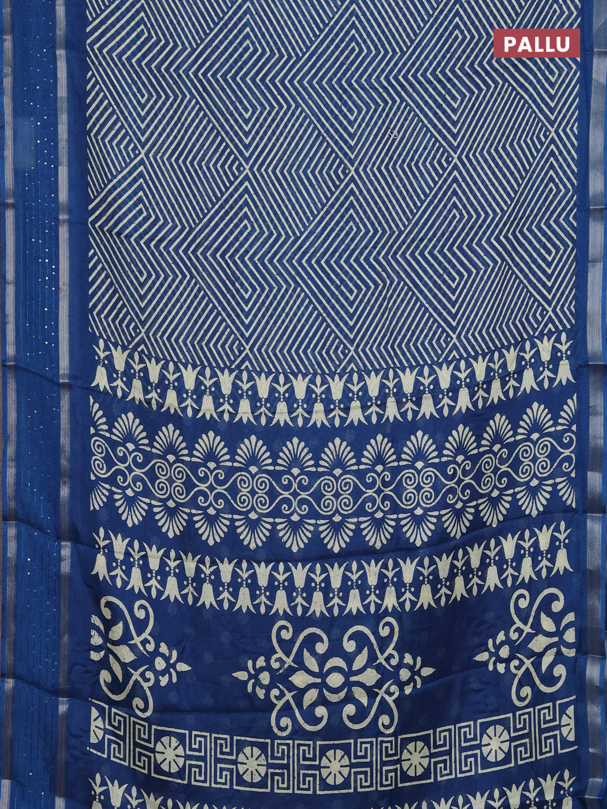 Semi dola saree peacock blue with allover geometric prints and zari woven sequin work border