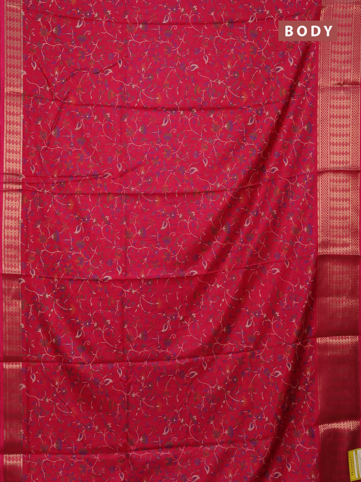Semi dola saree pink with allover prints and zari woven border