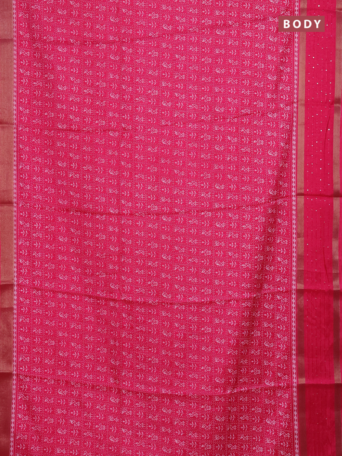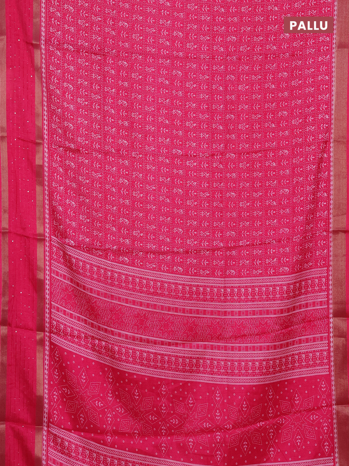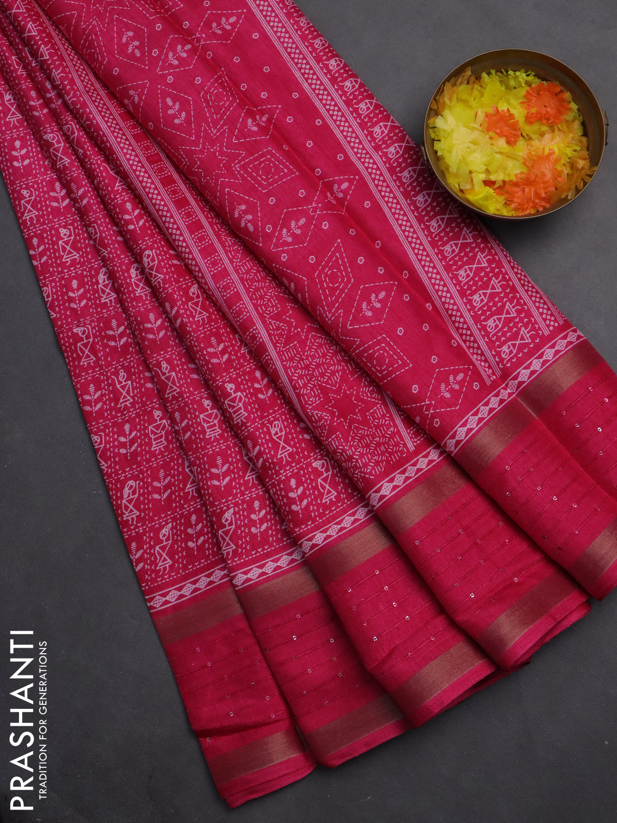 Semi dola saree pink with allover warli prints and zari woven sequin work border