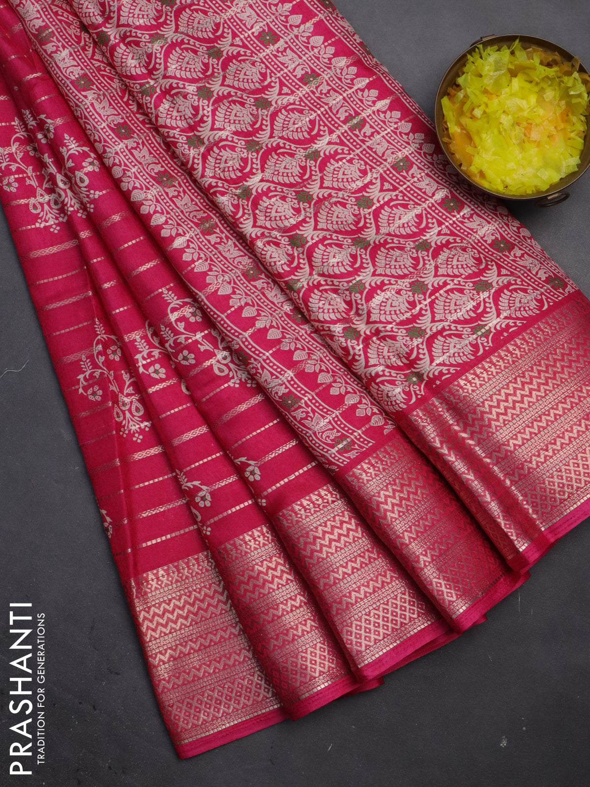 Semi dola saree pink with allover zari weaves & butta prints and zari woven border