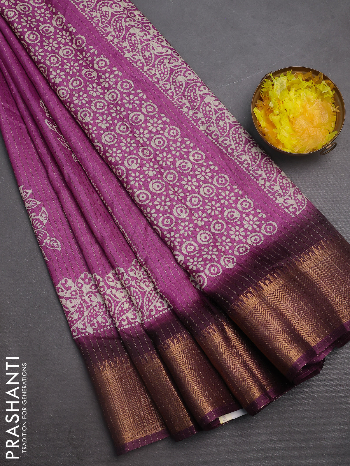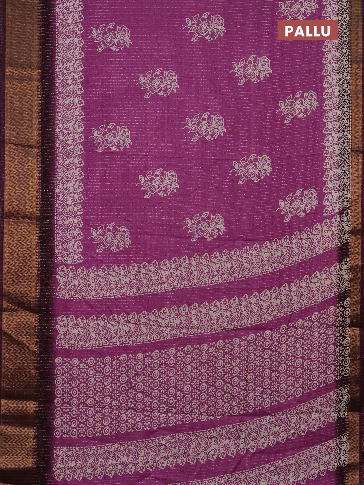 Semi dola saree purple and deep purple with zari stripes pattern & butta prints and zari woven border
