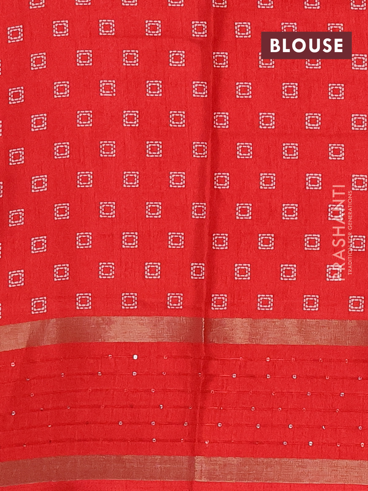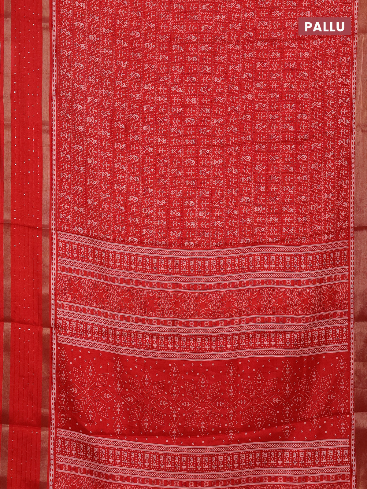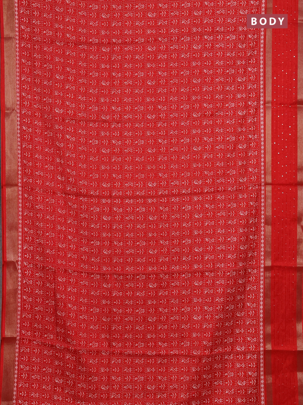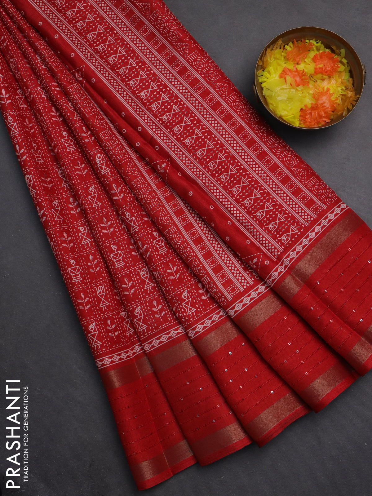 Semi dola saree red with allover warli prints and zari woven sequin work border